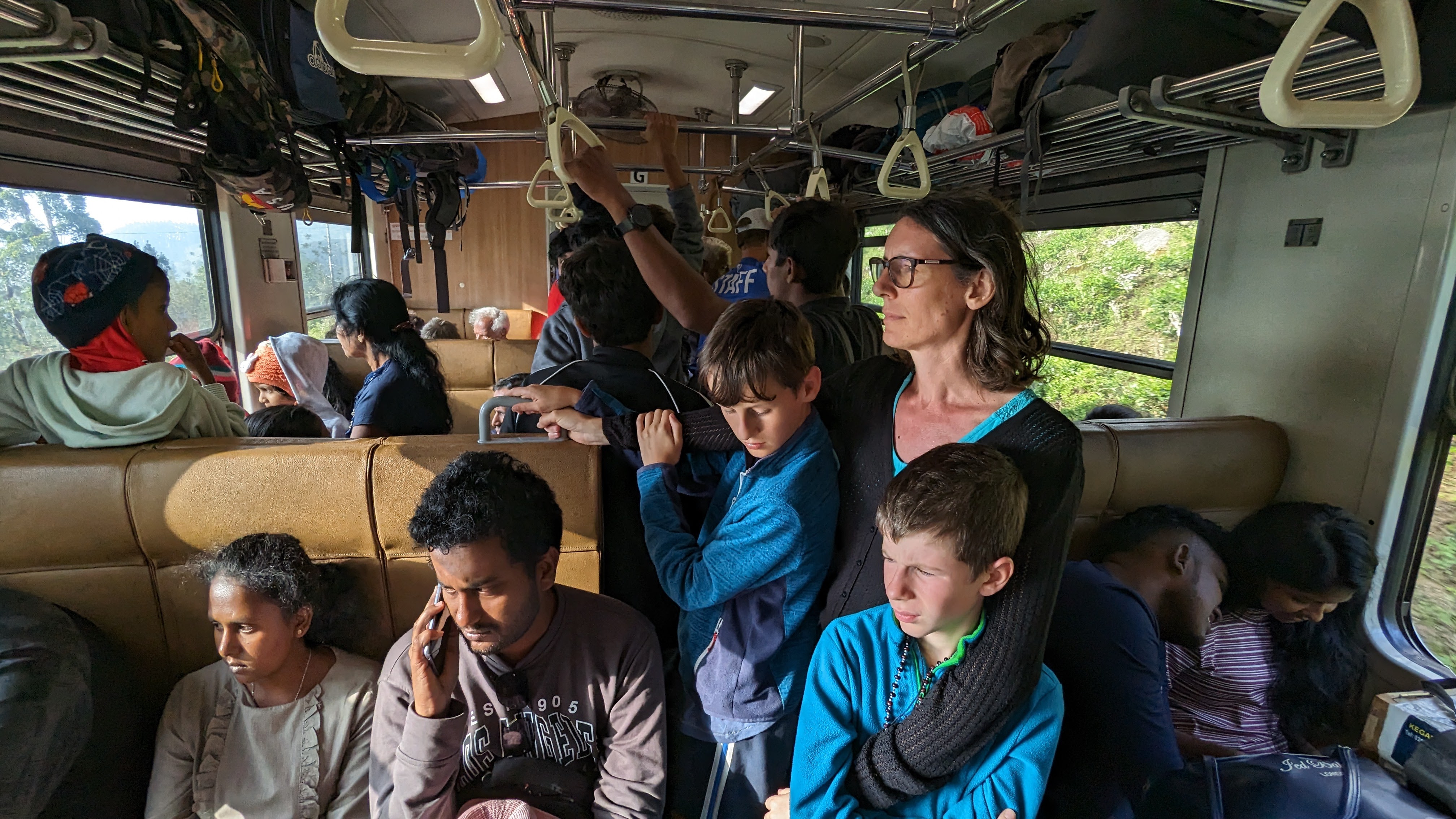 C’est d’ailleurs cette même ligne de train que nous avons empruntée dès le lendemain pour rejoindre la ville voisine d’Haputale. Voyage qui pouvait rappeler un jour ordinaire de métro parisien. Dire que les wagons débordaient est un doux euphémisme. Mais nous étions le week-end et beaucoup de sri-lankais se déplacent sur les jours de samedi et dimanche. Qui plus est, le tronçon Ella-Haputale est un des plus fameux du pays pour son parcours pittoresque au milieu des plantations de thé. Sans réservation, quasi impossible de s’asseoir : on a donc pris notre mal en patience (et le retour le soir-même a été beaucoup plus cool).