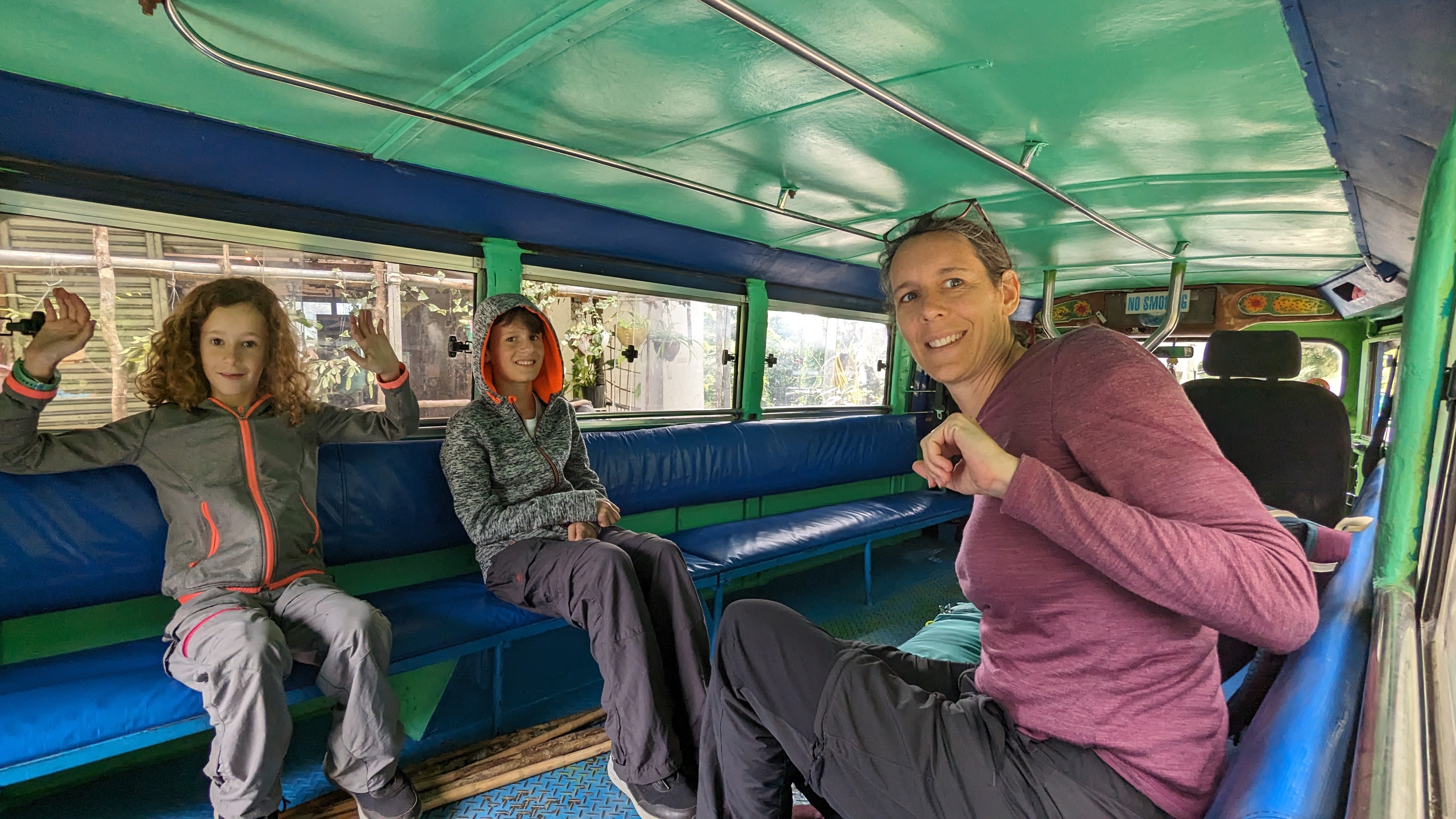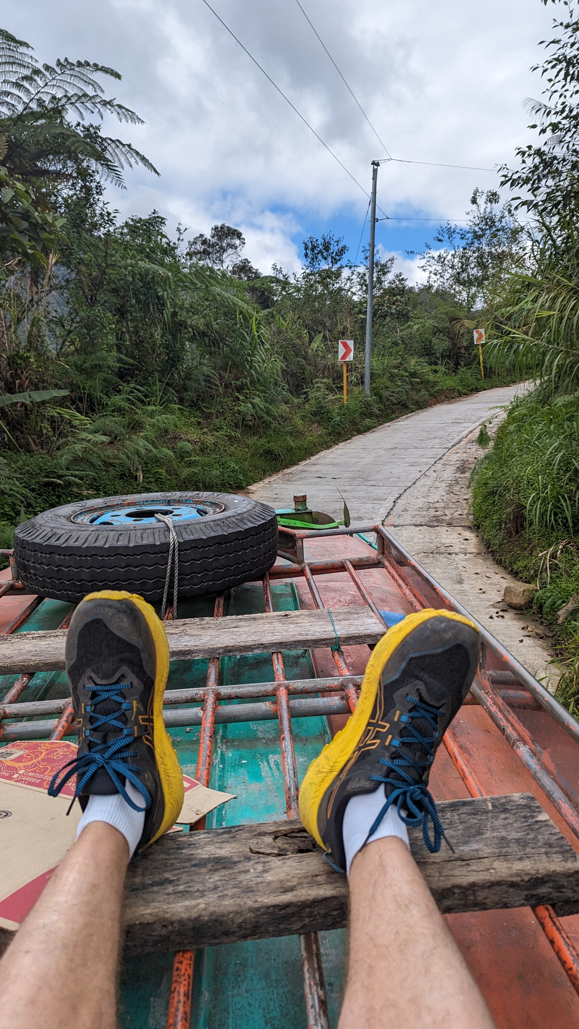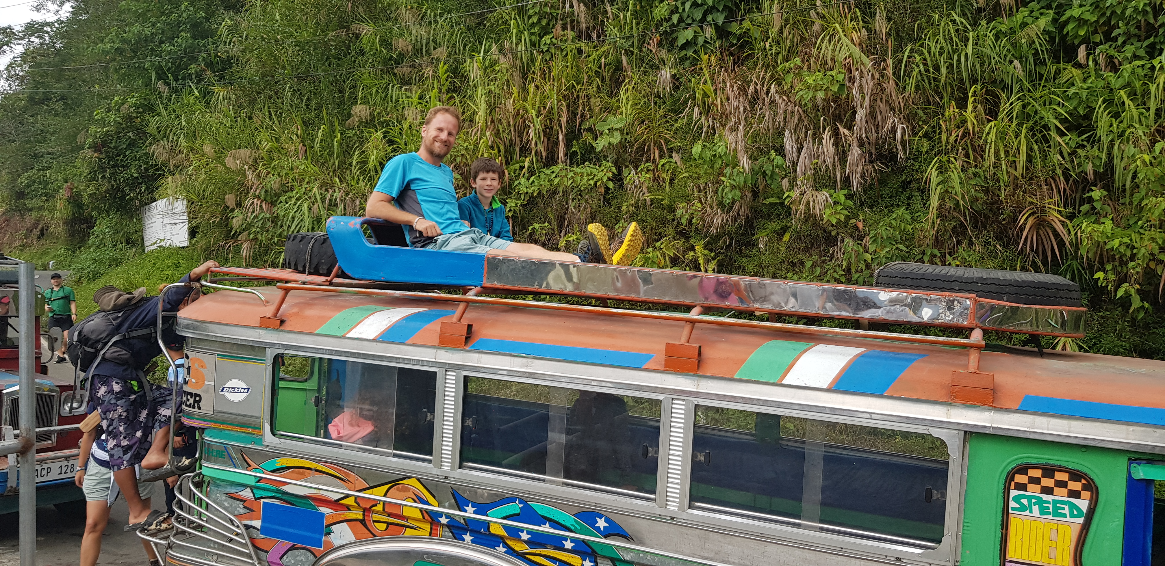 Le lendemain ça rigolait moins avec la première “vraie” rando vers le village de Cambulo où nous devions passer la nuit. Pour compenser, départ en jeepney avec autorisation de voyager sur le toit !