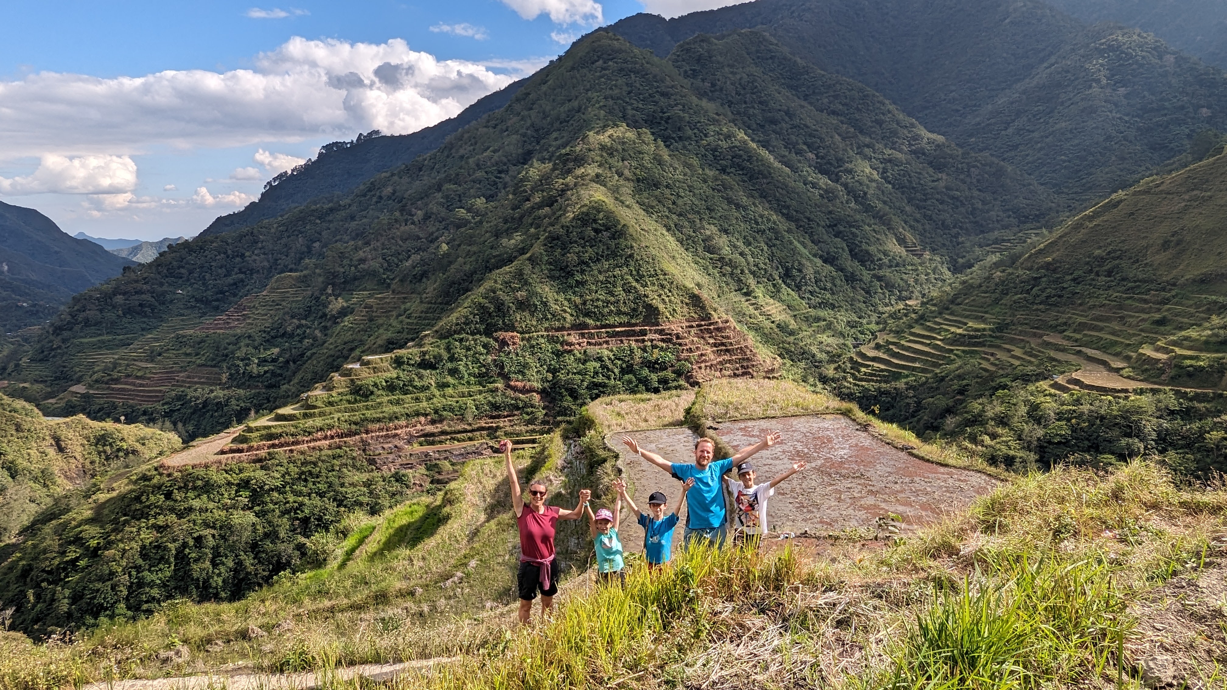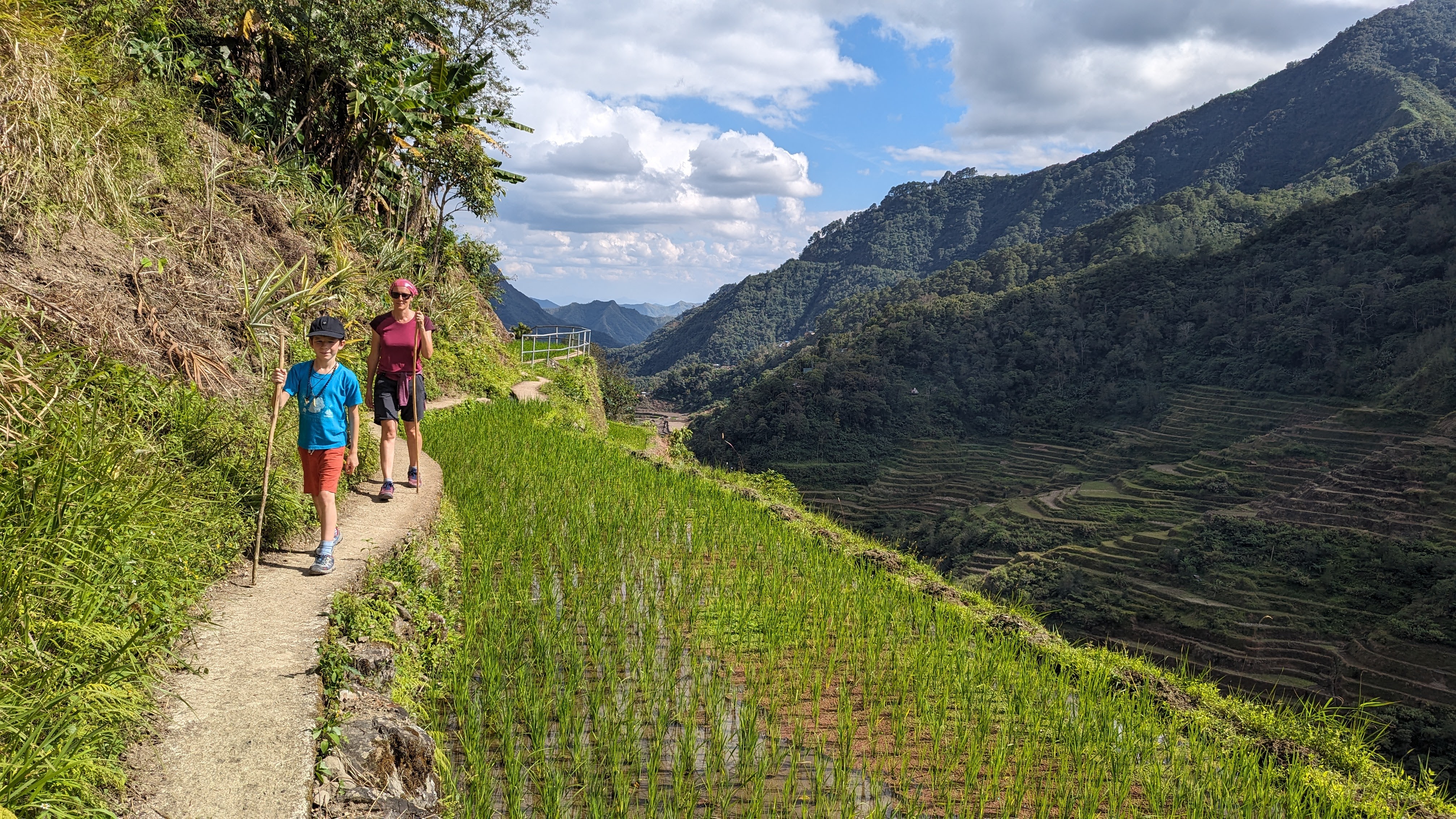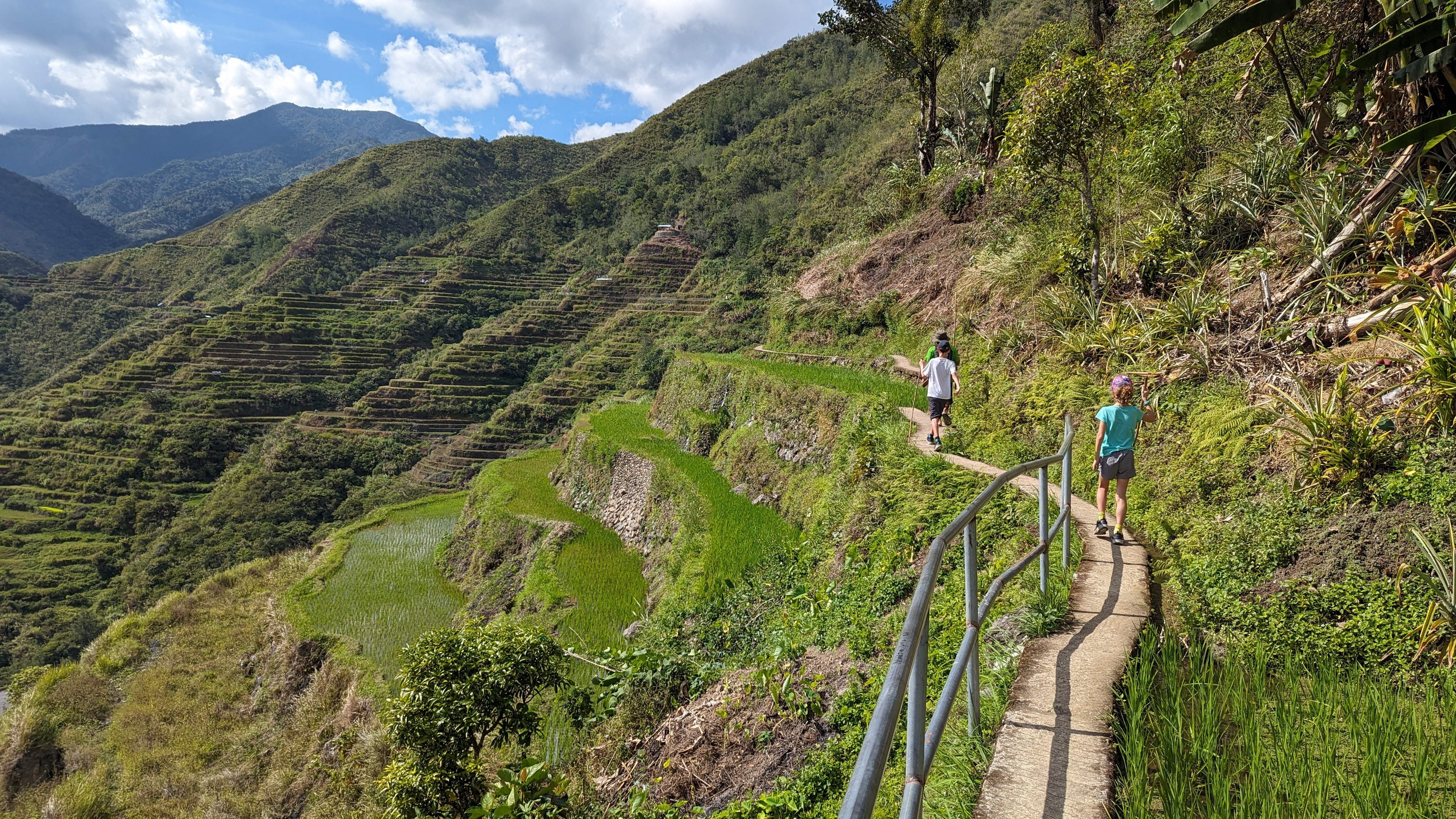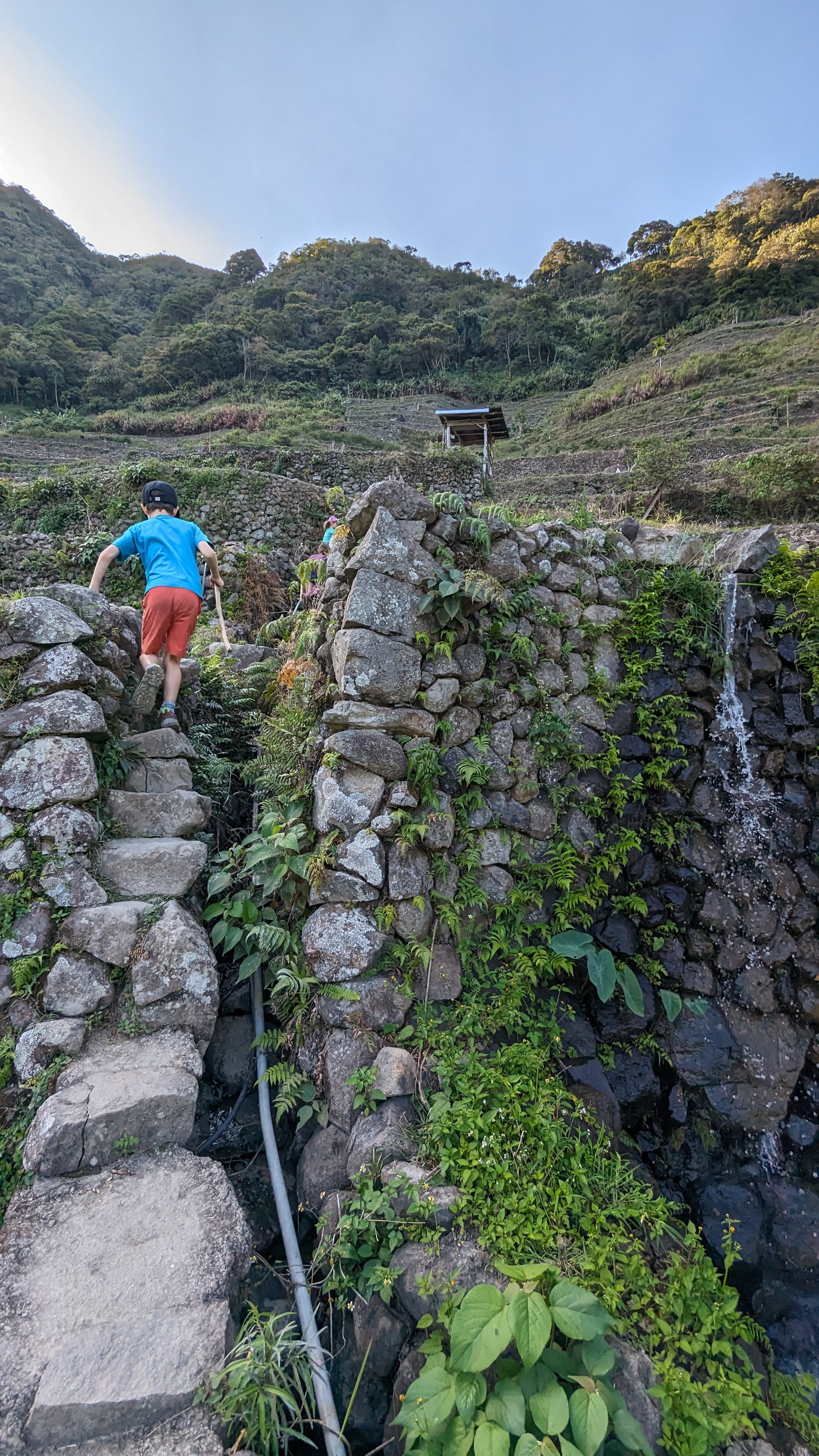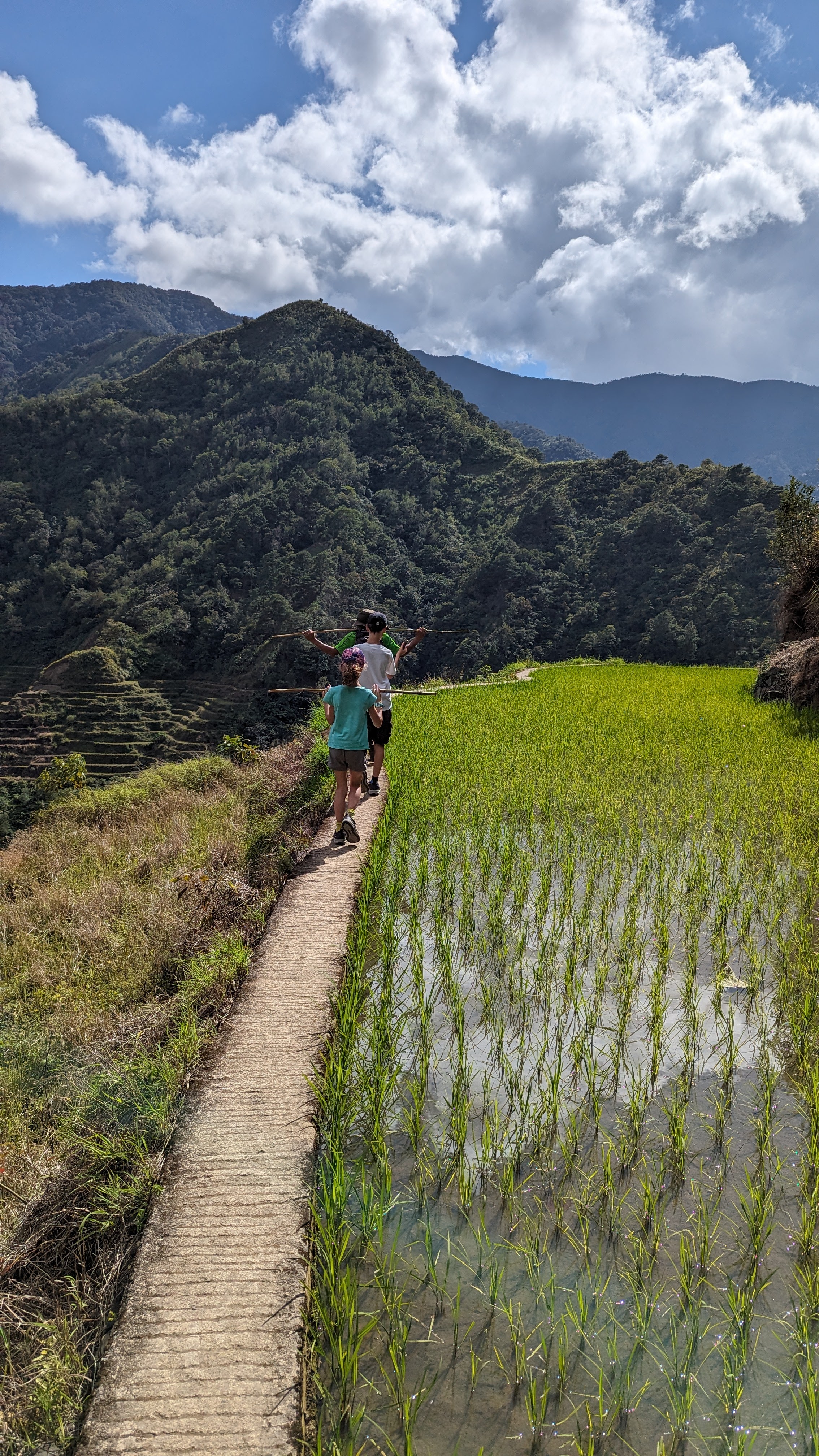 Il a fallu malheureusement en finir avec les rizières de la Cordillera par une dernière journée de marche nous permettant de revenir dans le monde moderne pour y retrouver route et voitures (et accessoirement continuer notre voyage). Heureusement, le chemin ne manquait toujours pas d’attrait. Les enfants avaient l’esprit si bien occupés qu’on ne les a pas entendus se plaindre une seule fois de toute la randonnée !