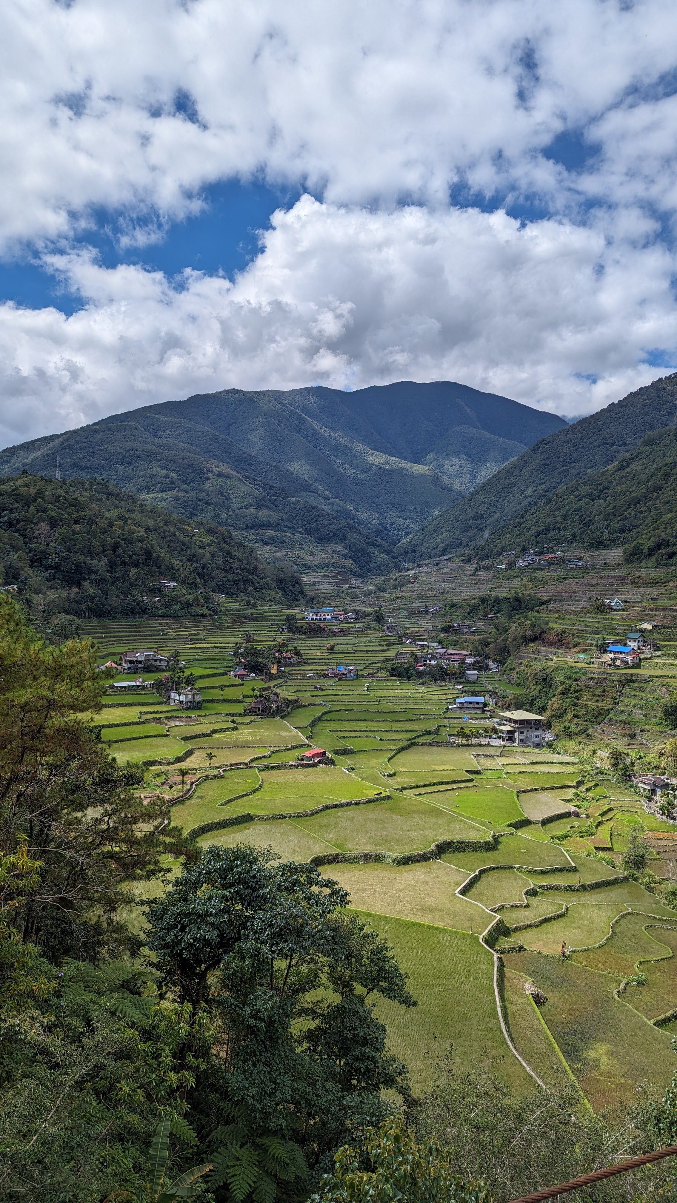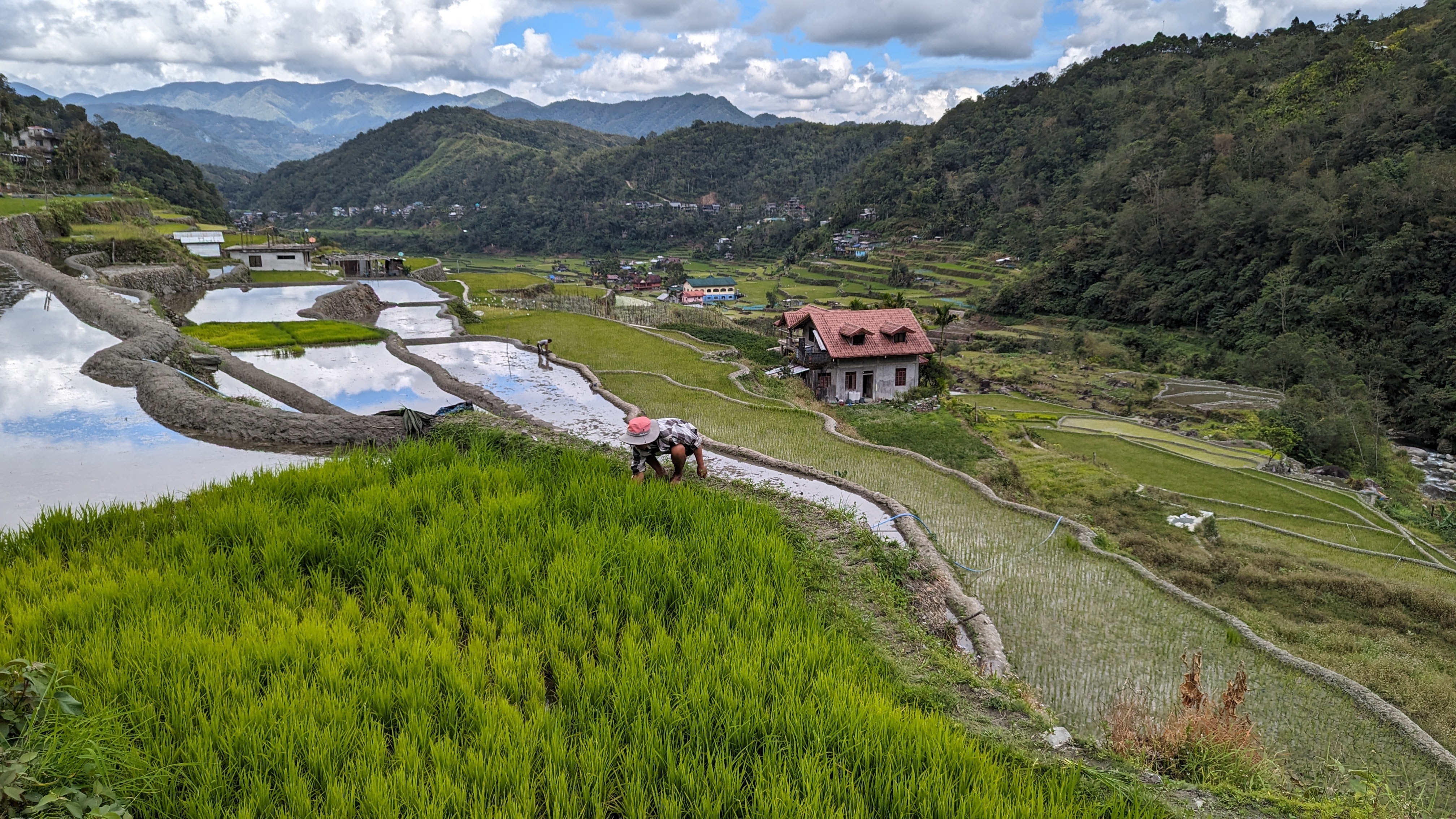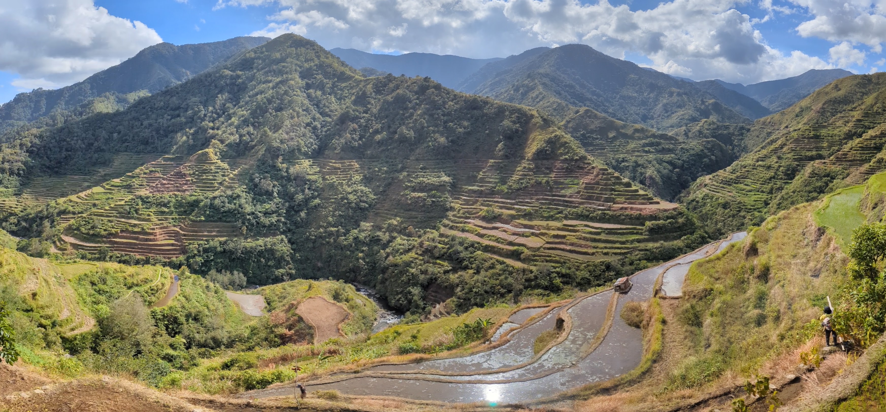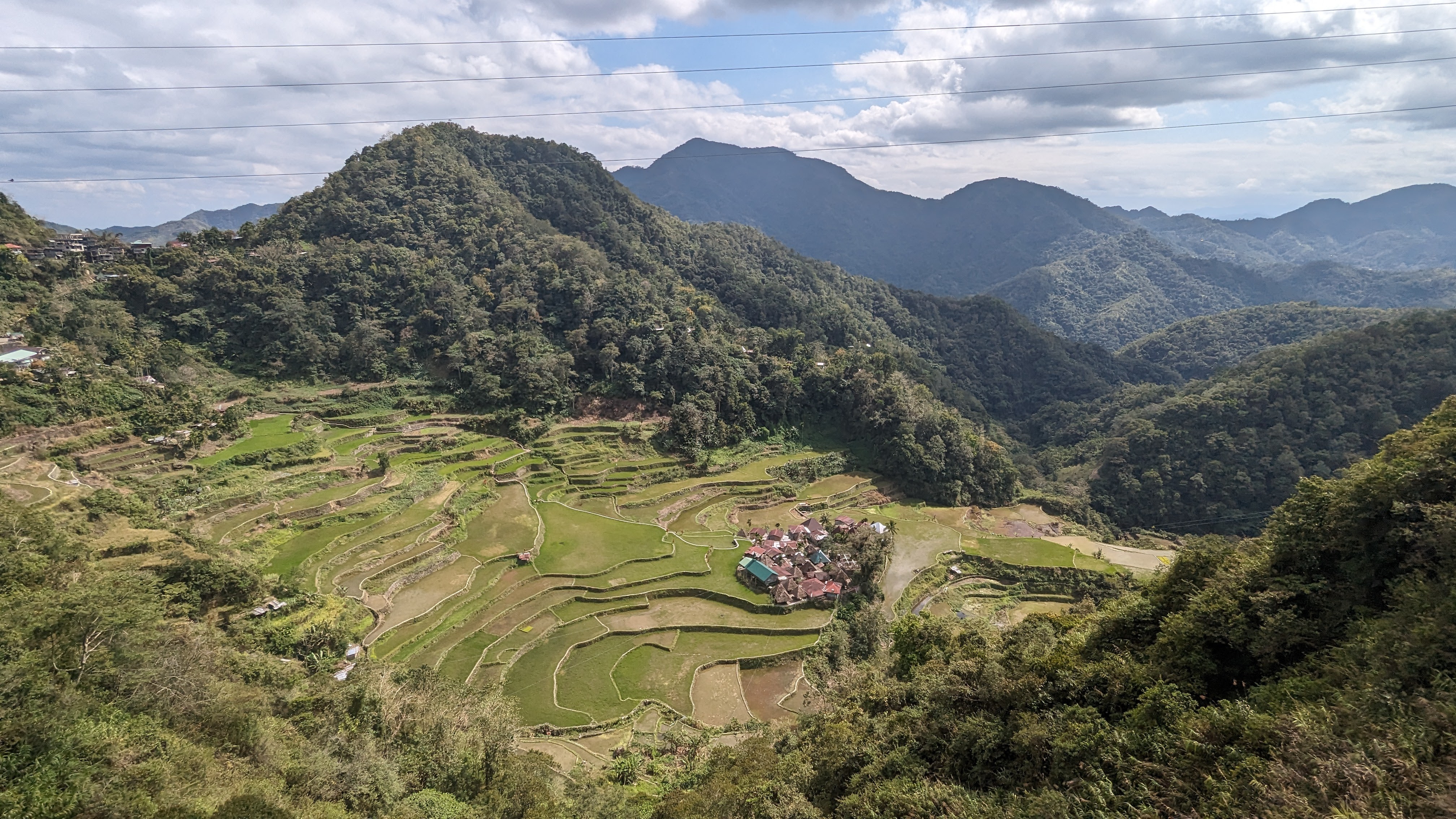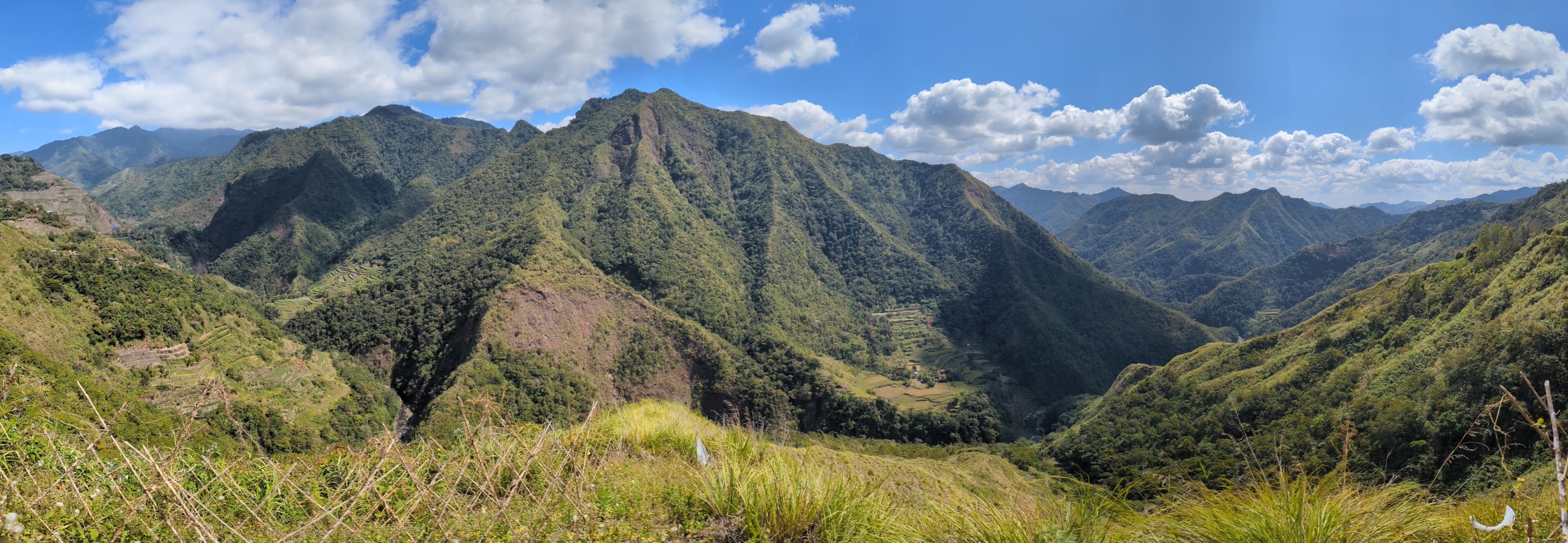 Bon, c’est bien gentil tout ça mais ça fait au moins deux paragraphes qu’on n’a pas prononcé le mot « rizière » ! Donc au deuxième jour de rando, direction le village de Cambulo, inaccessible par la route, où nous avons passé la nuit. Un havre de pays perdu au milieu des montagnes abruptes, couvertes de lianes, fougère arborescentes et autres bananiers, un endroit improbable où les hommes ont décidé il y a 2000 ans que ce serait une bonne idée que d’aplatir les montagnes, construire des murs et monter un système d’irrigation complexe pour y faire pousser des trucs. Les mots manquent pour décrire ces paysages. Ou alors ils ne feraient que banaliser l’exceptionnel. Du coup il vaut mieux laisser parler les images…