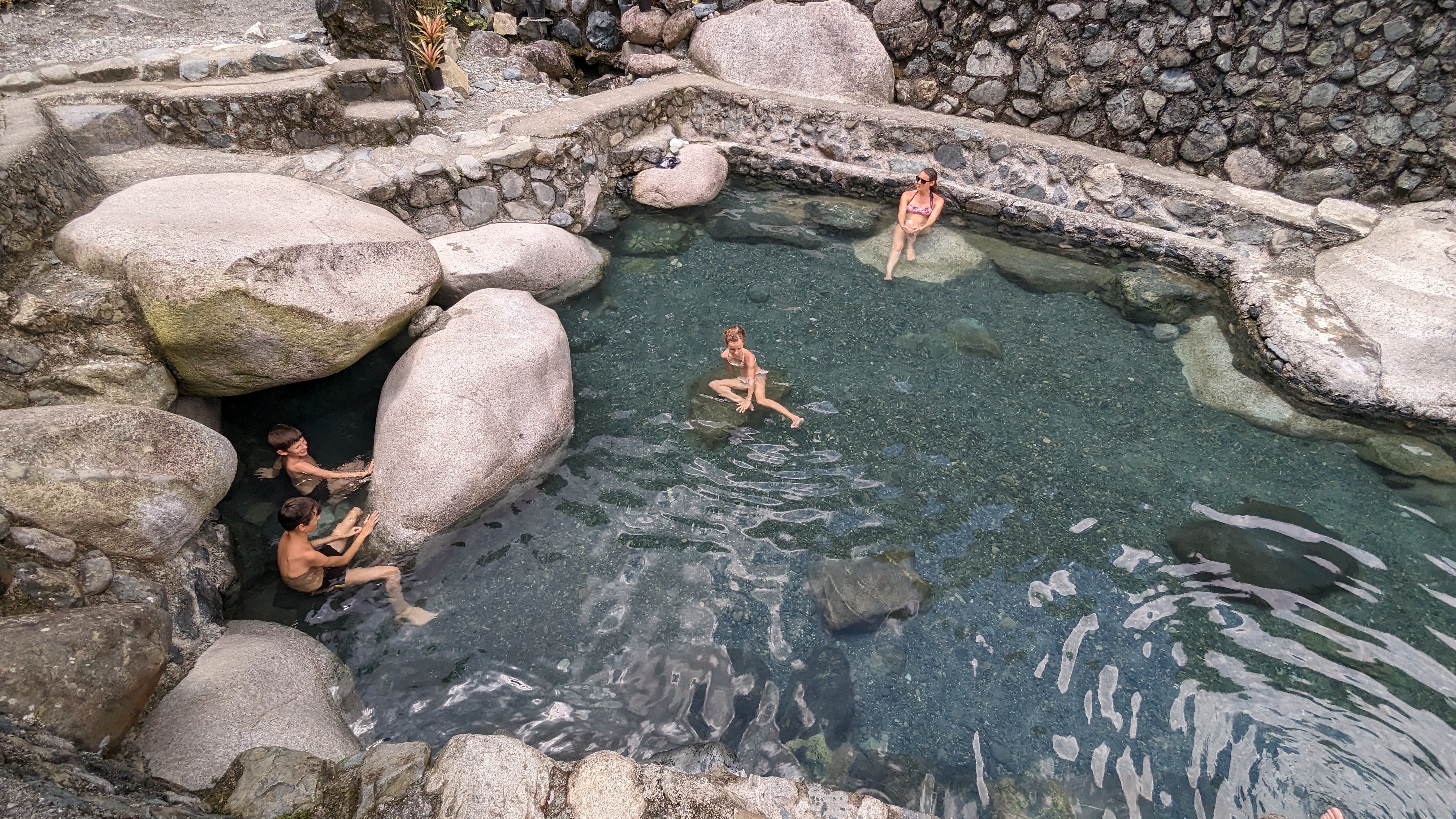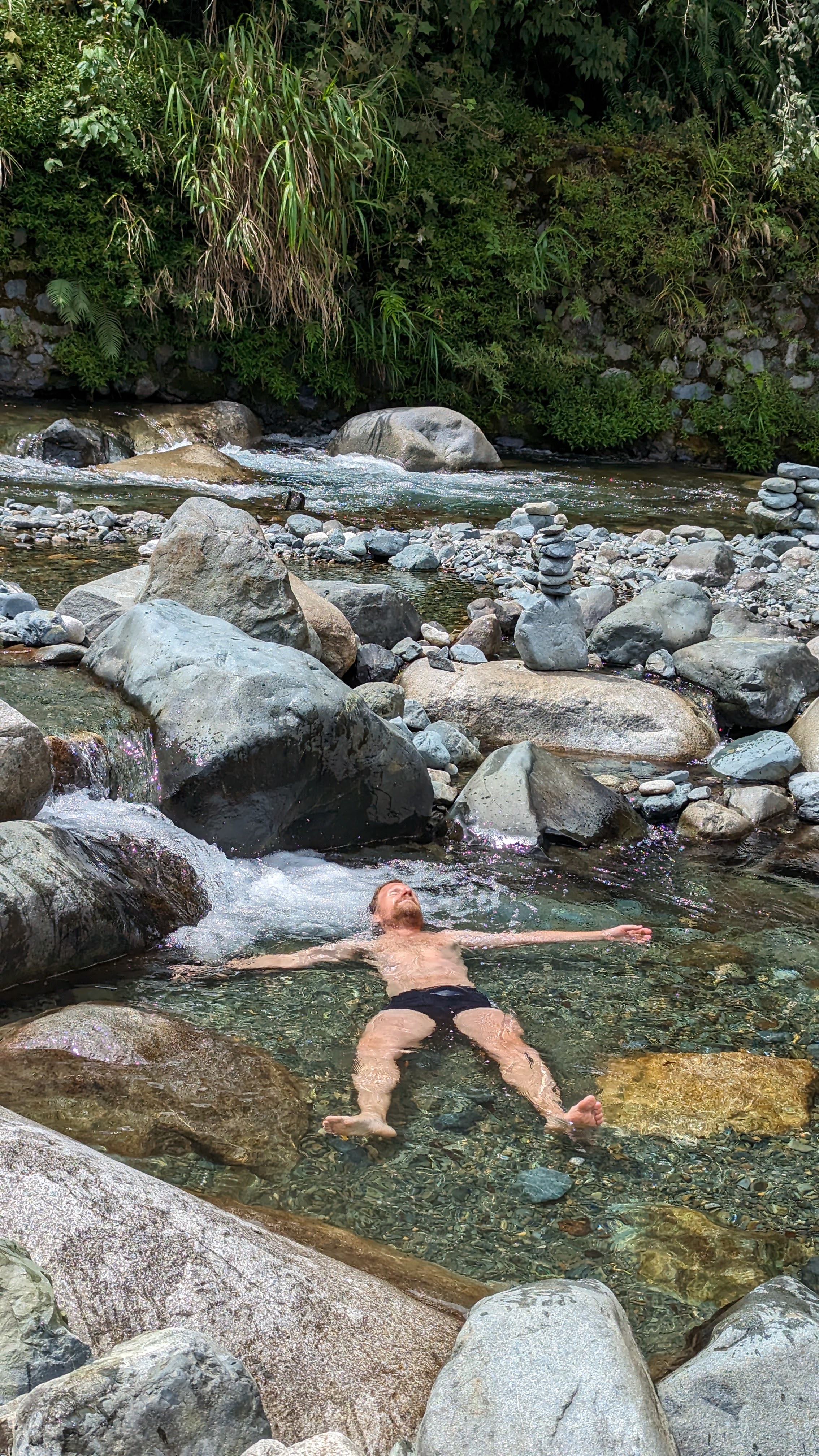 Le passage dans les sources chaudes elles-mêmes était un vrai moment de plaisir. Un petit bassin aménagé à côté des terrasses, de l’eau pure et réellement chaude, et une rivière voisine dans laquelle plonger si l’envie nous prenait de nous la jouer sauna finlandais