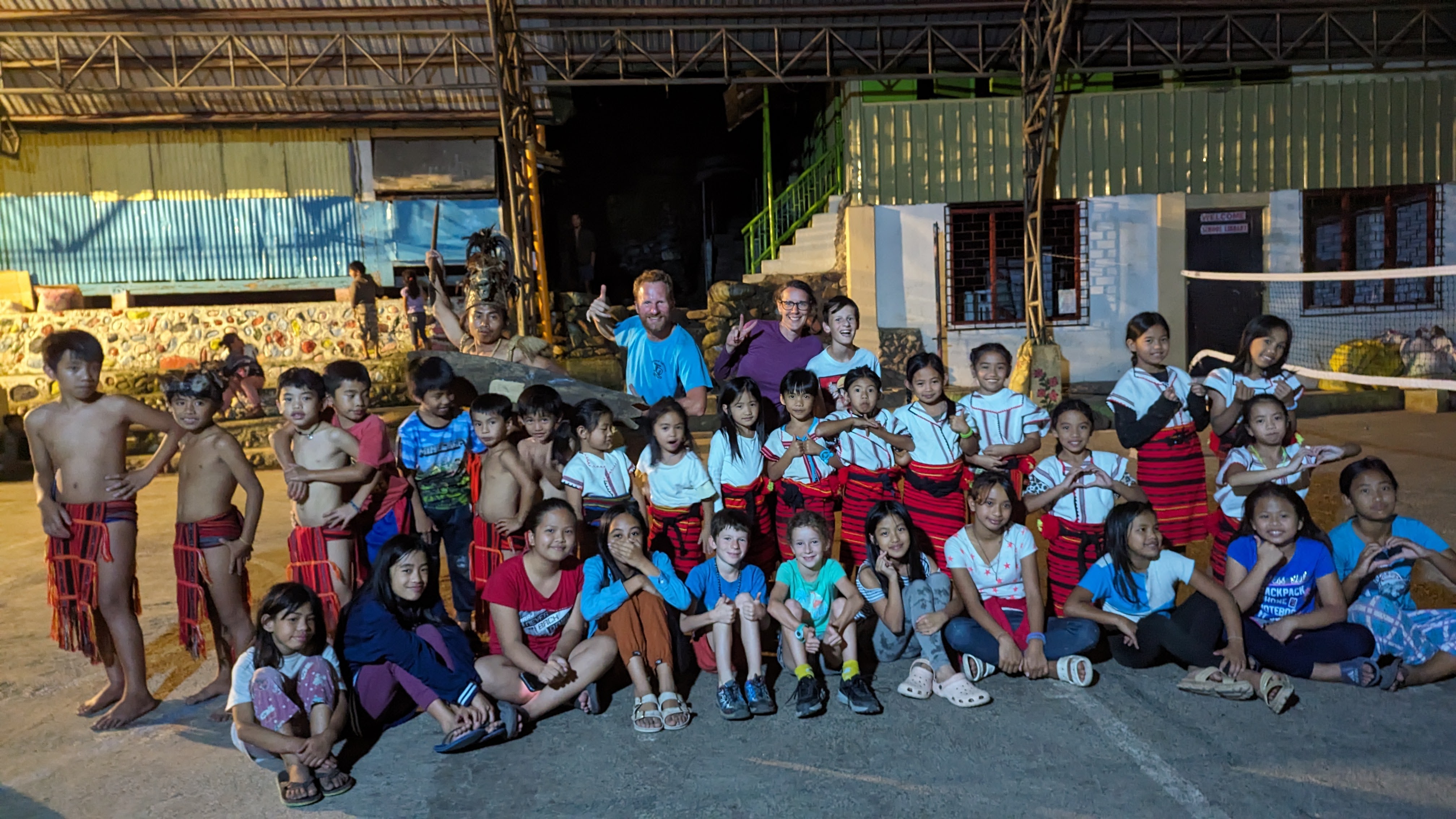Le soir à Cambulo, moment inattendu et rafraîchissant : un spectacle donné par les écoliers du village. Et la preuve qu’il y a décidément beaucoup (trop ?) de français ici, voilà qu’après les chants en tagalog, ils enchaînent avec un medley de chansons … françaises bien sûr ! Le grand jeu est d’arriver à deviner lesquelles, malgré le yaourt sonore inévitable : Les Champs Elysées, Alouette, Meunier tu dors mais aussi les crocodiles du Nil, la danse d’Hélène et “je fais pipi sur le gazon” ! Le tout avec des chorégraphies savamment orchestrées. Certains enfants sont vraiment à fond et c’est un bon moment sans prise de tête, qui fait marrer tout le monde, gamins y compris.
