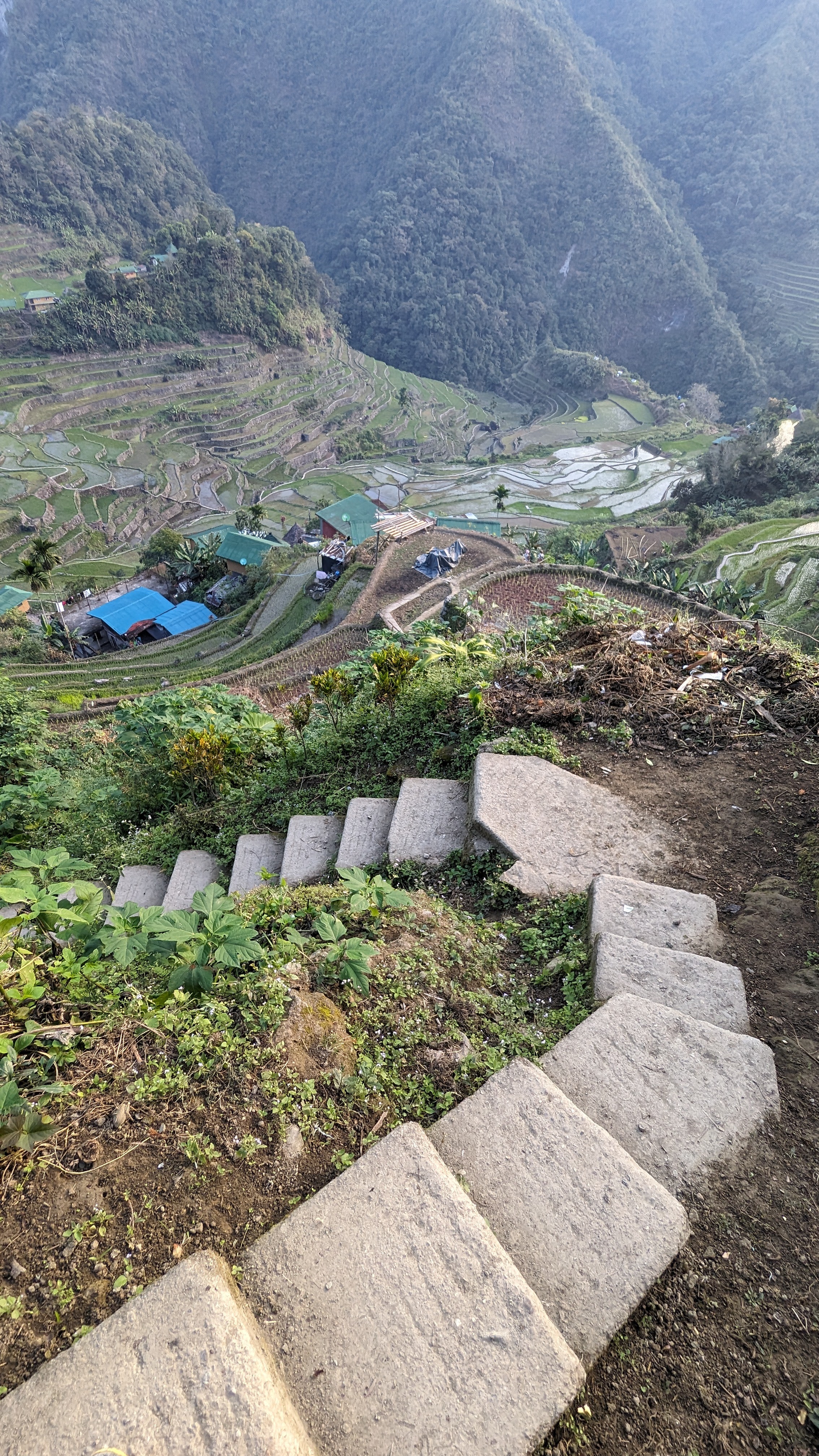 Bref tout ça pour arriver en fin de journée à ZE point de vue, celui qui justifie presque à lui tout seul tout le reste : le haut des terrasses de Batad. Et on peut une nouvelle fois, et sans galvauder l’expression, parler d’effet waooow à la vue de cette merveille qui sait en plus ménager ses effets pour s’ouvrir sans prévenir devant l’œil du randonneur haletant.