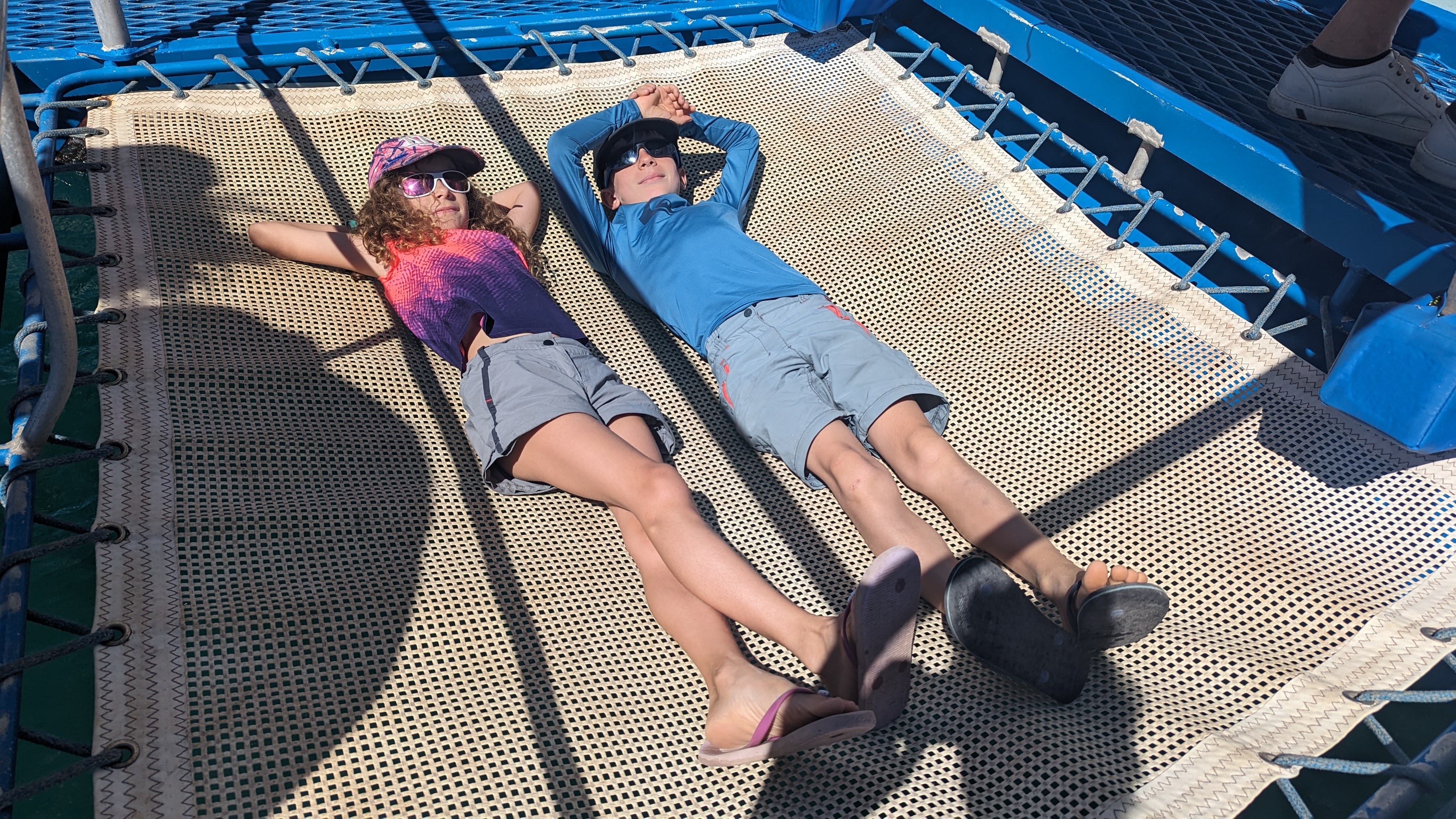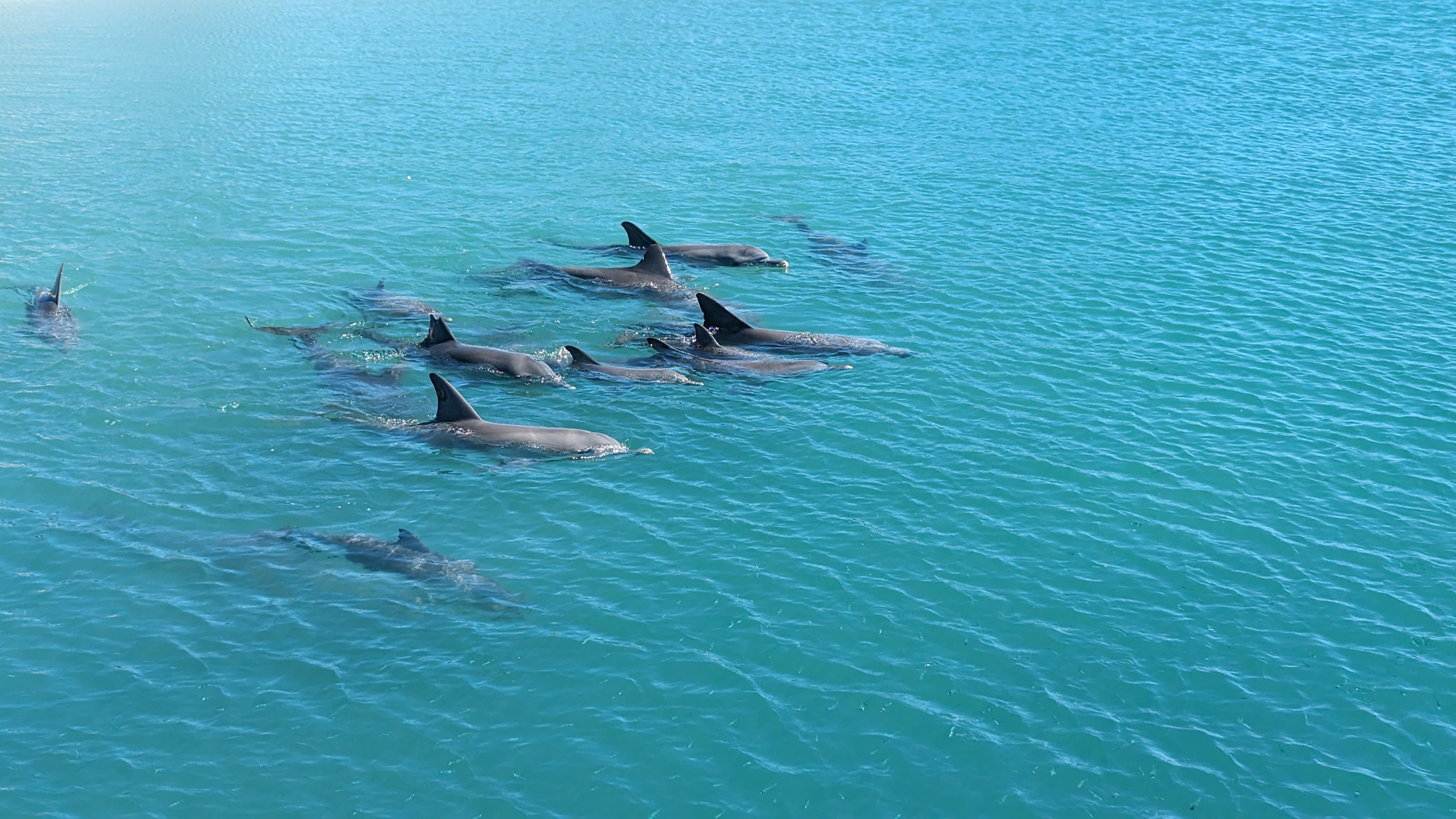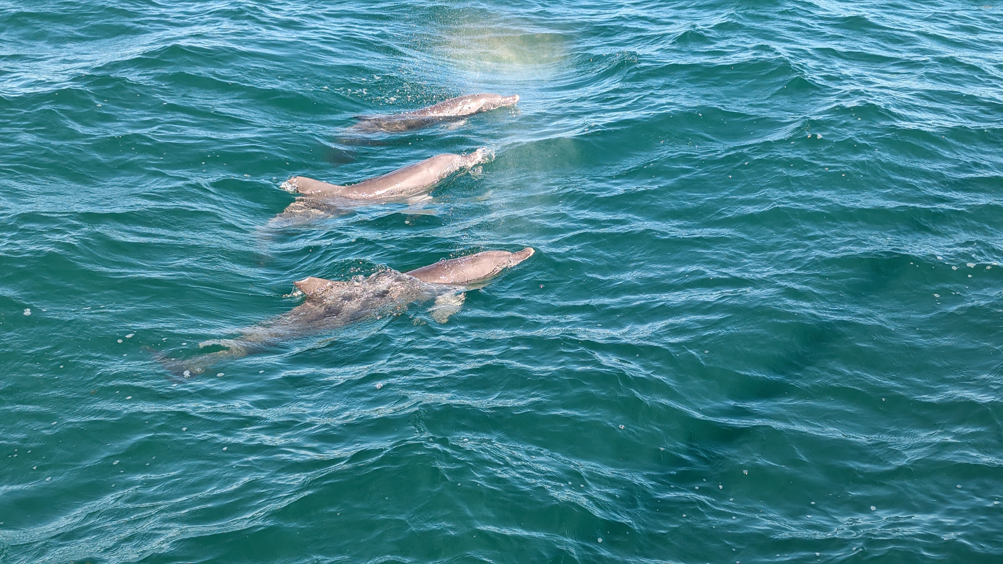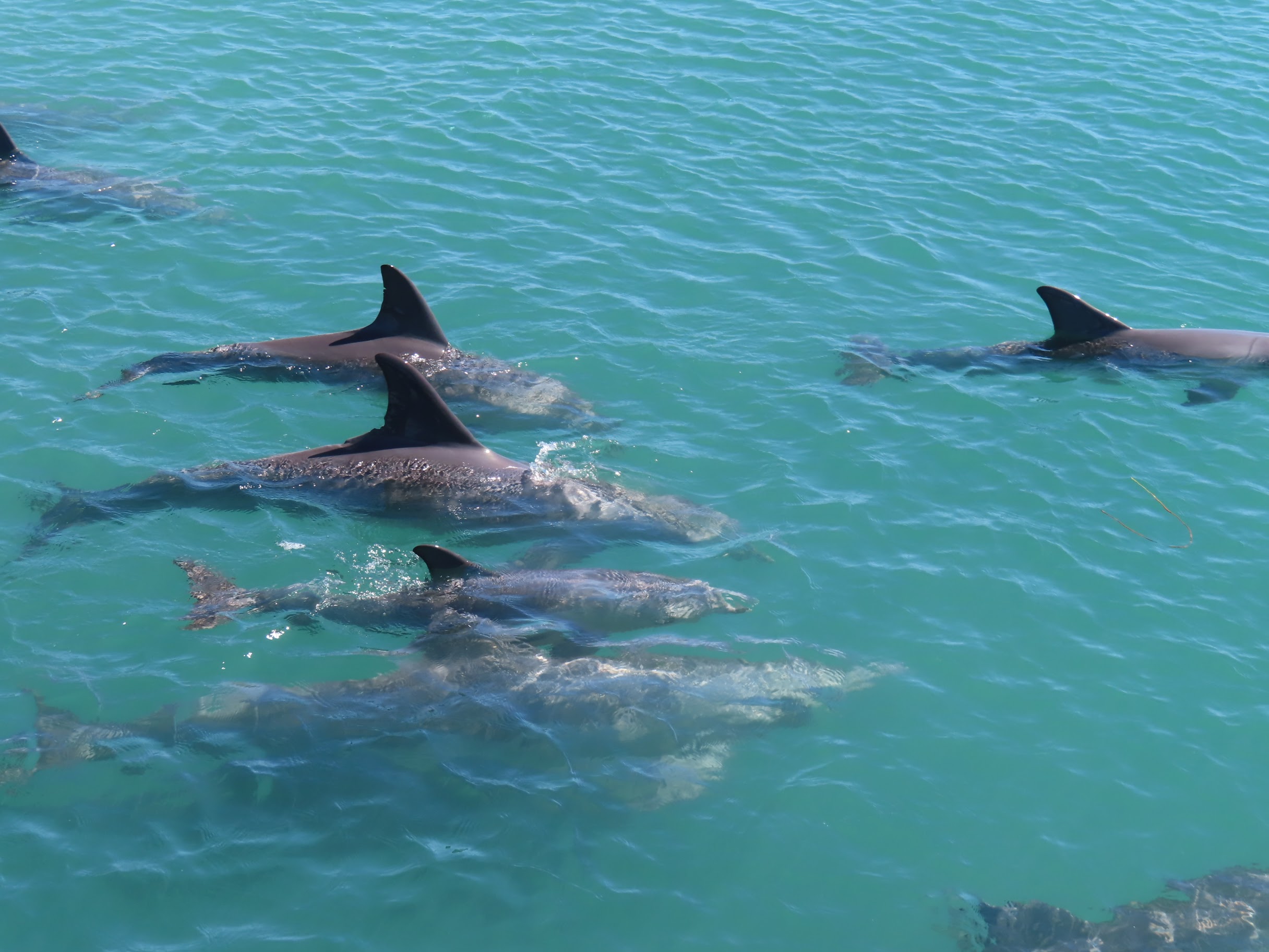 Comme voir les dauphins de près sur la plage ne nous suffisait pas, nous avons aussi embarqué sur un catamaran pour aller les voir en mer. Eux et surtout leurs très lointains cousin les dugongs (un dugong, c’est un peu semblable à un lamantin pour ceux qui ne voient pas à quoi ça ressemble)(et si vous ne voyez pas non plus ce qu’est un lamantin, ben tant pis pour vous).