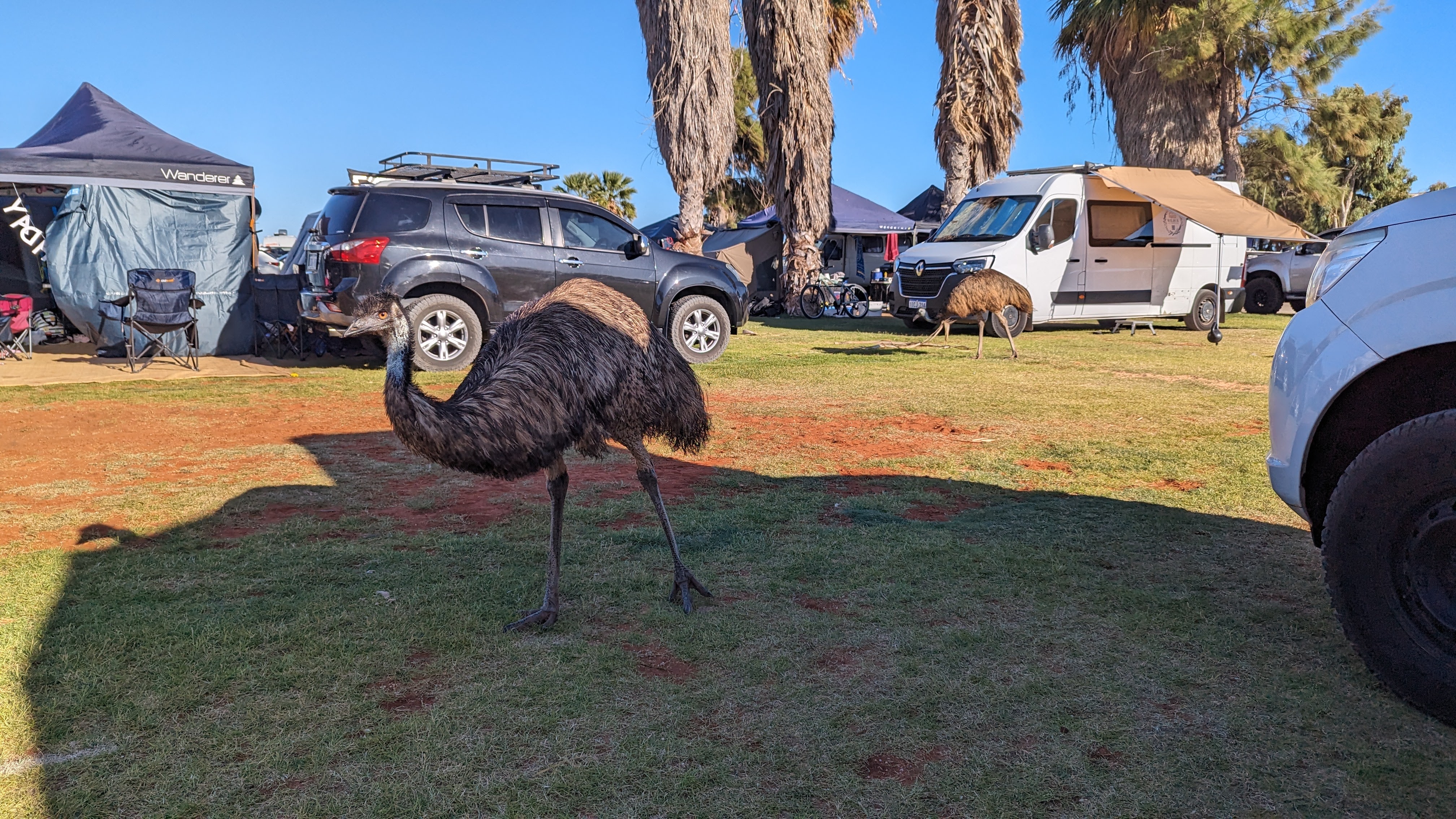 Contrairement aux kangourous, c’est dès le jour levé qu’ils partent à la chasse aux provisions des touristes. Pas impressionnés pour un sou par les humains (c’est plutôt l’inverse en fait), il n’hésitent pas à fouiller dans les coffres et tiroirs mal fermés. Et si par distraction on tourne la tête ailleurs plus d’une seconde, paf, on se retrouve nez à nez avec un oiseau de plus d’1m de haut.