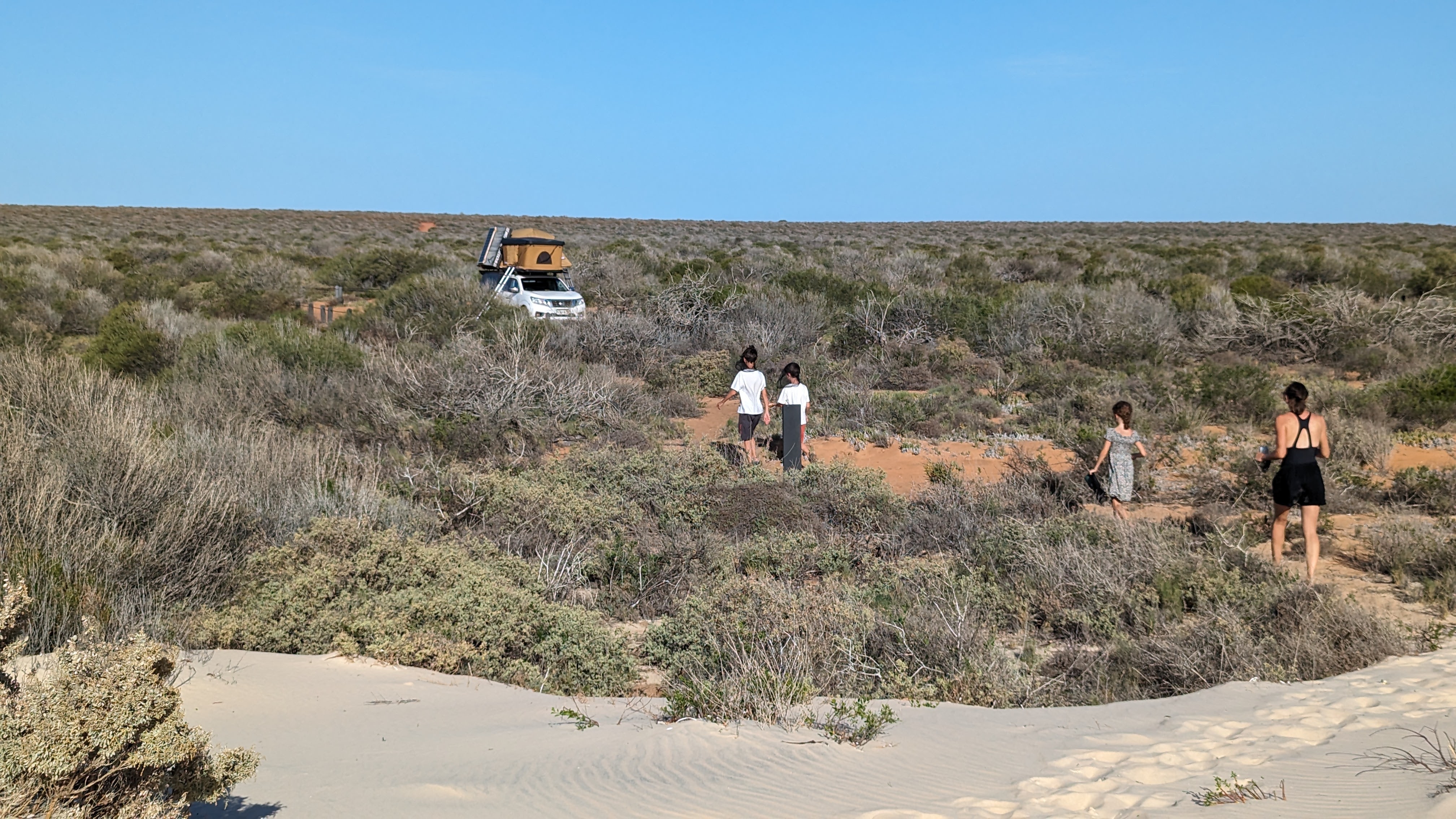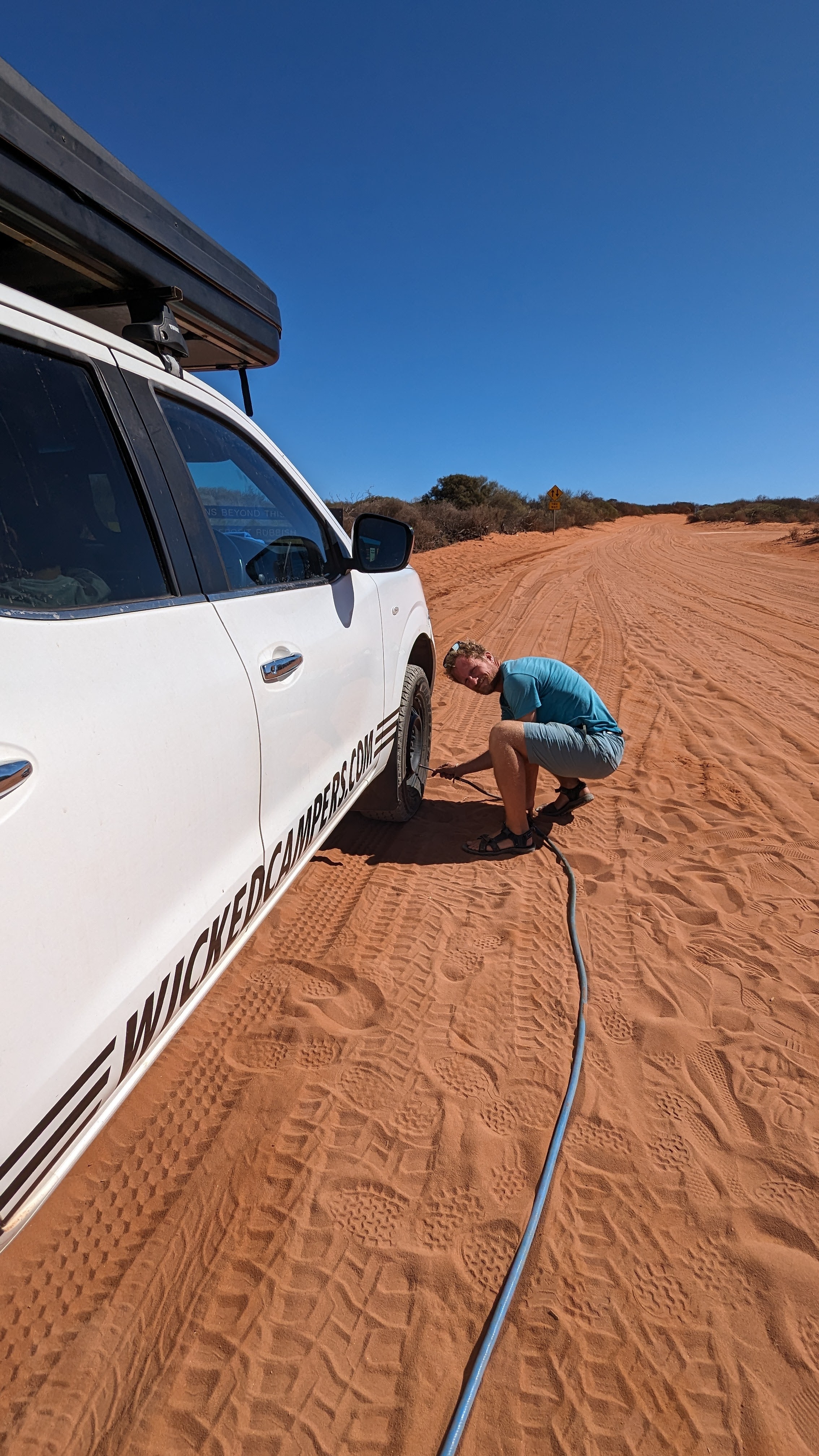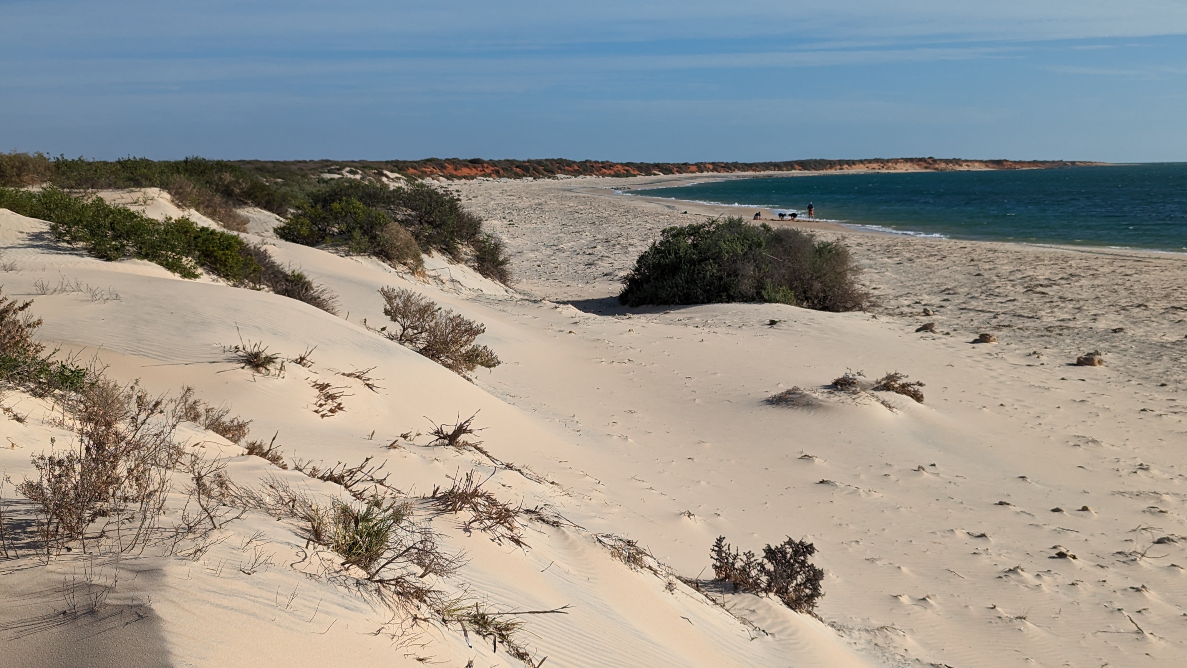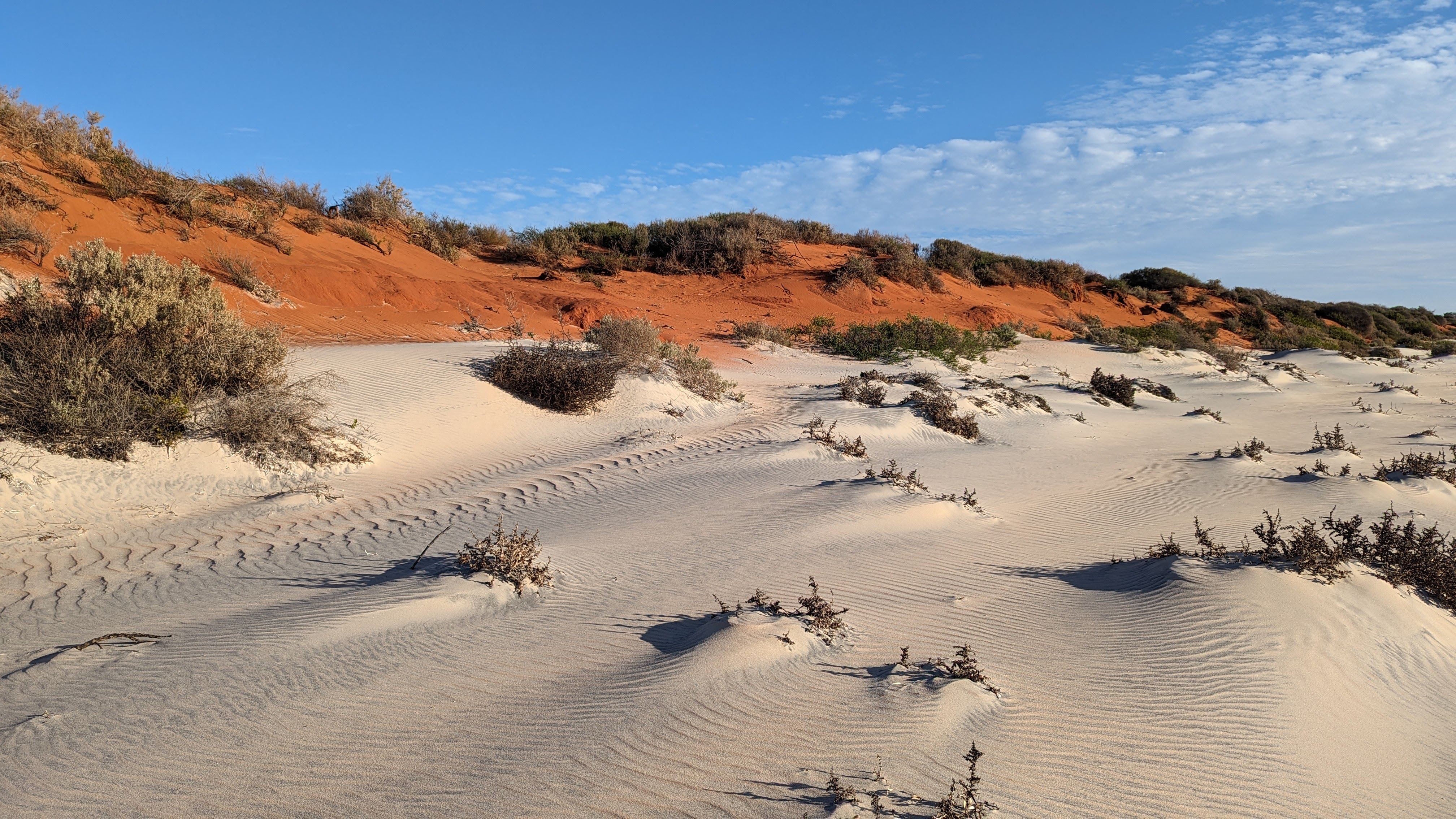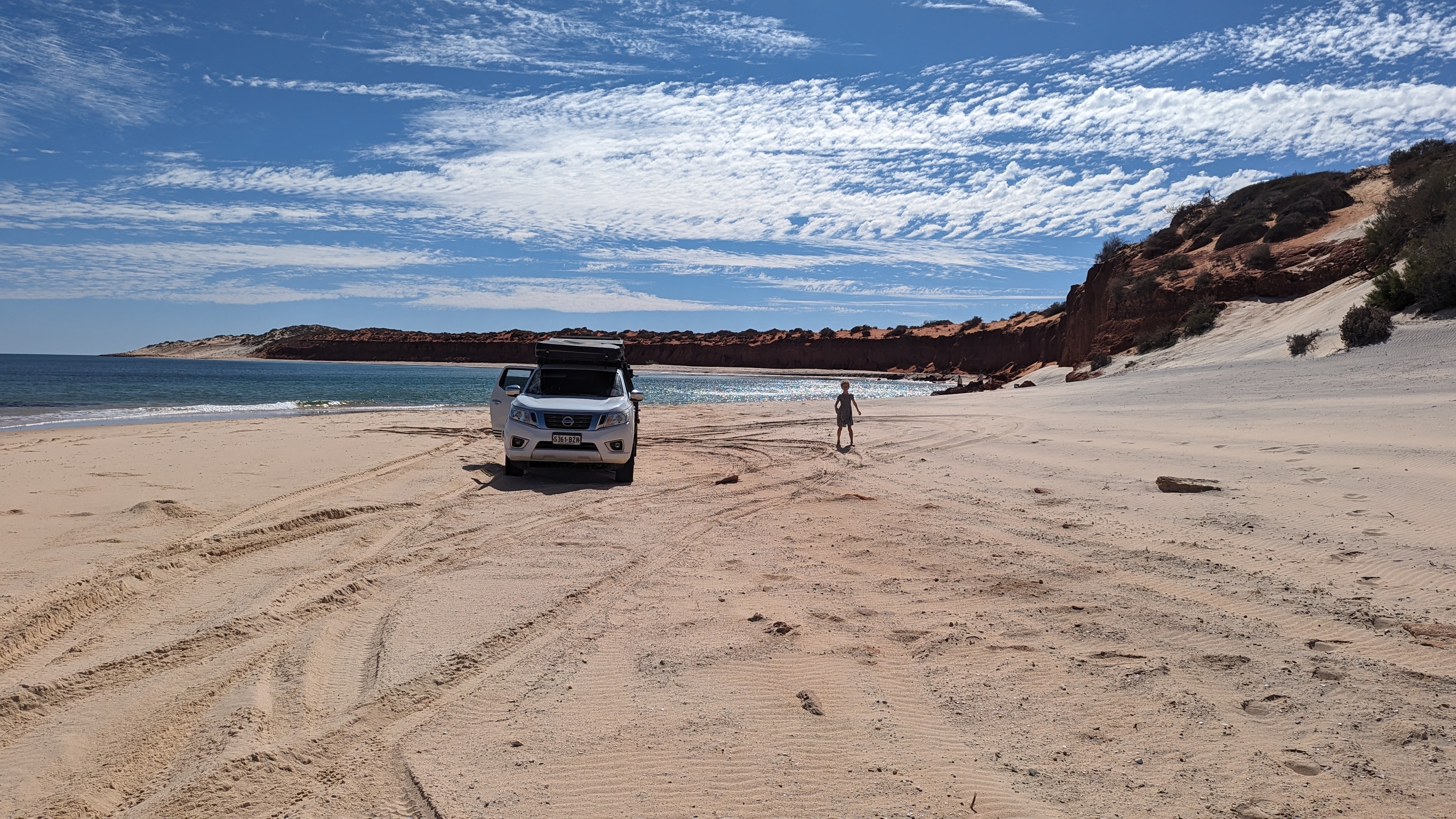 La Baie Shark, c’est aussi une grande péninsule occupée par le parc national François Peron (oui ça fait français comme nom, et c’est bien normal, des français étant passés dans le coin en exploration). Ce parc fait peur à tous les loueurs de voitures qui interdisent formellement d’y mettre les roues (mais nous, on avait le droit). La raison ? Les routes ne sont en fait que des pistes de sable, et le risque de s’ensabler est loin d’être nul.