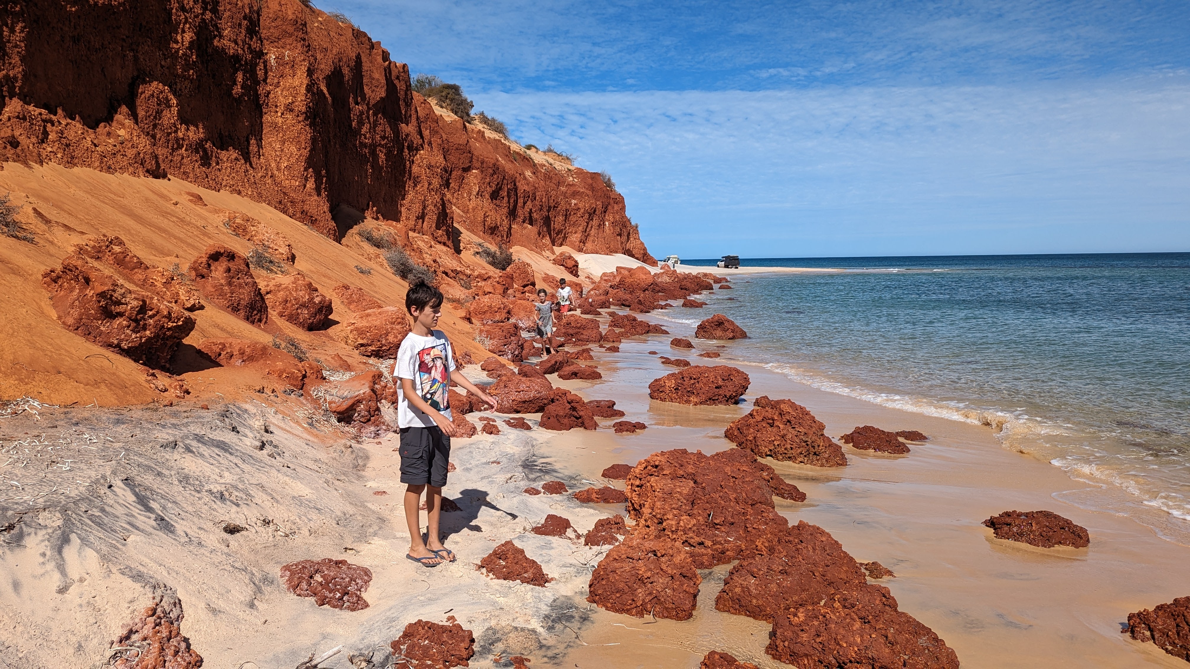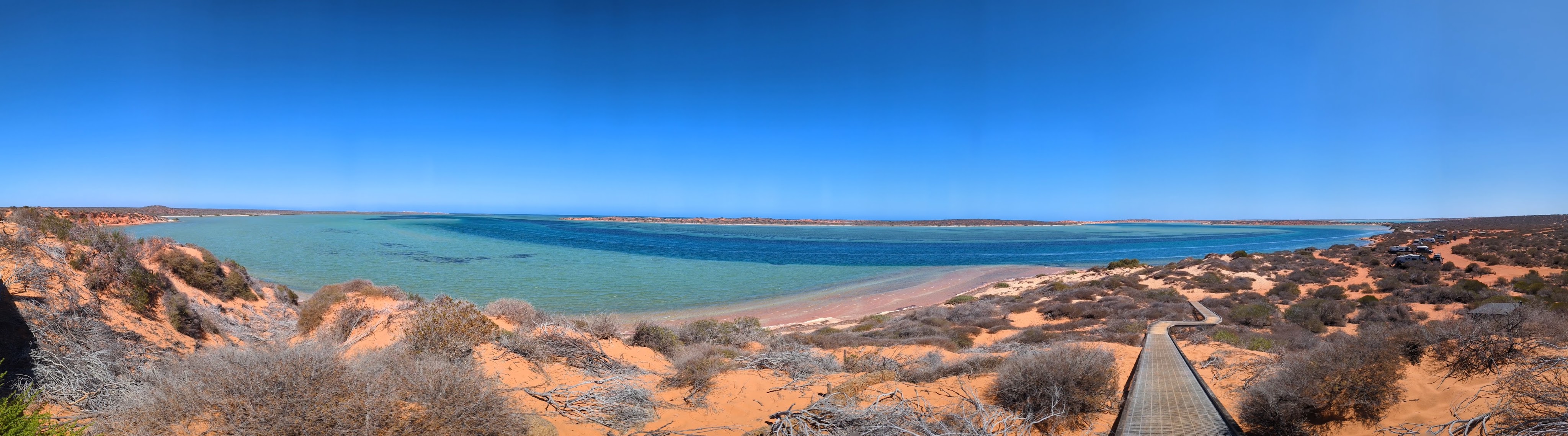 Ce qui frappe l’esprit à François Peron, c’est le contraste entre les couleurs : le bleu vif du ciel, le bleu turquoise de la mer, le rouge orangé des terres, et le blanc du sable. Il n’y a pas un endroit qui ne soit pas pittoresque, au sens le plus littéral du terme.
