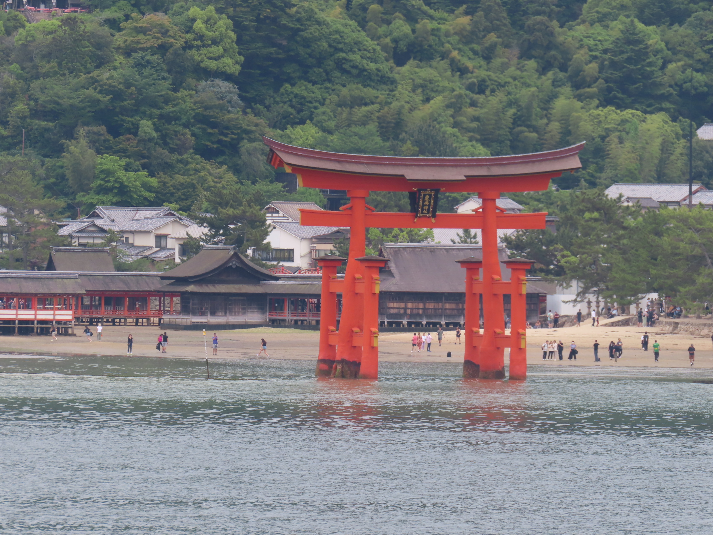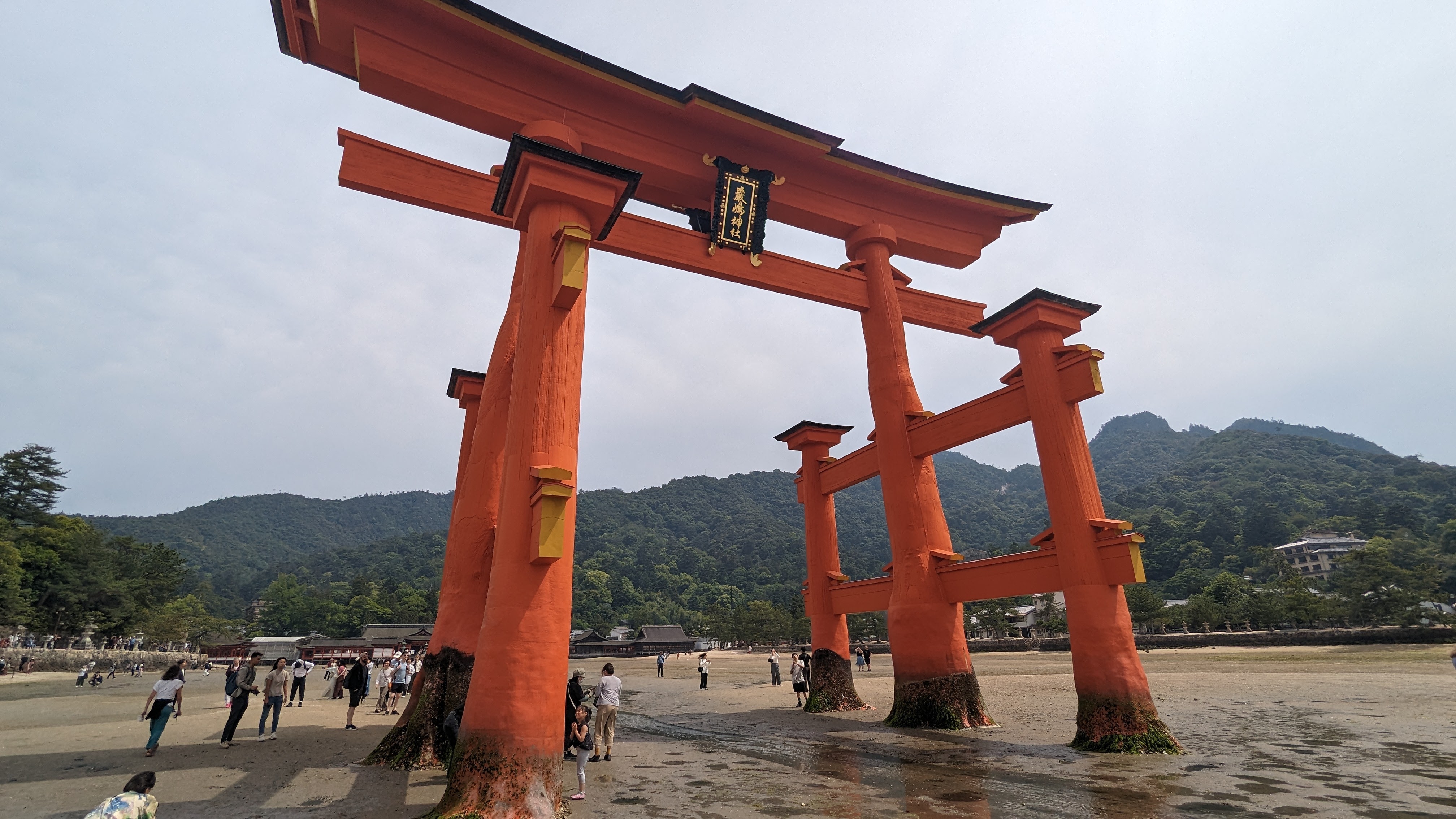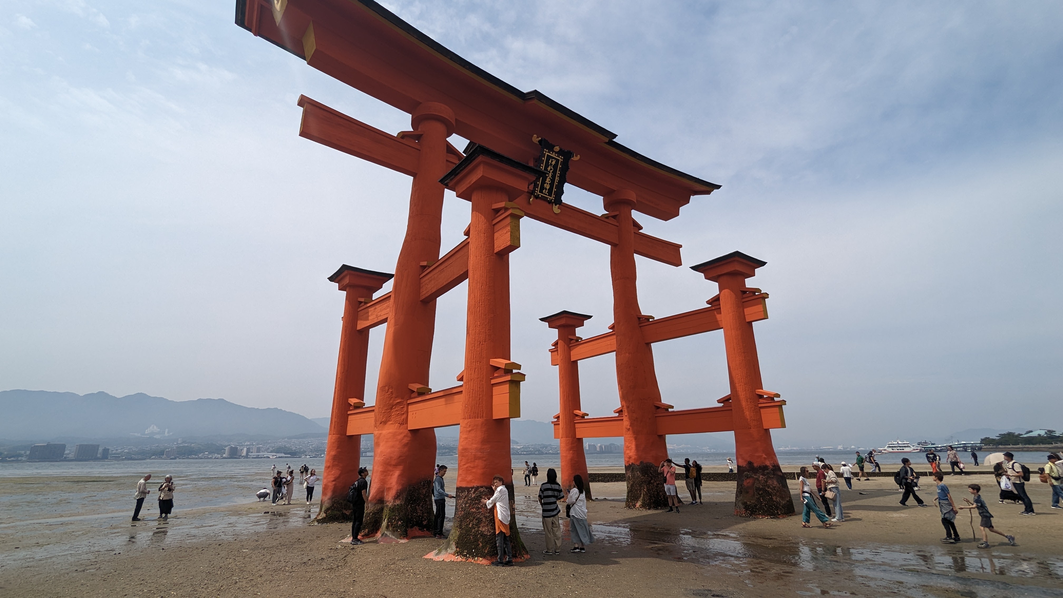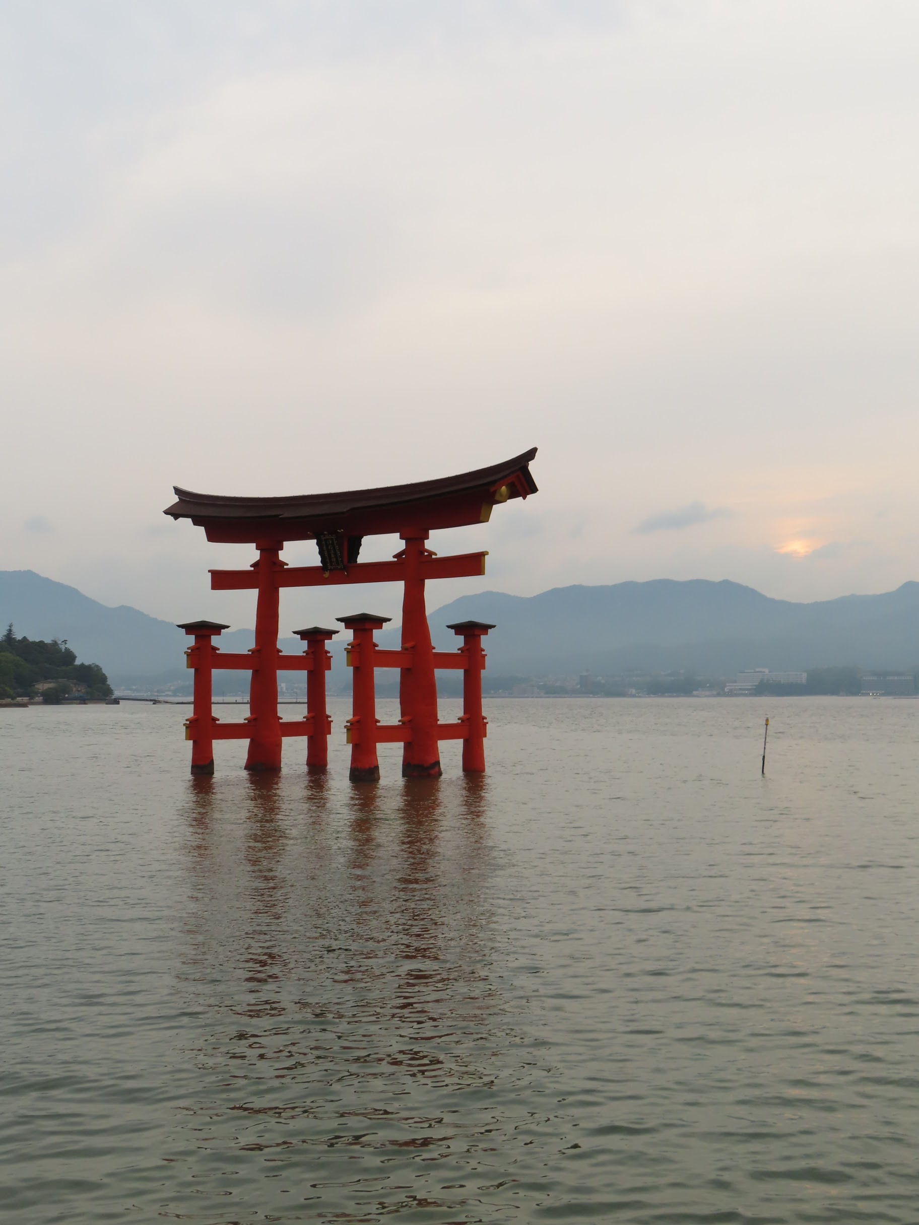 S’il y a bien un élément symbolique de ce lieu, c’est son immense torii rouge planté dans la baie et dont la base est submergée à marée haute. C’est incroyable comme cette porte aimante le regard et attire à elle le visiteur à toute heure de la journée. En tout cas, pour notre part, nous y sommes retournés au moins 5 fois, de jour comme de nuit, à marée basse comme à marée haute. On ne s’en est jamais lassé… Allez, on n’est pas radin, on vous met toute la série 🙂