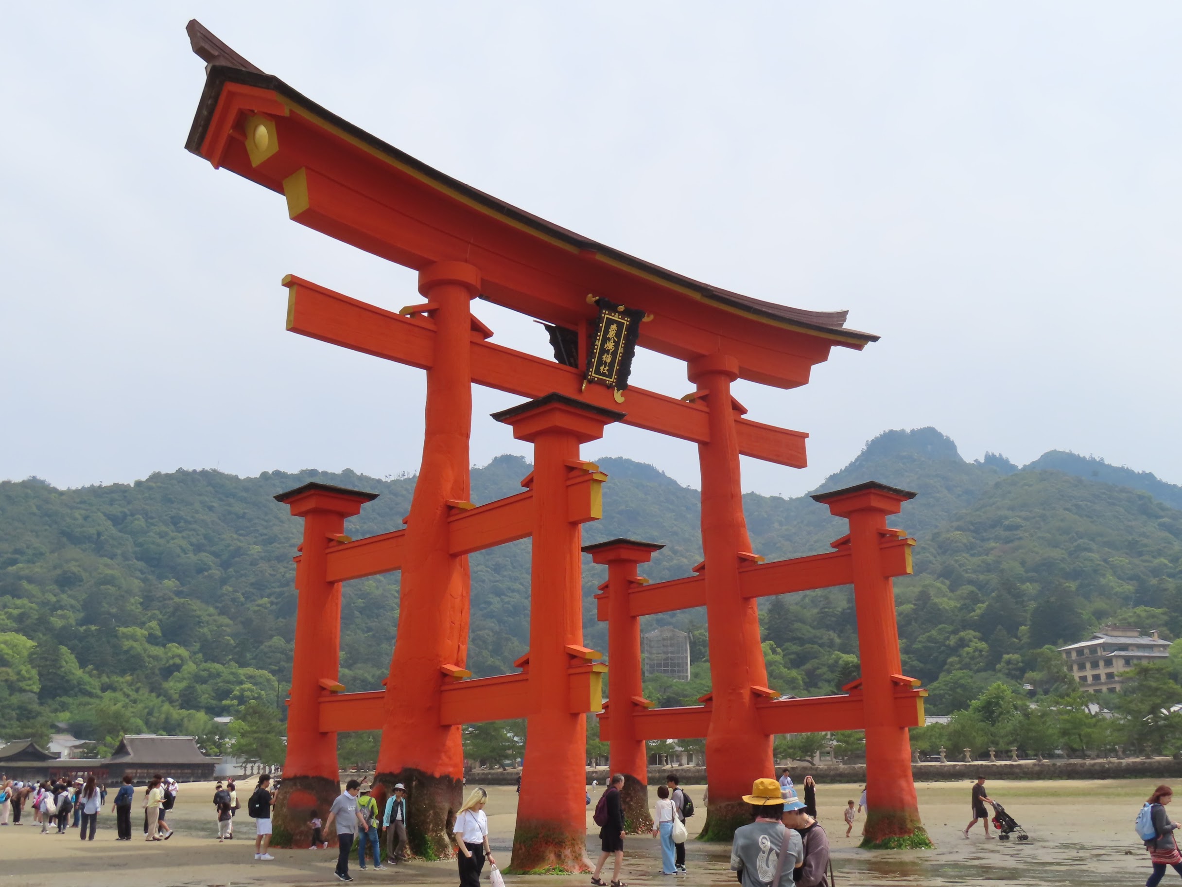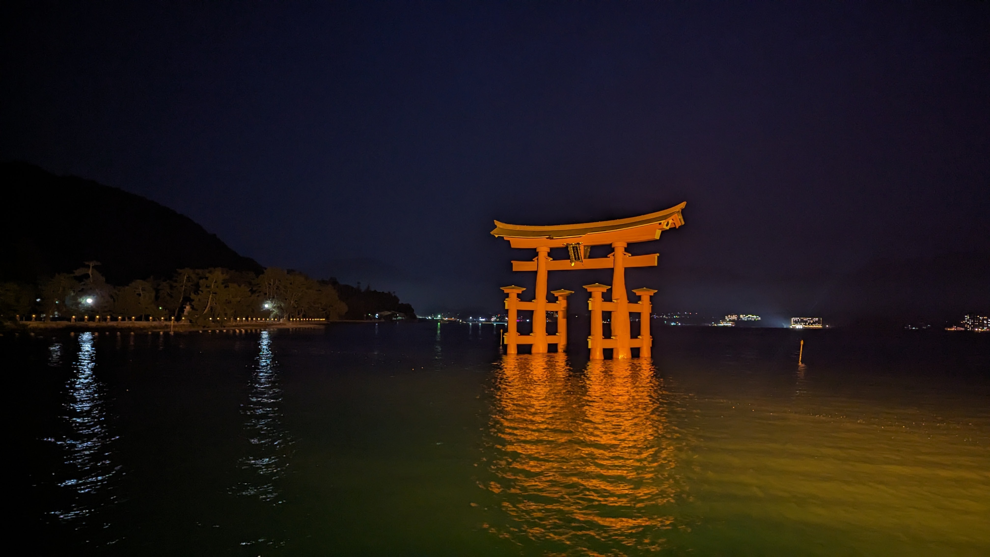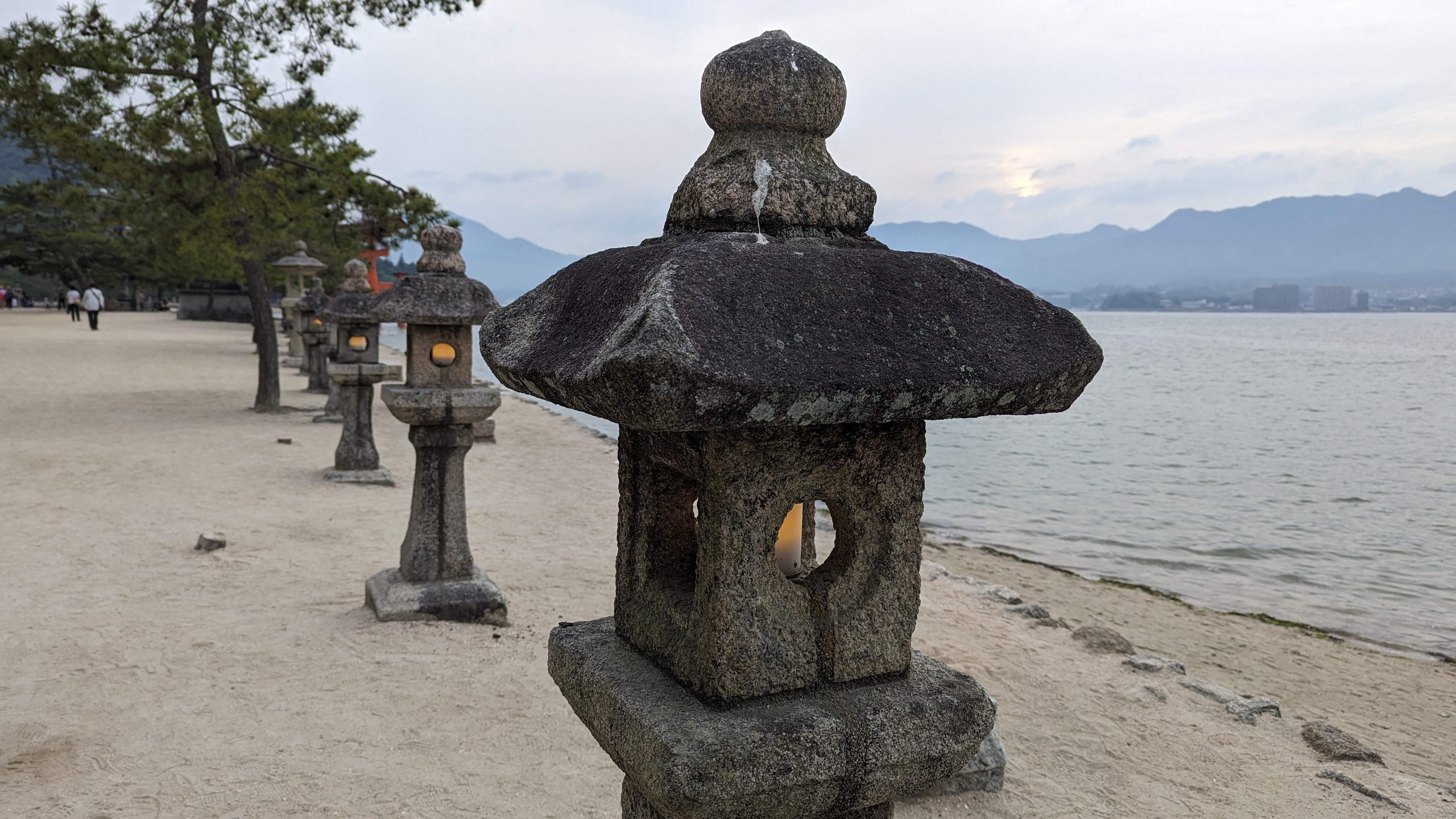 S’il y a bien un élément symbolique de ce lieu, c’est son immense torii rouge planté dans la baie et dont la base est submergée à marée haute. C’est incroyable comme cette porte aimante le regard et attire à elle le visiteur à toute heure de la journée. En tout cas, pour notre part, nous y sommes retournés au moins 5 fois, de jour comme de nuit, à marée basse comme à marée haute. On ne s’en est jamais lassé… Allez, on n’est pas radin, on vous met toute la série 🙂