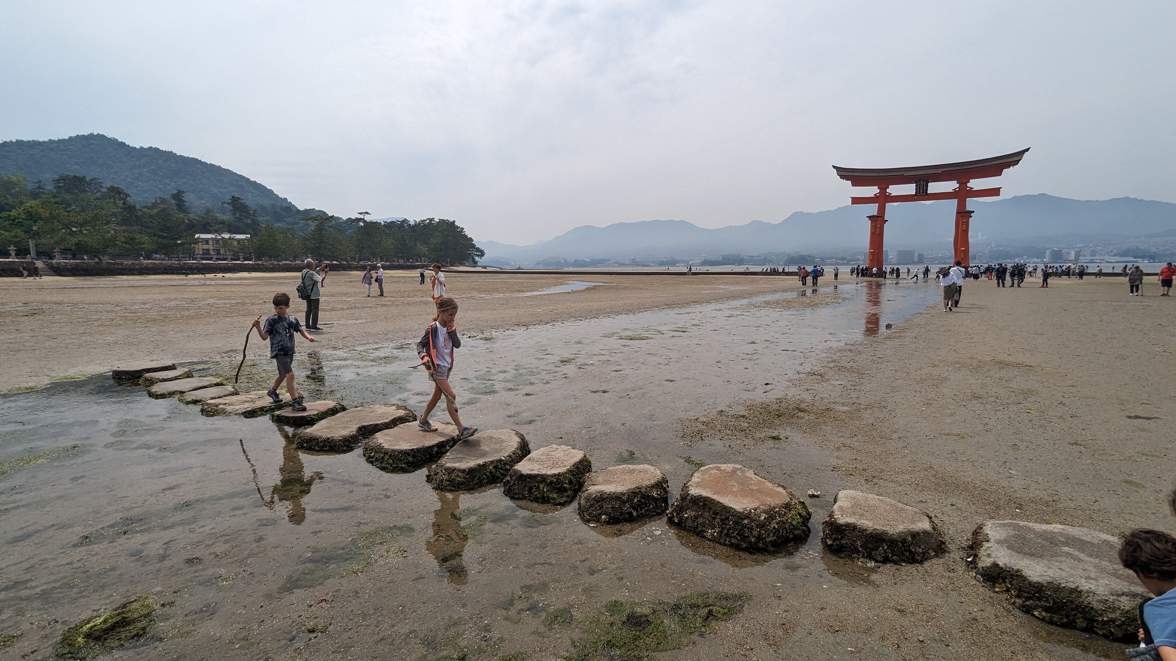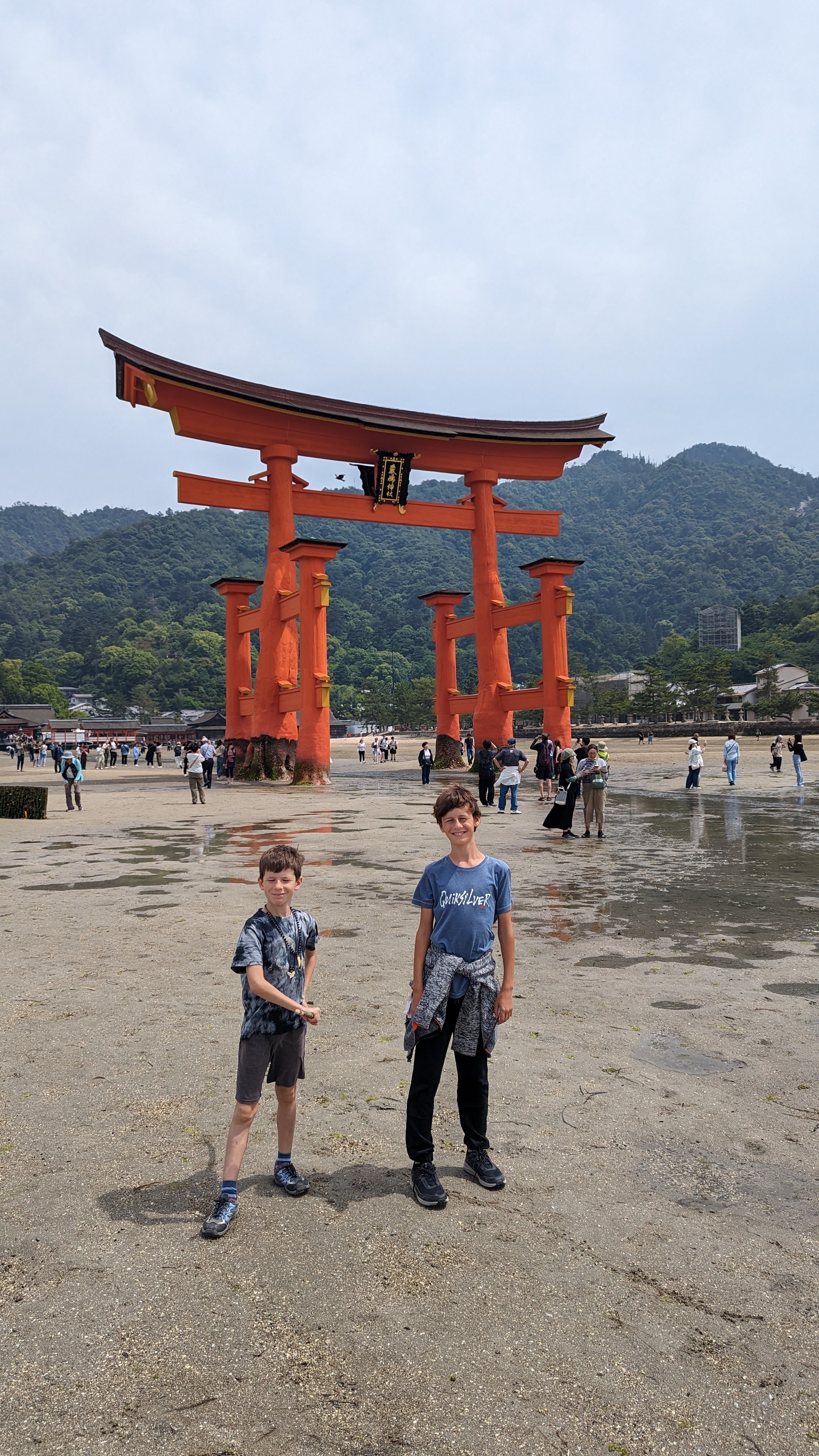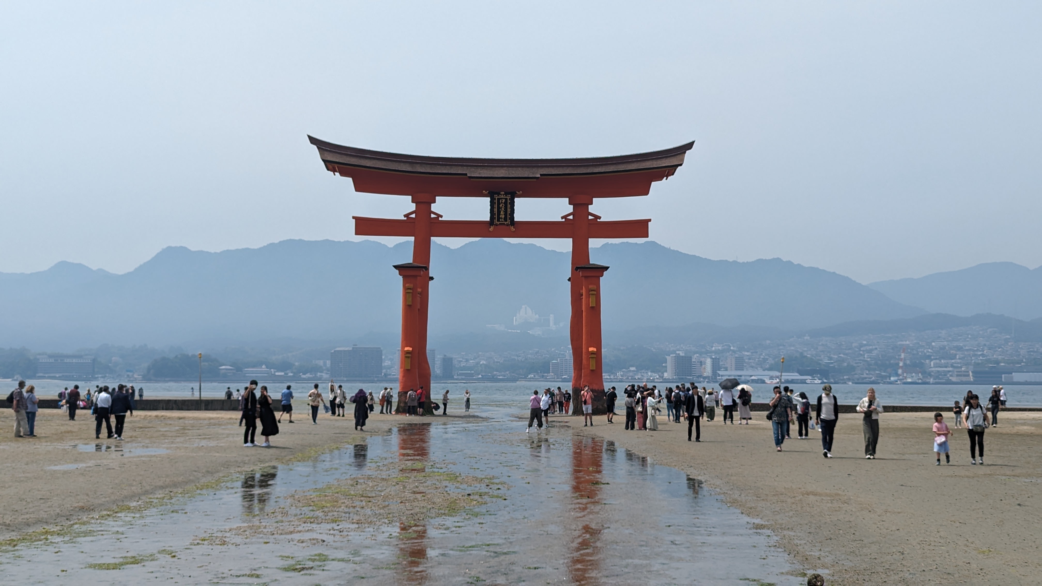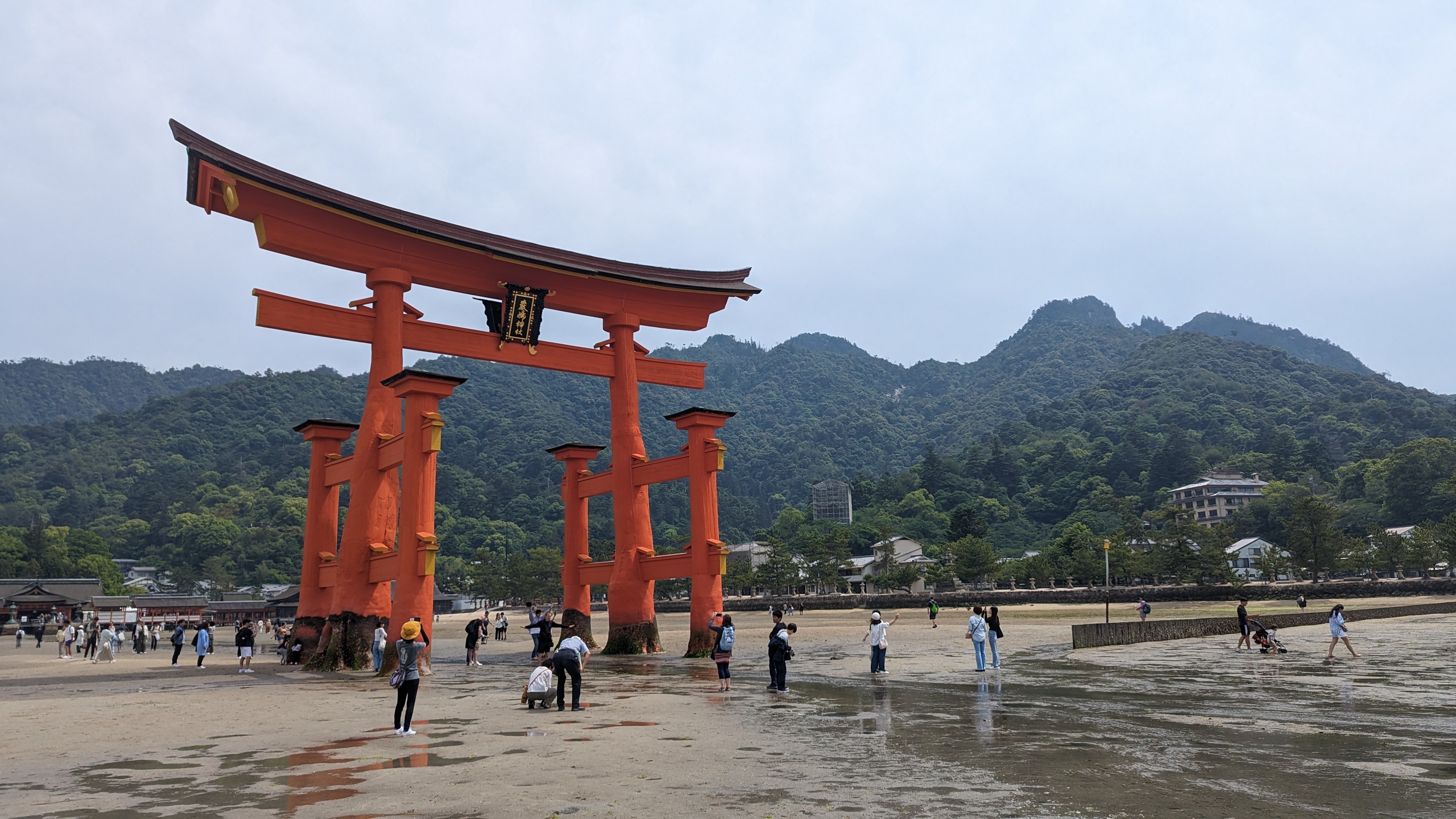 S’il y a bien un élément symbolique de ce lieu, c’est son immense torii rouge planté dans la baie et dont la base est submergée à marée haute. C’est incroyable comme cette porte aimante le regard et attire à elle le visiteur à toute heure de la journée. En tout cas, pour notre part, nous y sommes retournés au moins 5 fois, de jour comme de nuit, à marée basse comme à marée haute. On ne s’en est jamais lassé… Allez, on n’est pas radin, on vous met toute la série 🙂
