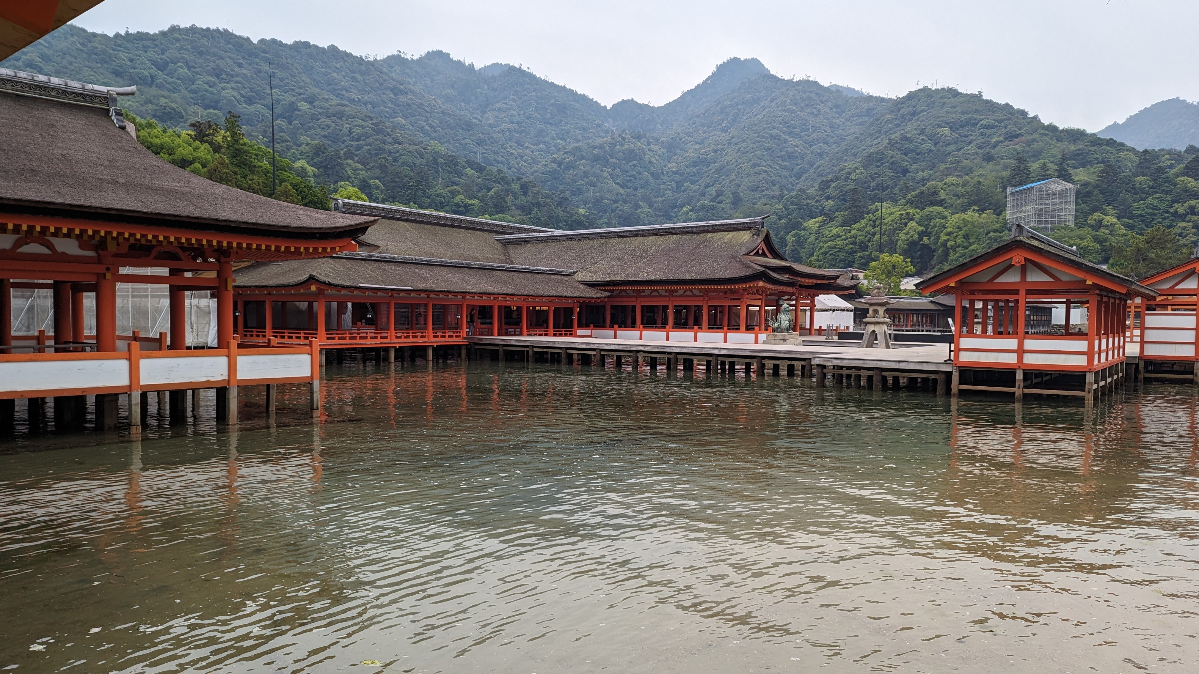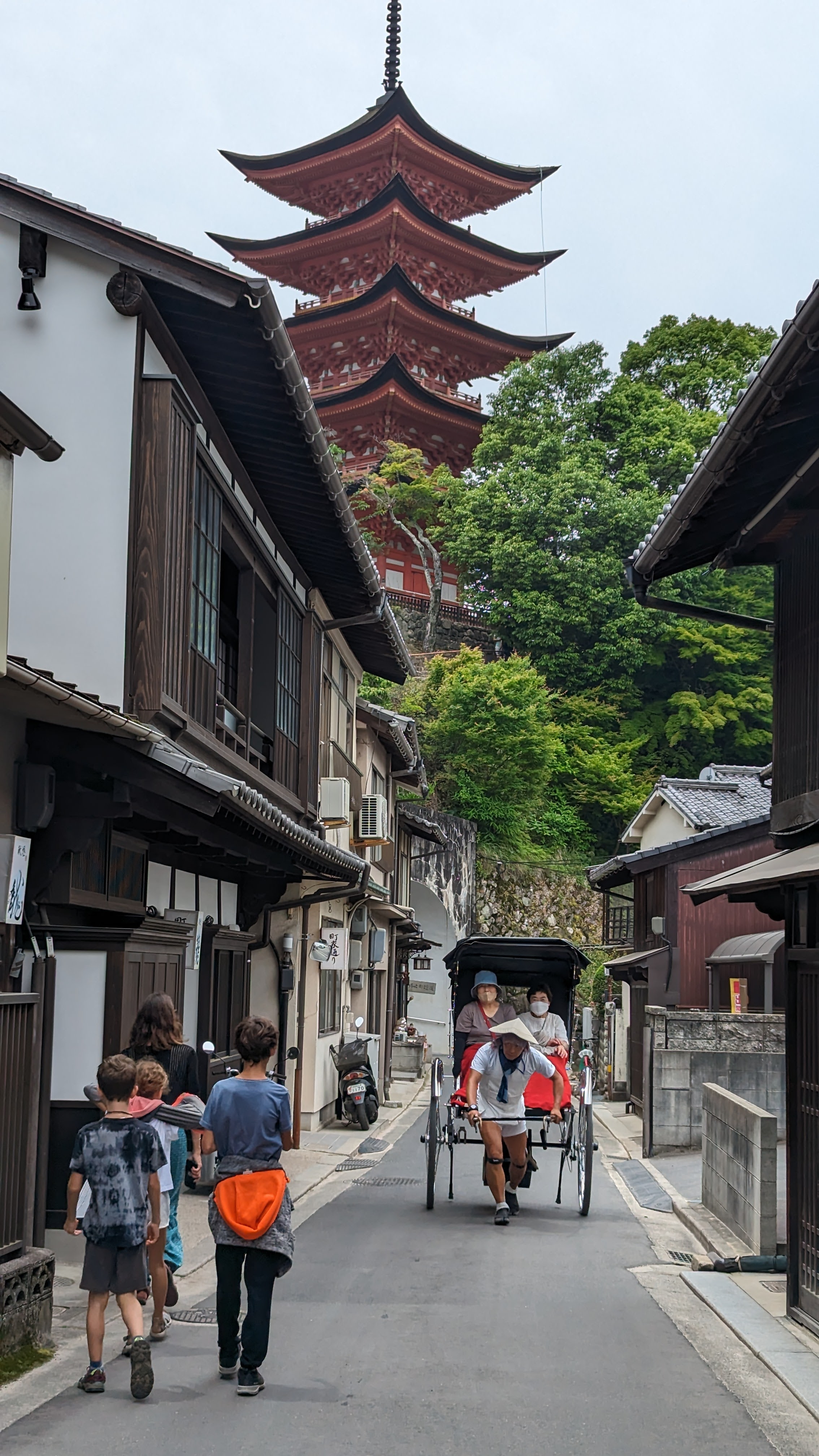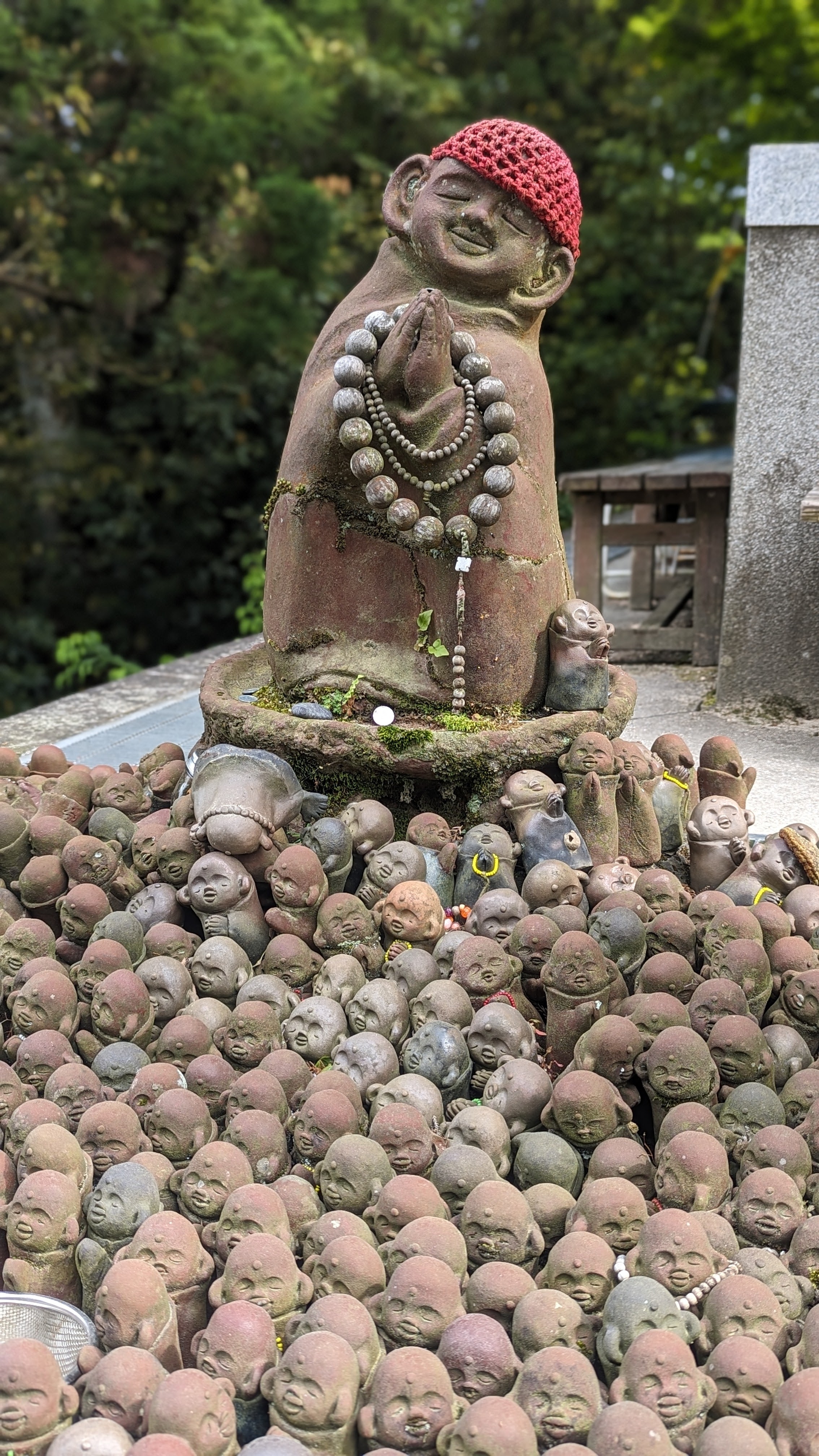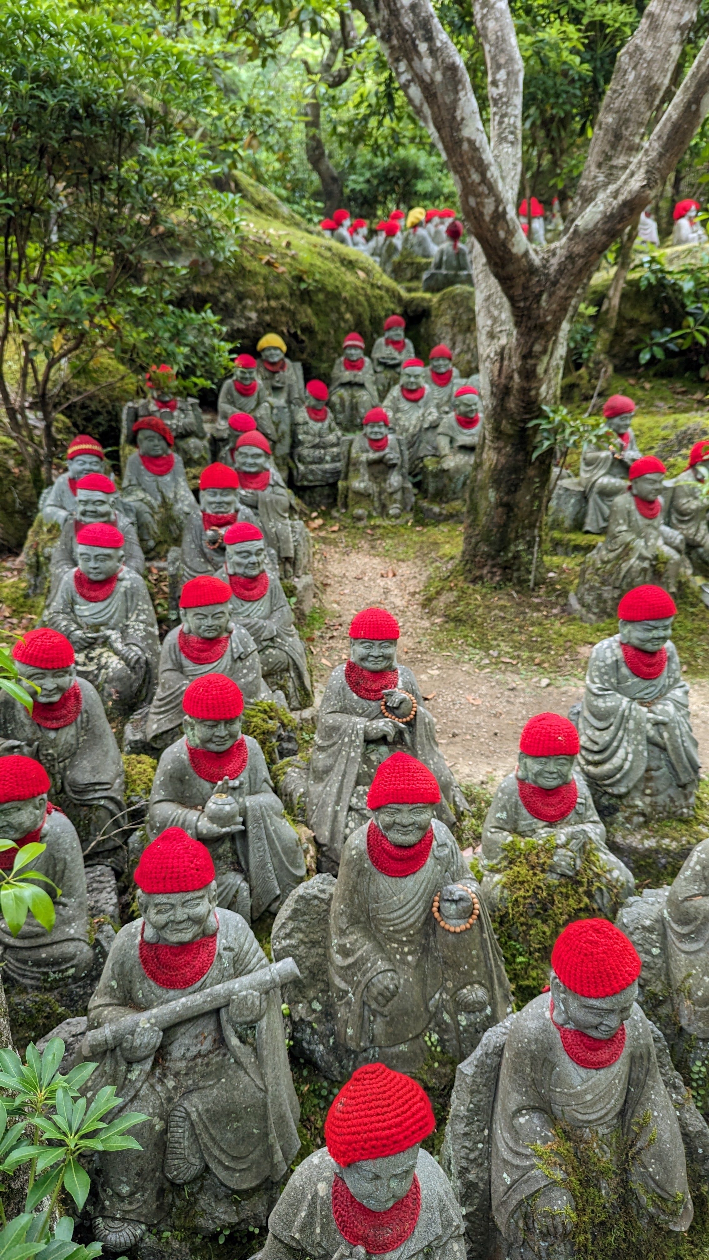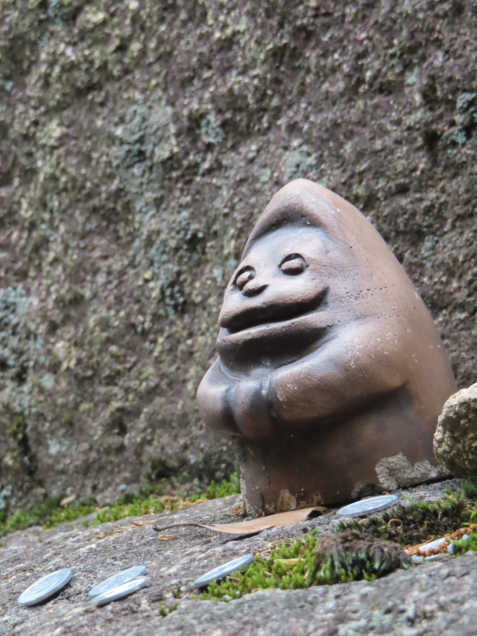 Par ailleurs, l’île est très montagneuse, culminant à plus de 500m sur une surface très faible. De plus, les flancs à pics des montagnes sont recouverts d’une forêt primaire quasi impénétrable, digne des plus beaux animés de Miyazaki. On n’a pas fait les malins, on est monté en téléphérique (mais redescendus à pied). Du sommet, malgré le temps brumeux, on avait une vue formidable sur la mer intérieur de Seto, celle qui relie entre elles toutes les îles japonaises, mer elle-même parsemée d’une myriade de petites îles. Sur le chemin, comme partout au Japon, une myriade de petits sanctuaires plus pittoresques les uns que les autres.