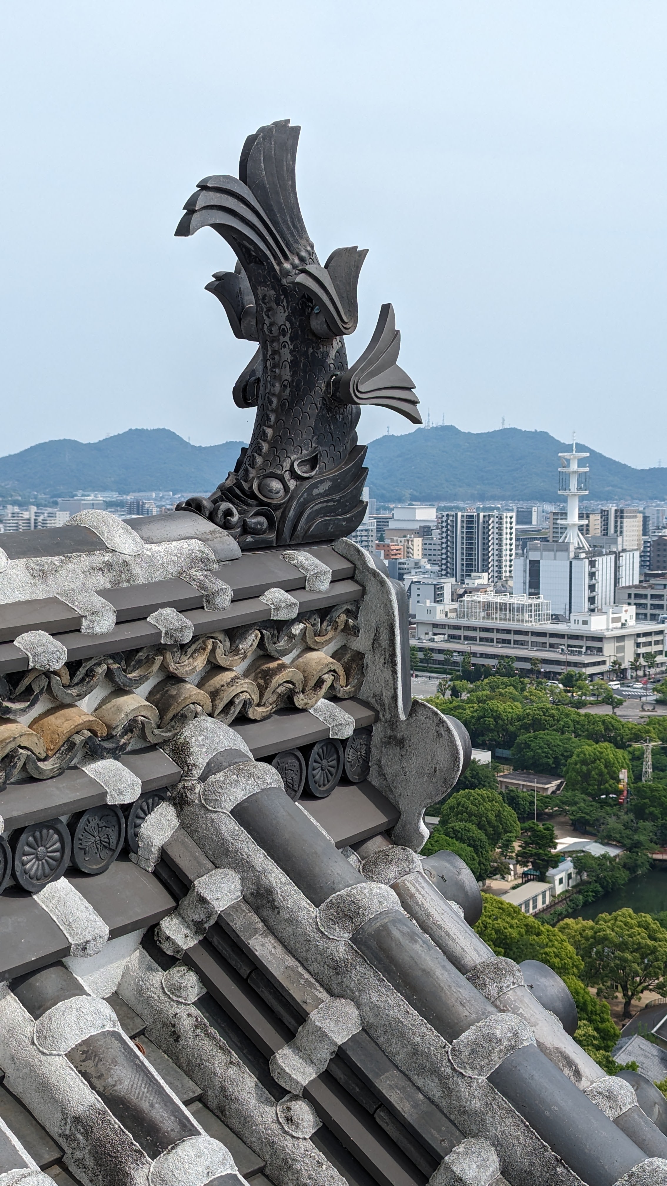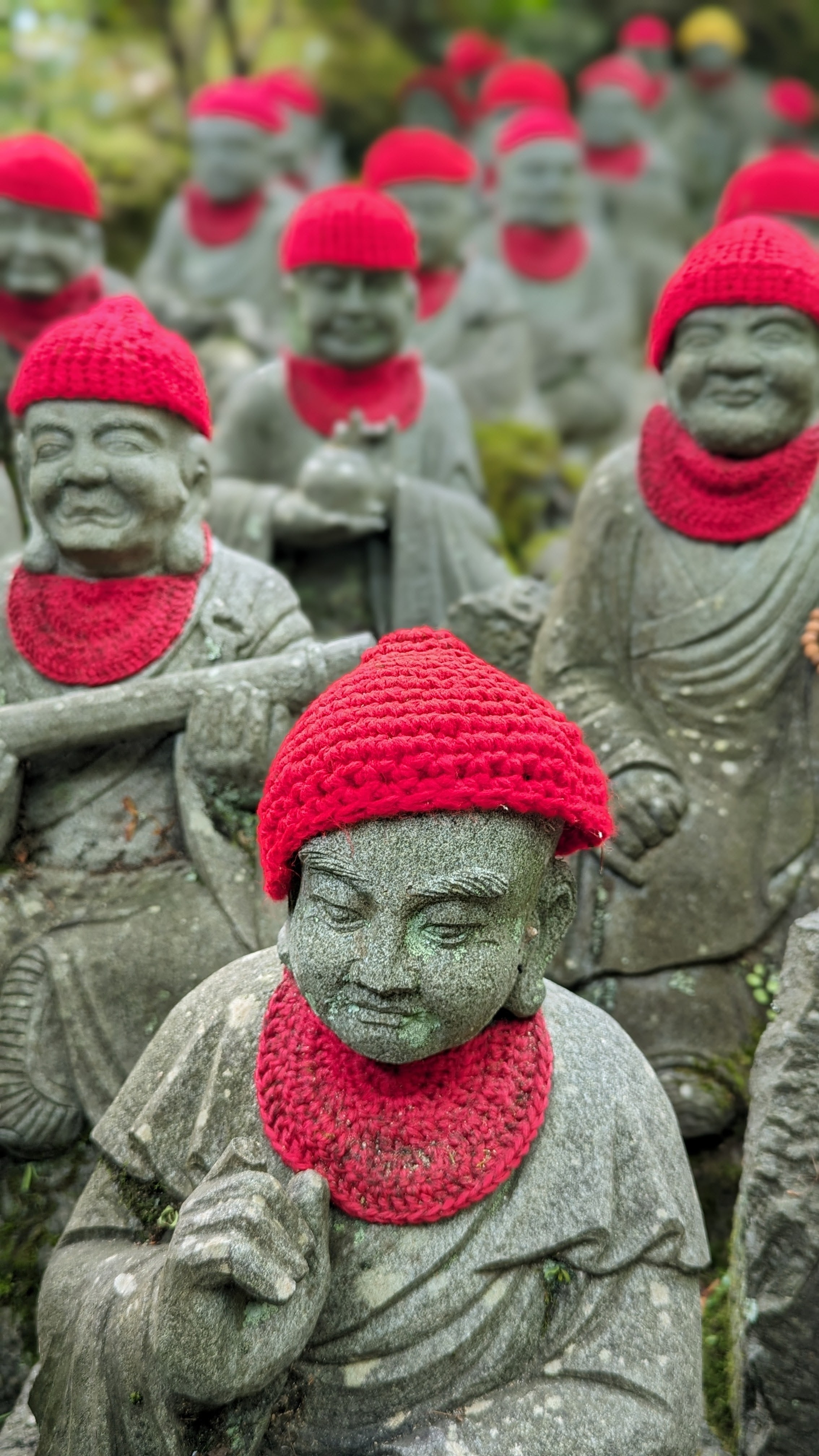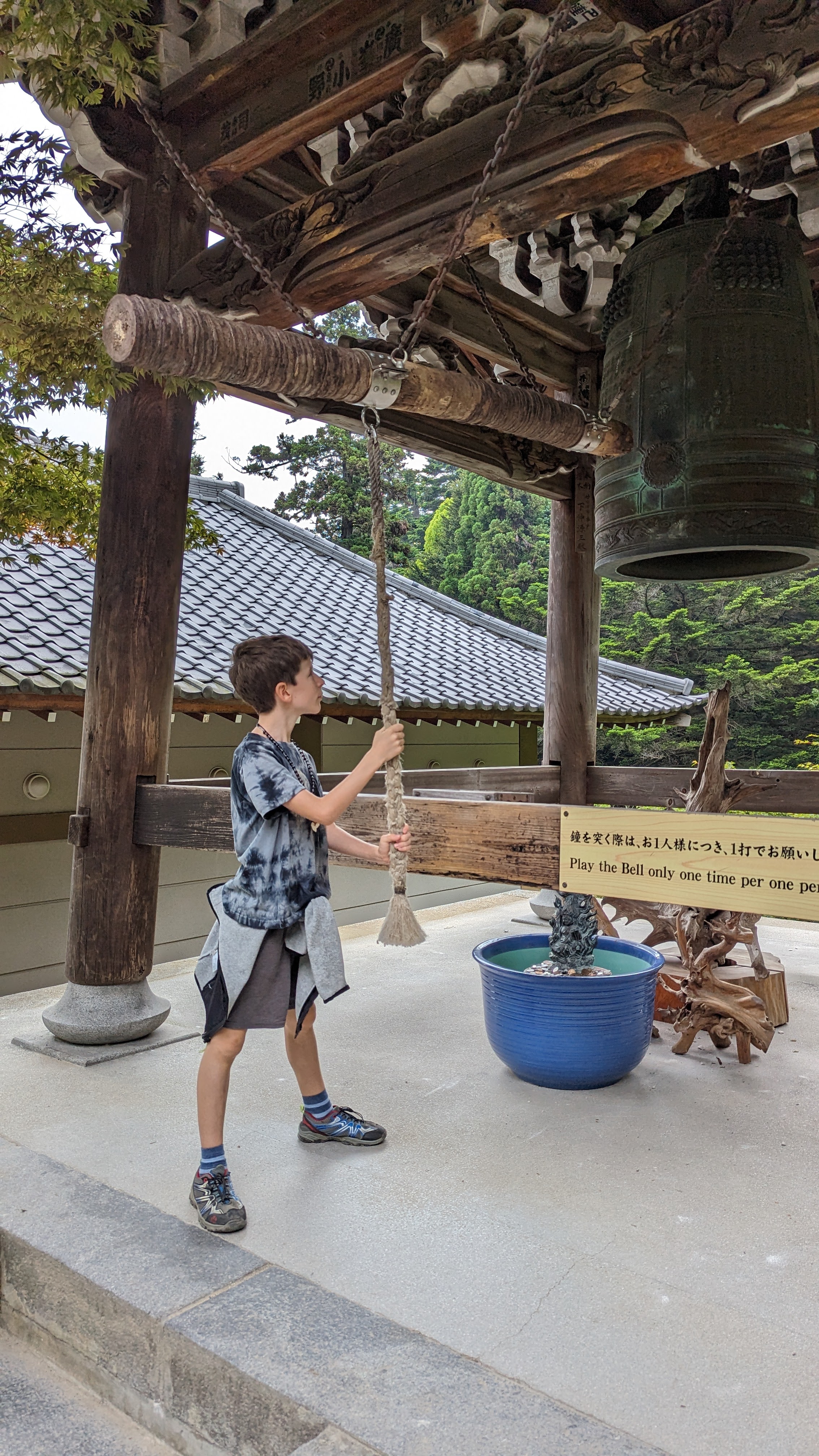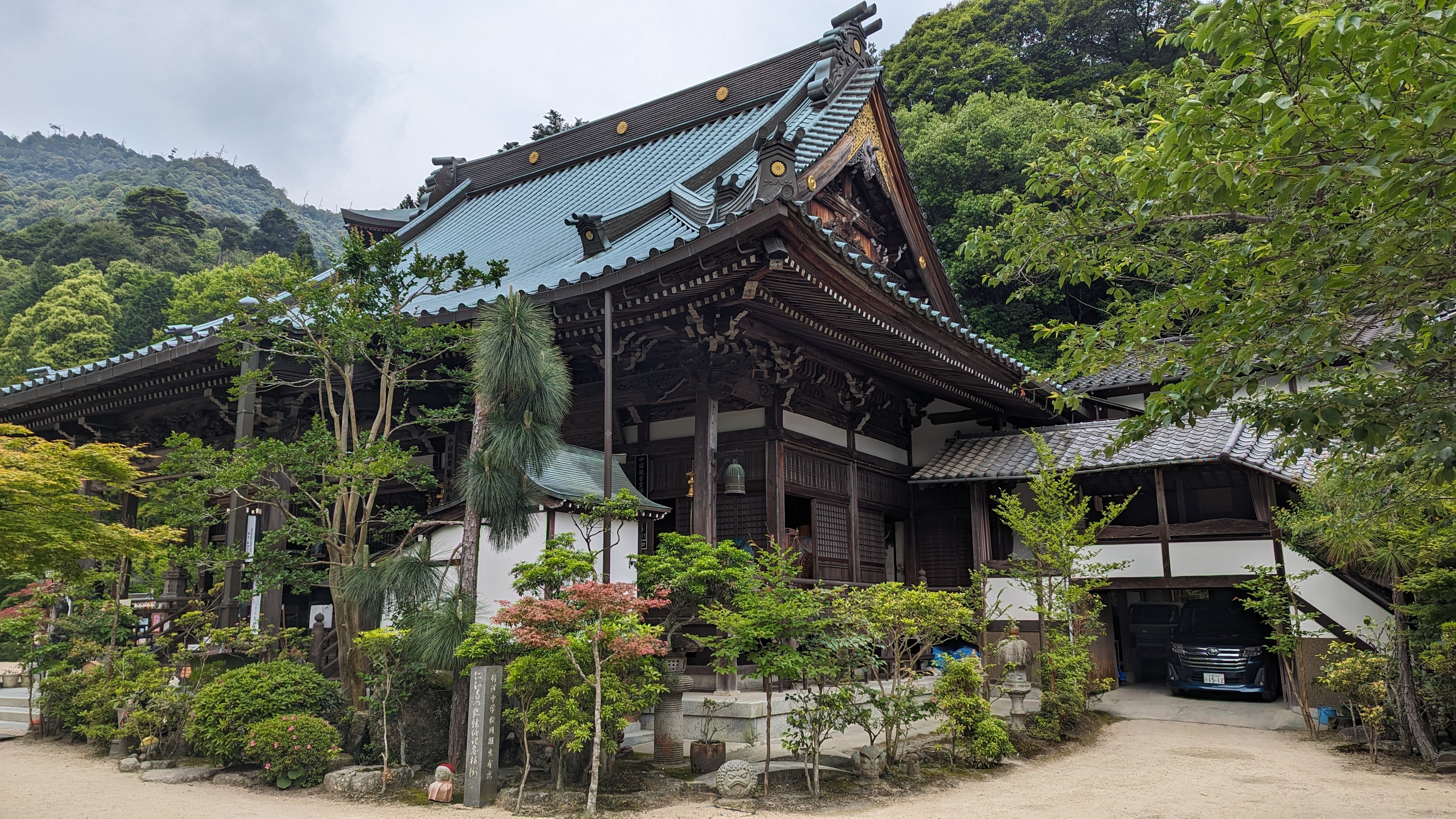 Par ailleurs, l’île est très montagneuse, culminant à plus de 500m sur une surface très faible. De plus, les flancs à pics des montagnes sont recouverts d’une forêt primaire quasi impénétrable, digne des plus beaux animés de Miyazaki. On n’a pas fait les malins, on est monté en téléphérique (mais redescendus à pied). Du sommet, malgré le temps brumeux, on avait une vue formidable sur la mer intérieur de Seto, celle qui relie entre elles toutes les îles japonaises, mer elle-même parsemée d’une myriade de petites îles. Sur le chemin, comme partout au Japon, une myriade de petits sanctuaires plus pittoresques les uns que les autres.
