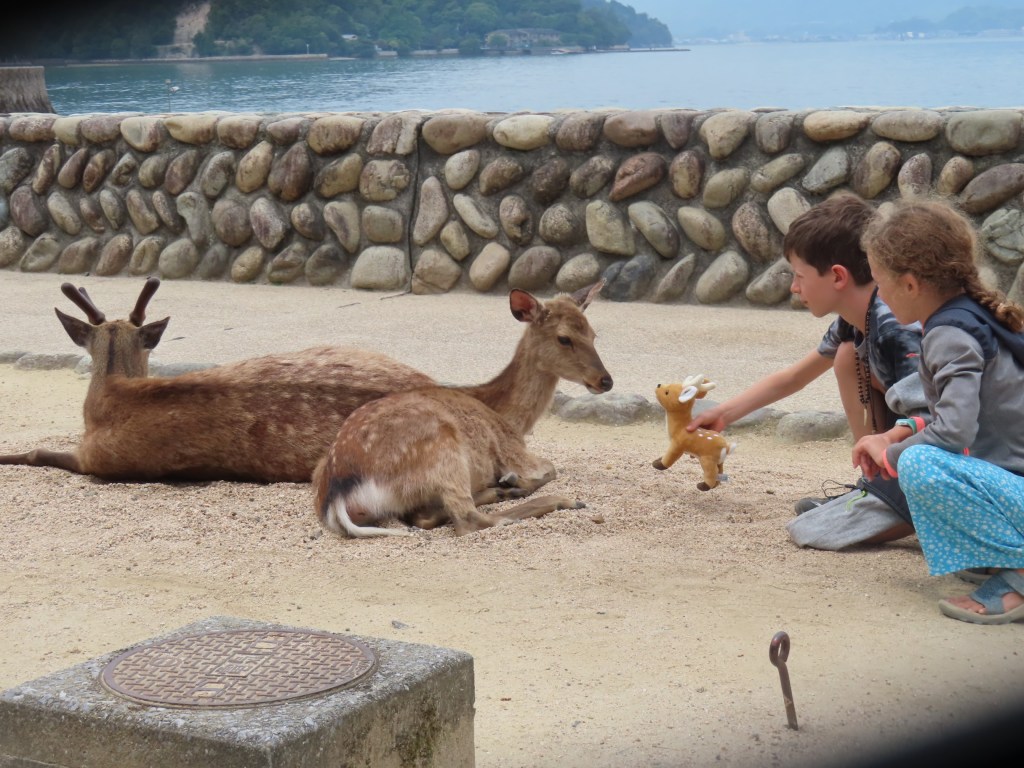 Une dernière raison de venir jusqu’à Hiroshima, s’il en fallait vraiment une autre, c’est d’aller visiter l’île toute proche de Miyajima. Proche de la ville et proche du rivage, 10 minutes à peine suffisent à la rallier en ferry depuis l’île principale. Pourtant, c’est tout à fait un autre monde qui attend le visiteur de l’autre côté du détroit, surtout s’il a pris soin d’y passer la nuit pour laisser passer les hordes de touristes afin de profiter du calme revenu une fois la nuit tombée. On y est accueilli par des troupeaux de cerfs sika complètement habitués à l’homme (trop peut-être) mais dont la présence ravit autant les enfants que les amateurs de One Piece (coucou Chopper !).