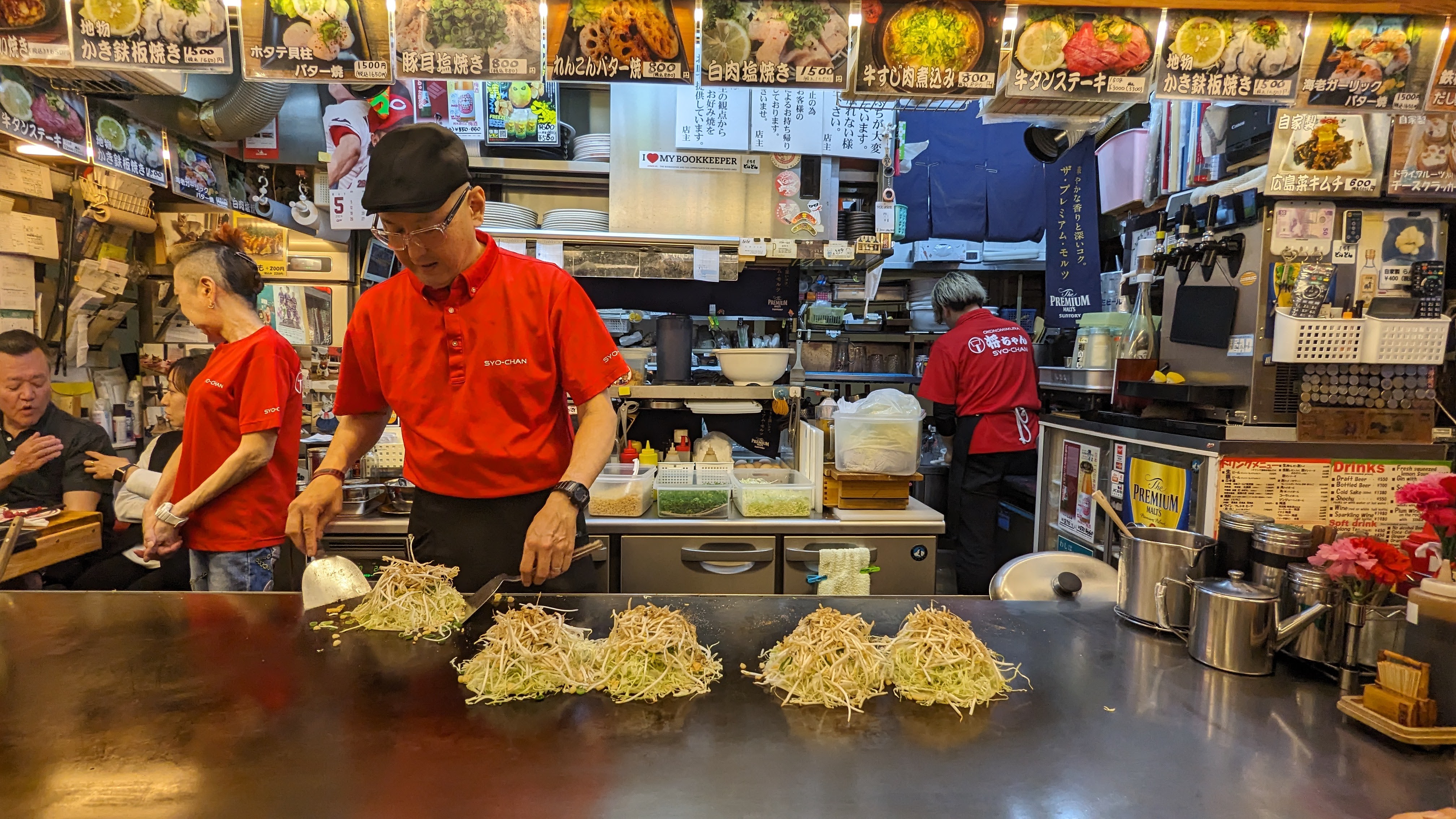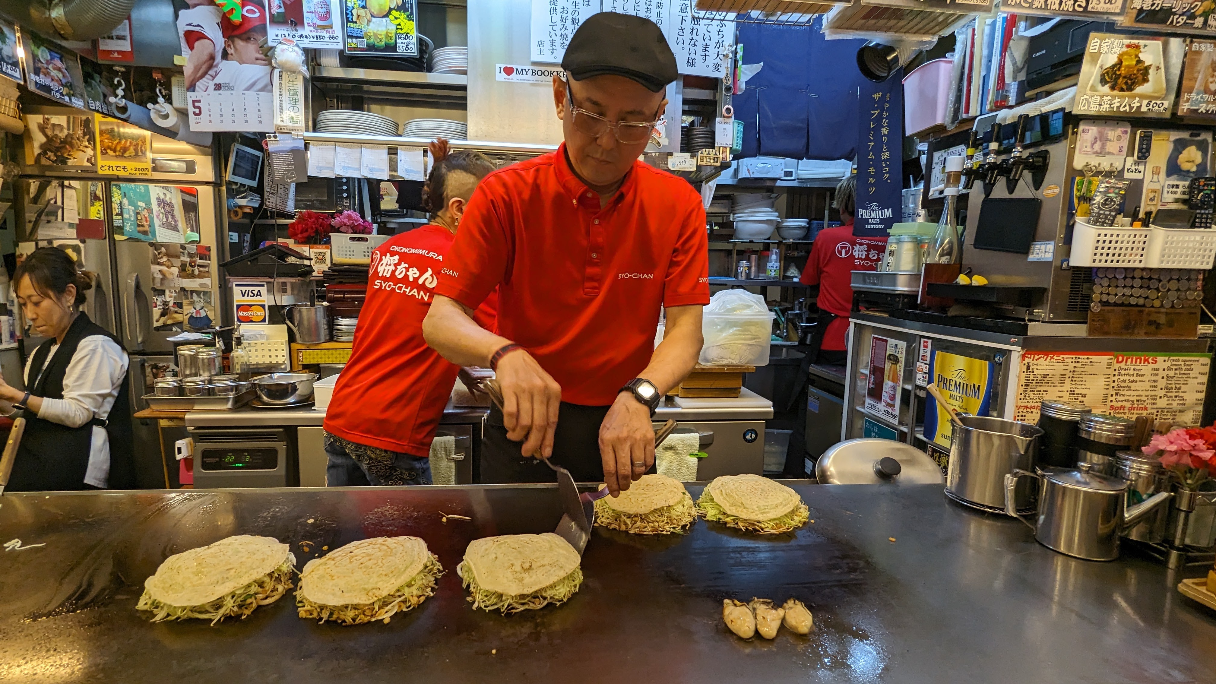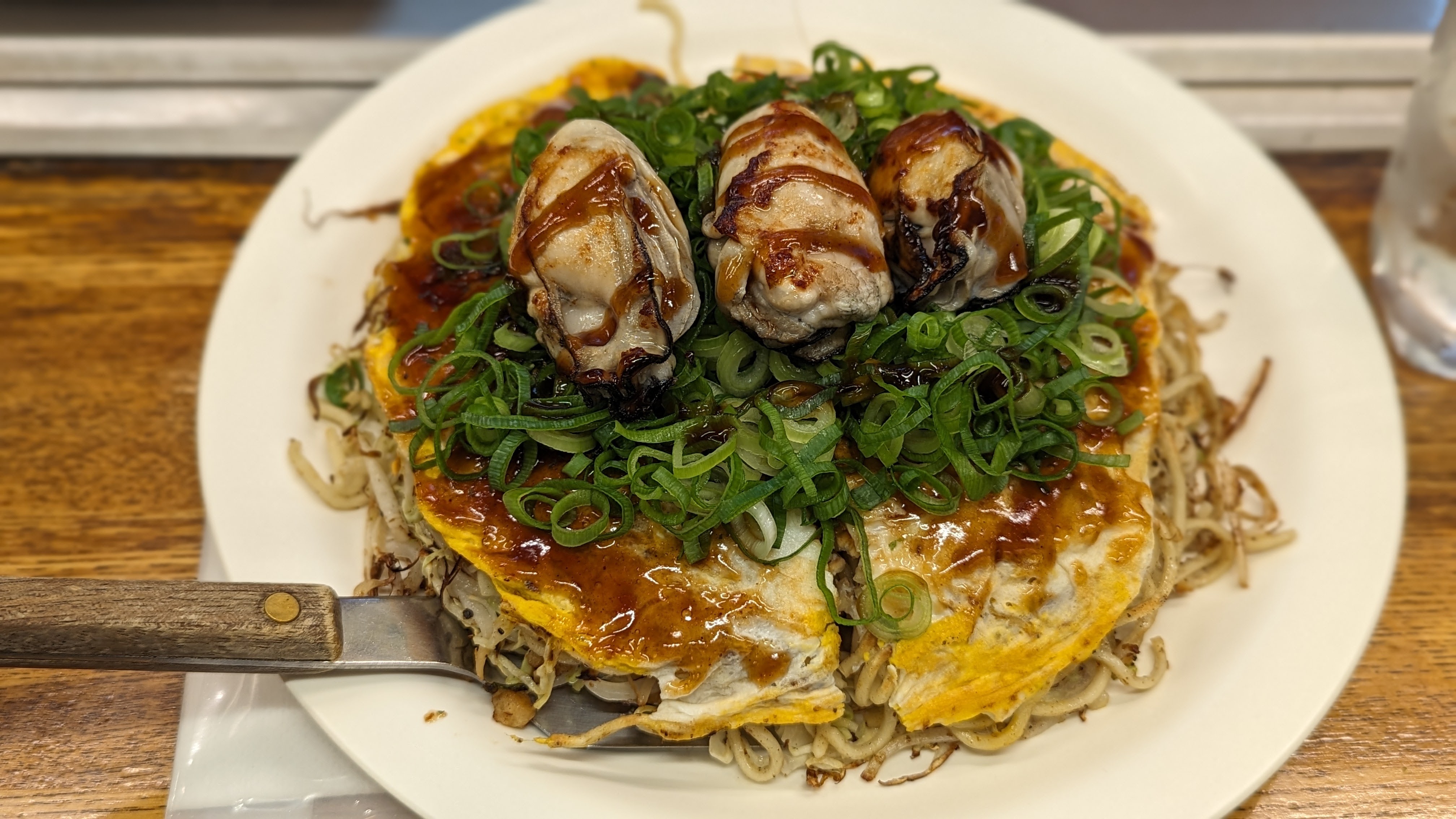 Mais Hiroshima est célèbre dans tout le Japon pour une spécialité culinaire : les okonomiyaki, un mélange improbable entre une omelette et une galette, fourré au chou, aux nouilles et à plein d’autres trucs. Alors bien sûr, on peut en trouver ailleurs dans le pays mais celles d’Hiroshima ont une recette unique, spécifique à la ville. Et aller au restaurant pour voir le cuisinier la préparer sous nos yeux, c’était un plaisir supplémentaire à celui de la dégustation (et on vous garantit qu’on n’a pas faim après).