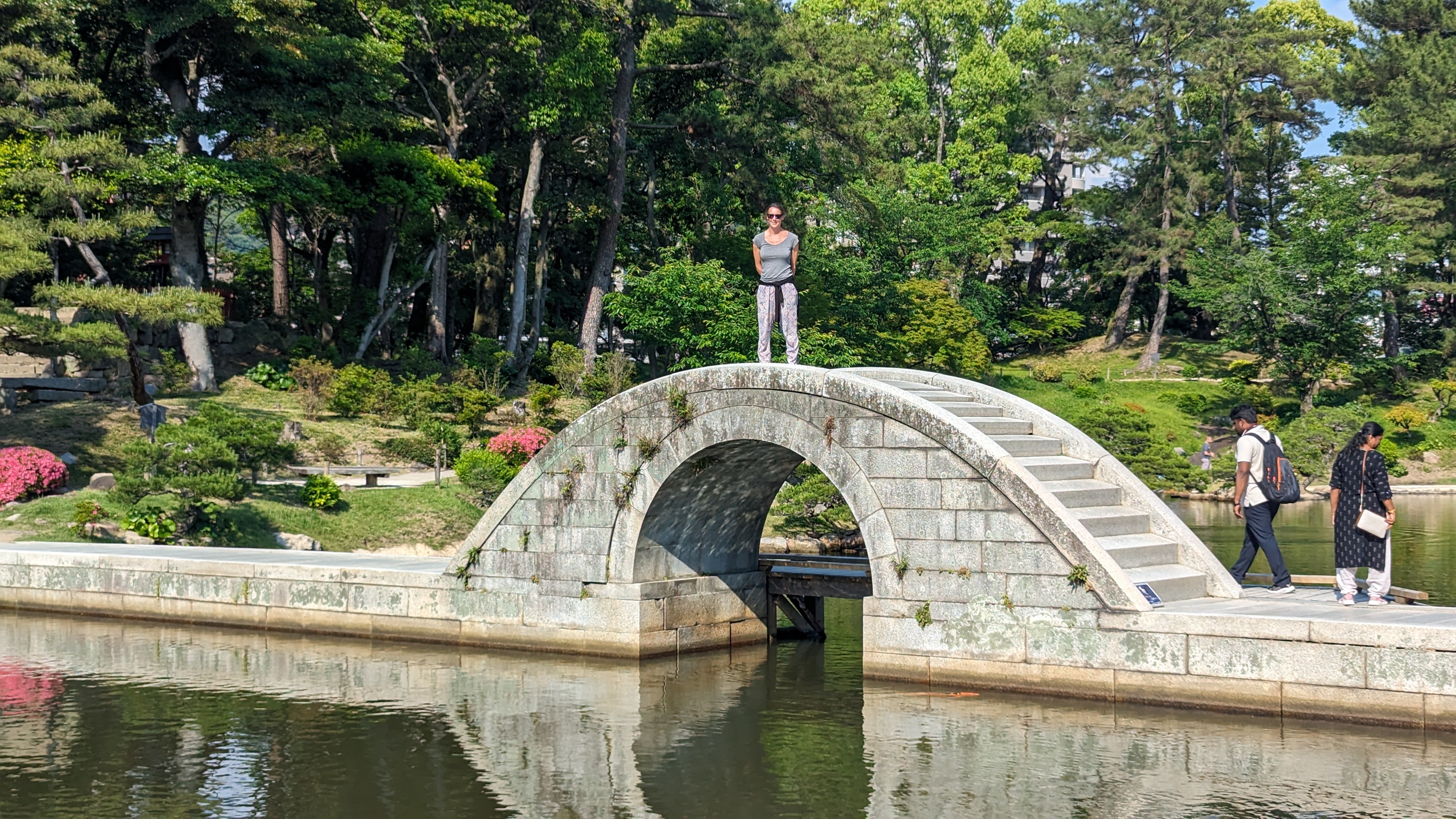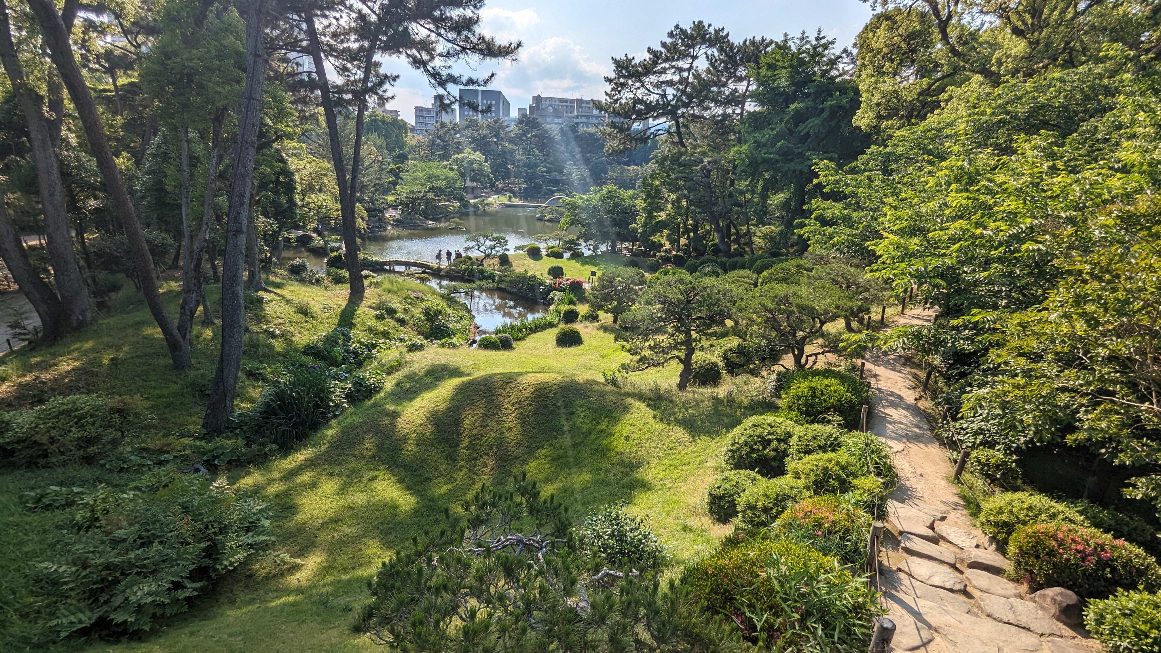 Bon mais on vous disait qu’il y avait d’autres choses à voir, non ? La ville compte aussi un château (évidemment entièrement reconstruit après la bombe) dont le donjon, et surtout les douves, ne manquent pas de charme. Un peu plus loin, c’est un sublime jardin japonais qui attend les promeneurs. On commence à en avoir vu des jardins japonais, et on peut dire que celui-ci se classe dans les tops. Comme tous les jardins de ce type, il cherche à reproduire de façon idéalisée la nature et les paysages du pays dans tous leurs états. On y retrouve donc une montagne, des cascades, même de petites rizières et des plantations de thé. Et évidemment beaucoup de sérénité.