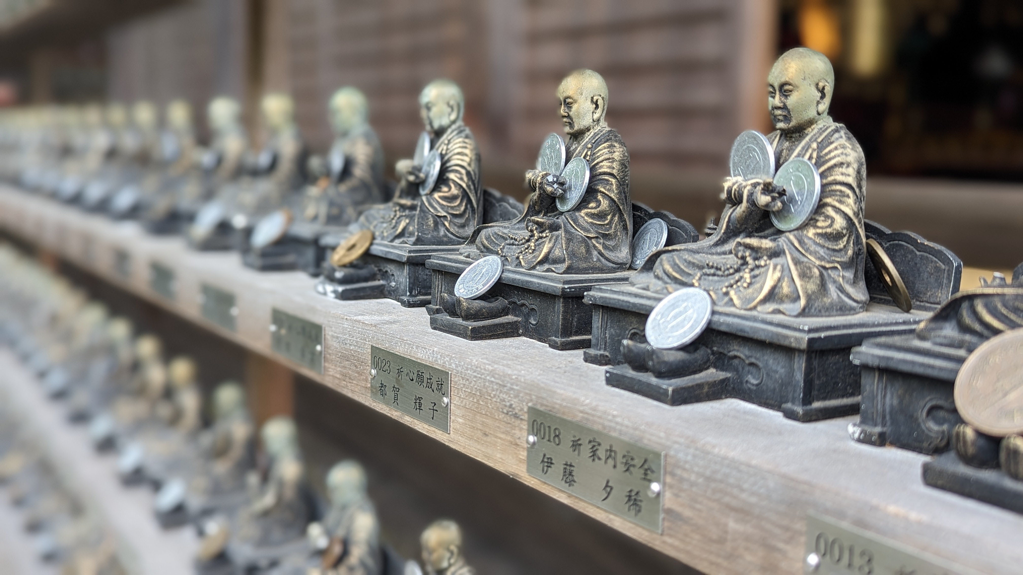 L’île est couverte de divers temples (bouddhiques) et sanctuaires (shintoïstes). Le sanctuaire le plus sacré est construit sur pilotis, flottant majestueusement au dessus de la baie quand la marée est haute. Mais il est loin d’être seul et on ne sait plus où donner de la tête entre les différents lieux de culte, tous plus beaux les uns que les autres et surtout regorgeant de petits détails propres à satisfaire l’œil. Oui, définitivement, le Japon est le pays le plus photogénique du monde !