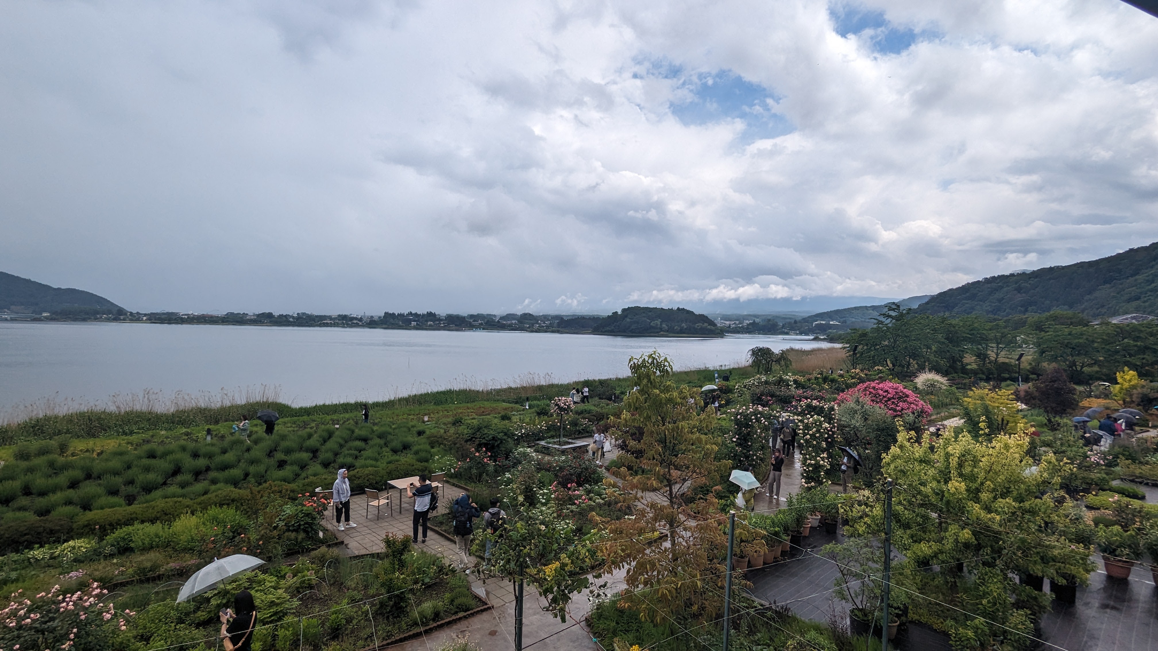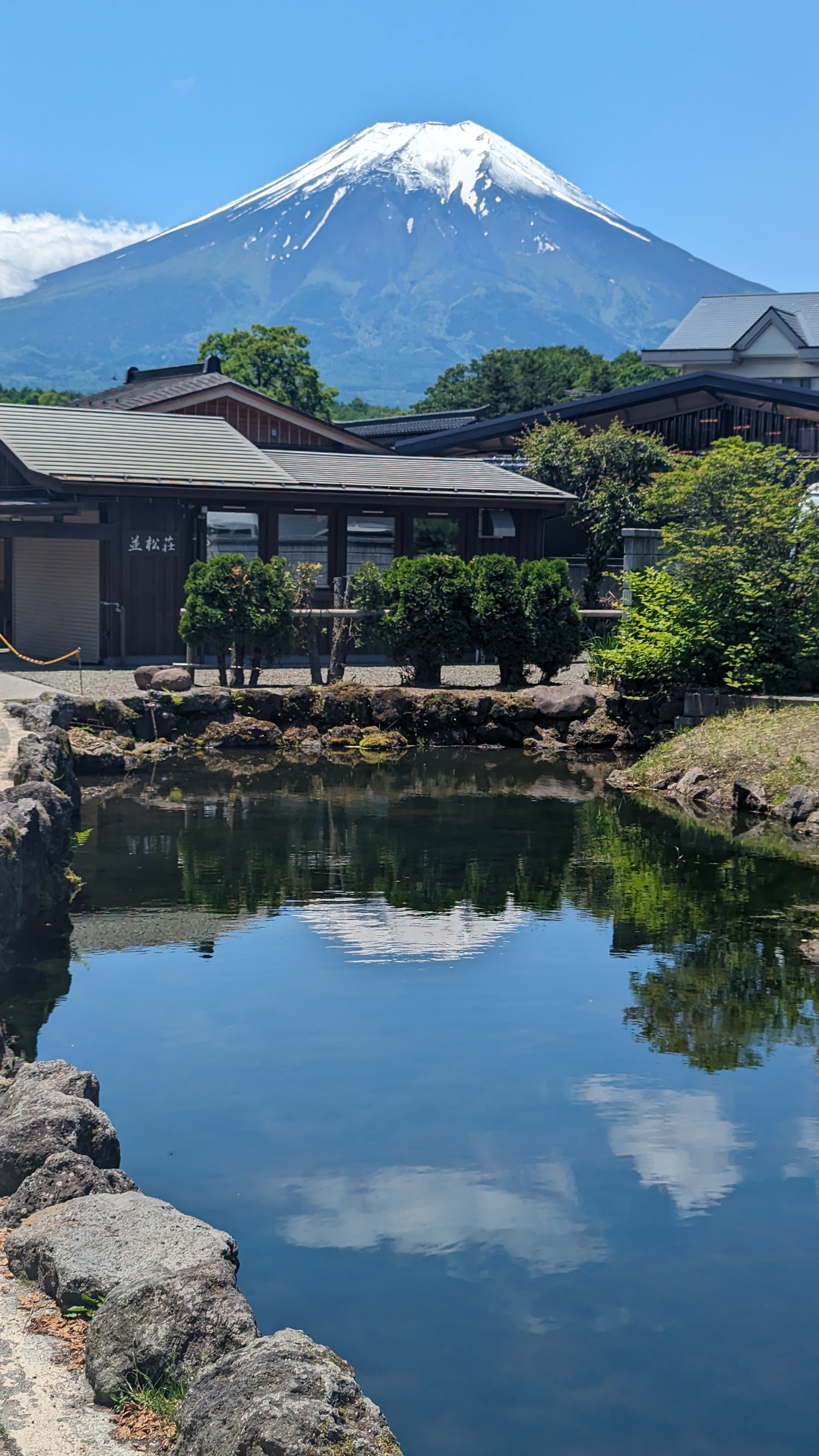 Par exemple, là, au fond, il devrait y avoir un beau Fuji entier qui se refléterait dans le lac…