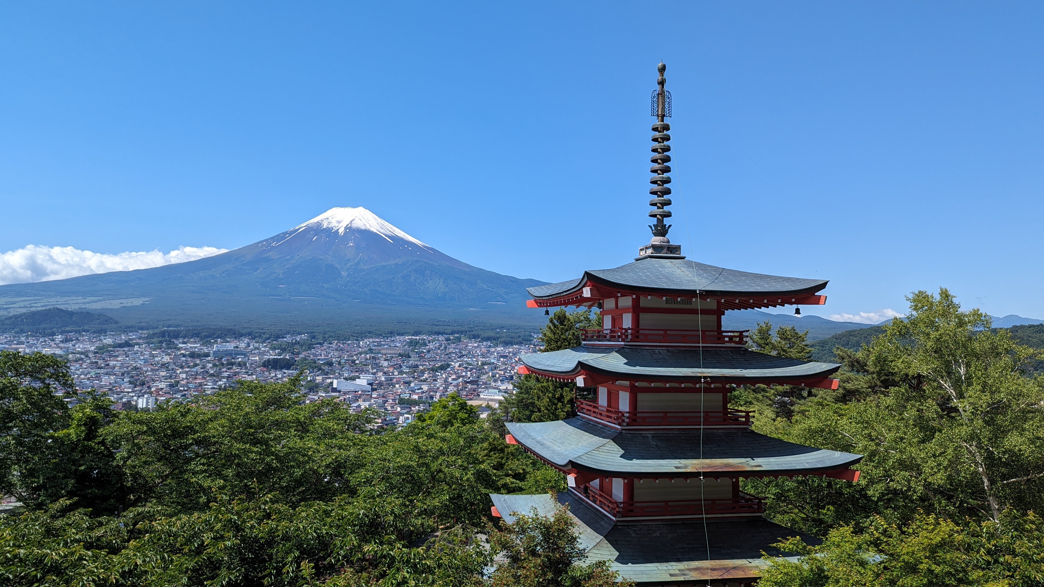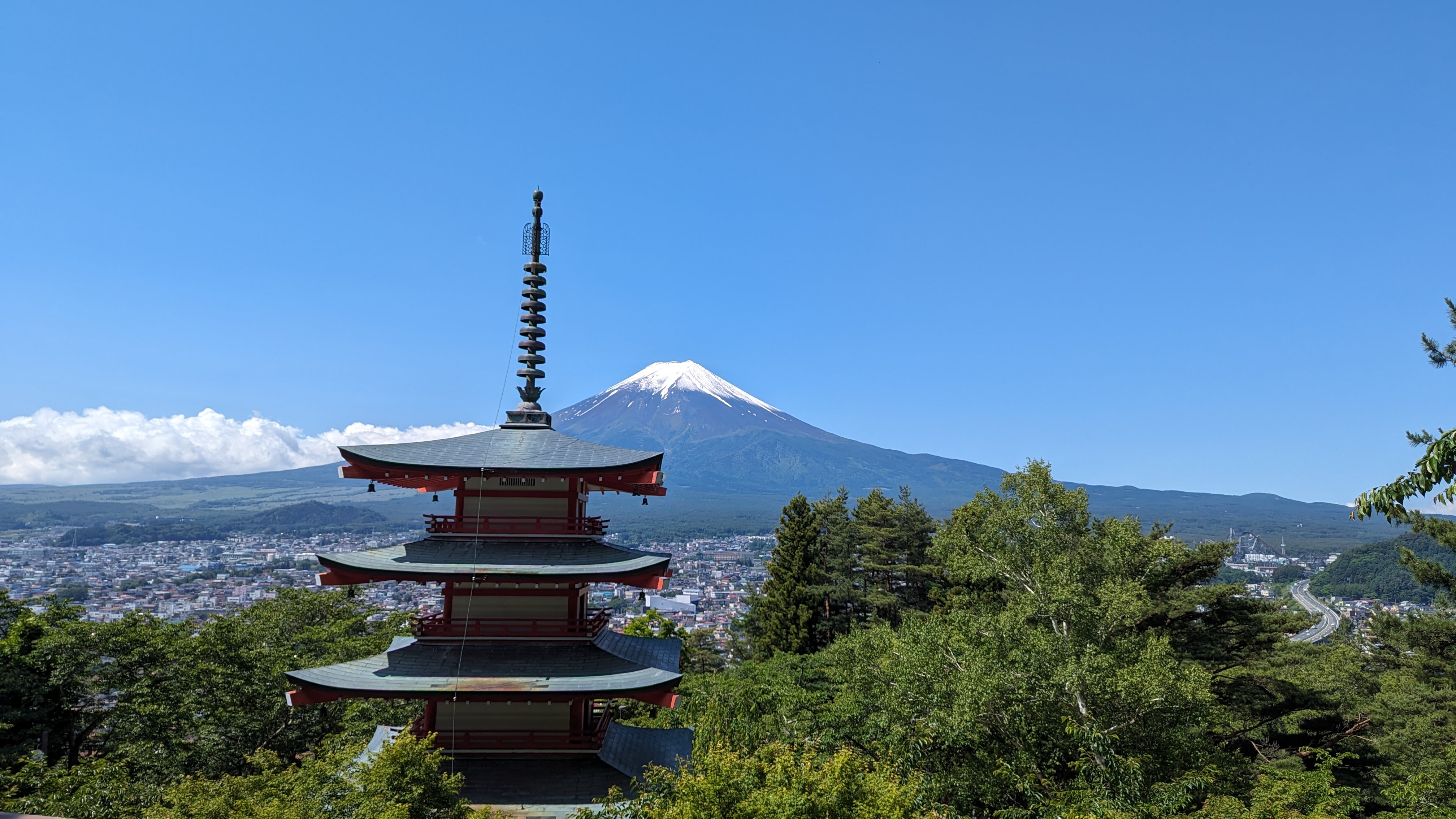 Et bien voilà, la patience a payé, on l’a eue notre belle journée autour du Fuji. Mais on a quand même eu beaucoup de chance car cette journée dégagée était la première depuis une semaine (moche), et qu’elle sera visiblement la seule tout court pour un moment (le gris s’est bien installé au Japon). Bref, nous sommes arrivés pile dans le bon intervalle. Chouette !