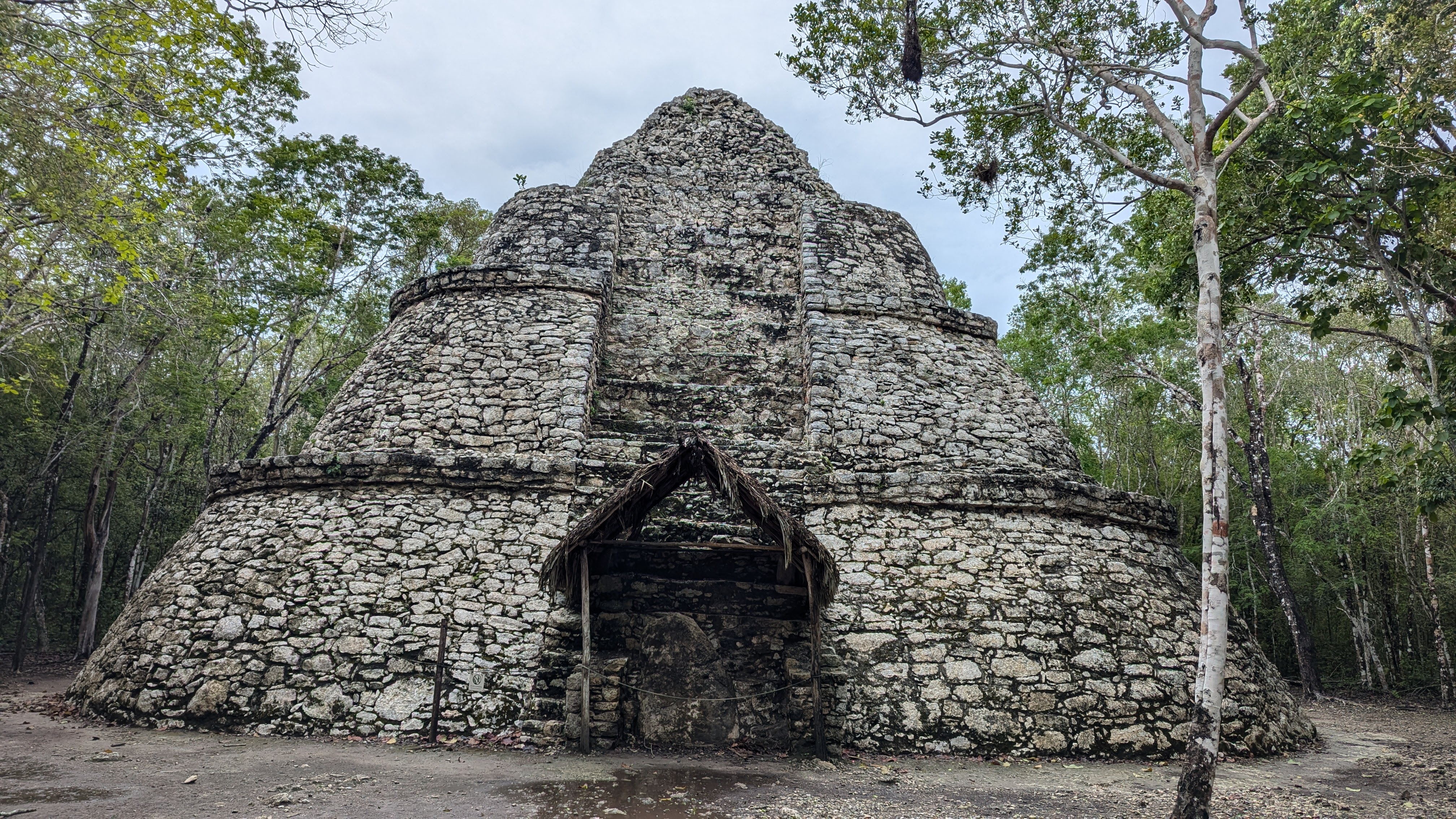Attend voir… On râle alors qu’il y a presque un bout de ciel bleu en arrière de la grande pyramide de Coba ?