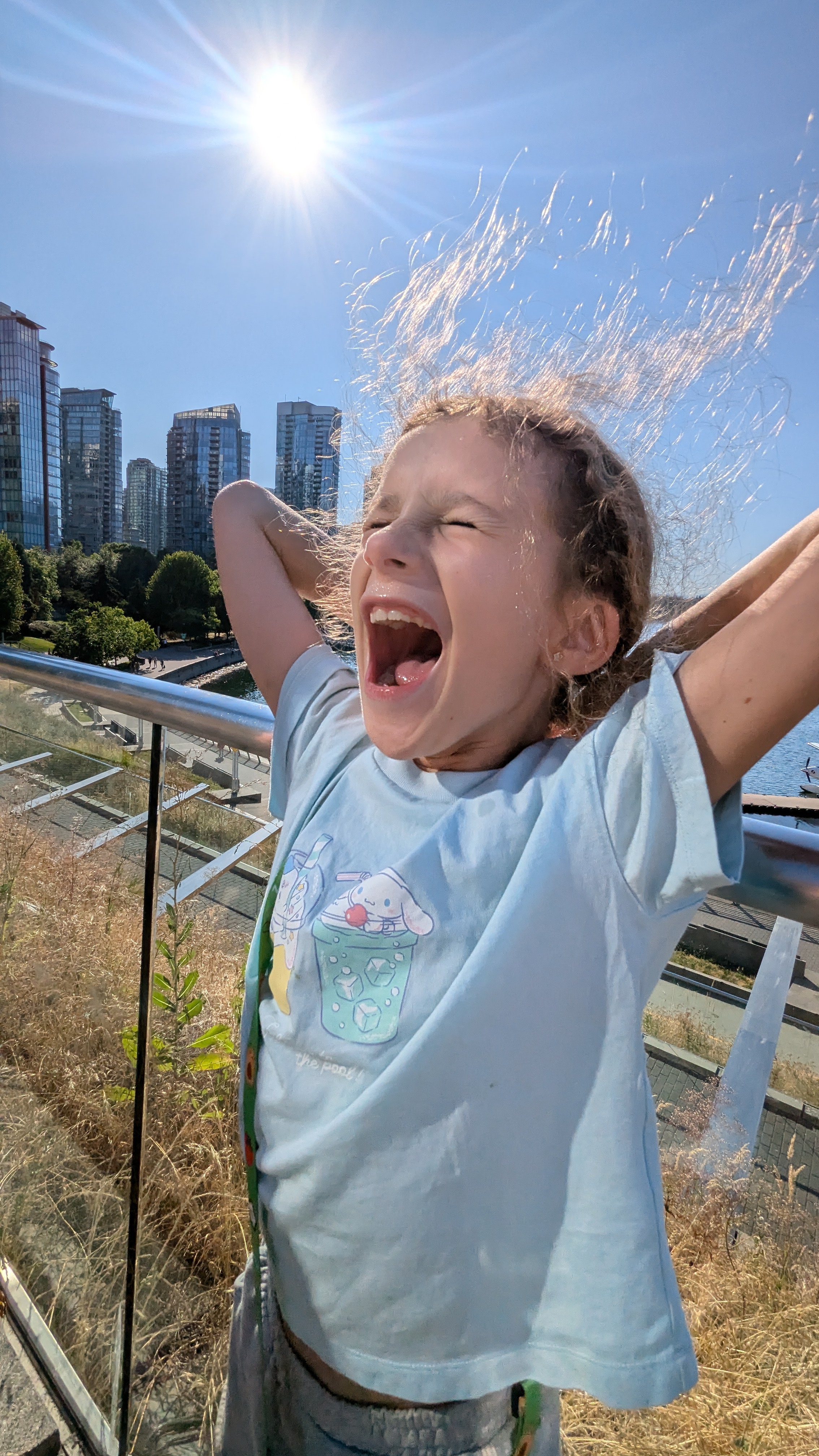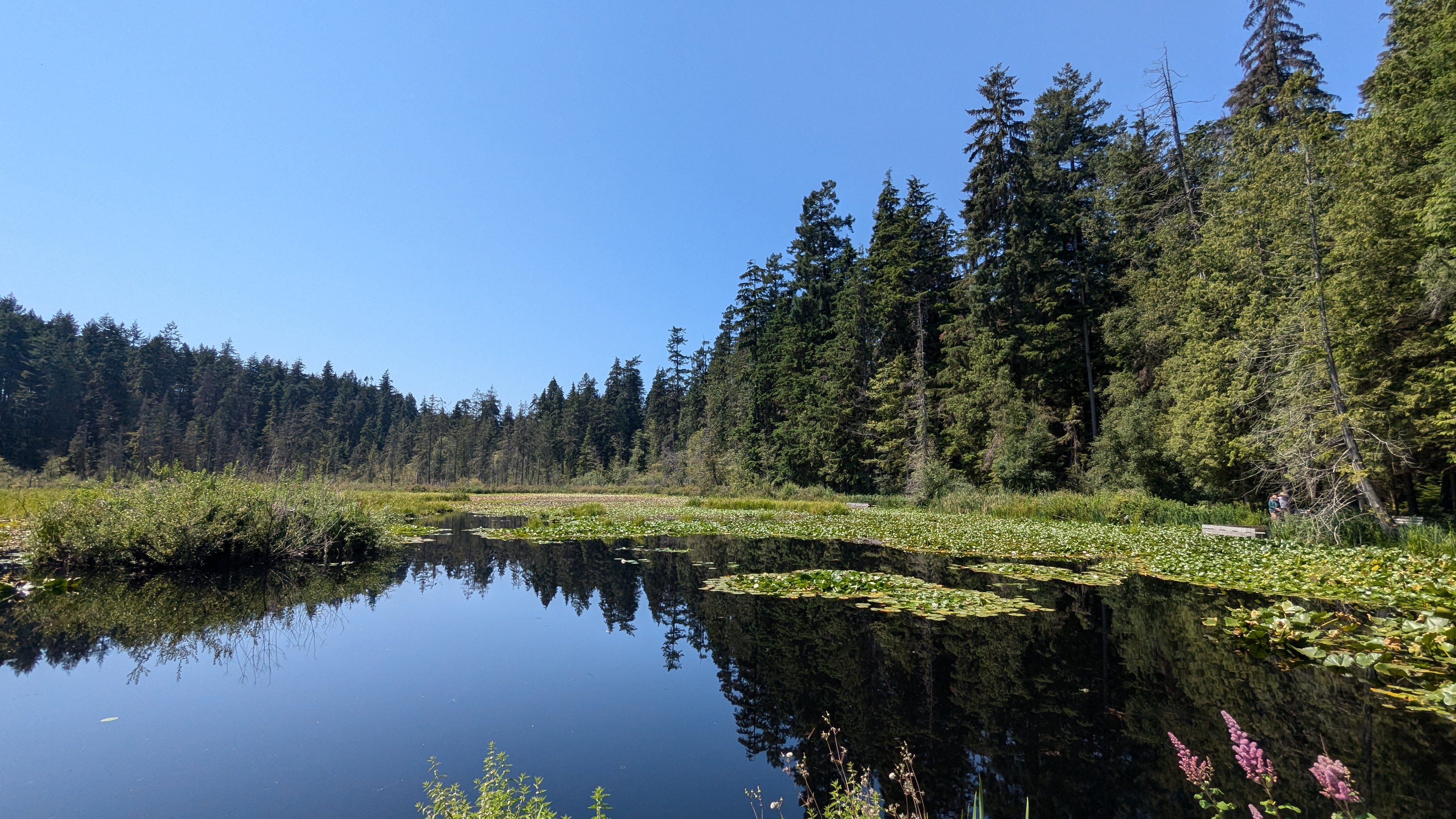 …. mais pas besoin car le climat est de toute façon clément cet été sur la Colombie Britannique. Et ça nous fait un bien fou de ne plus guetter l’état du ciel en tirant les rideaux le matin, avec au coeur un zeste d’inquiétude quant à la probabilité de se prendre un nouveau déluge sur la tête ! C’est sûr que la météo, ce n’est pas ce qu’on regrettera le plus du Mexique.