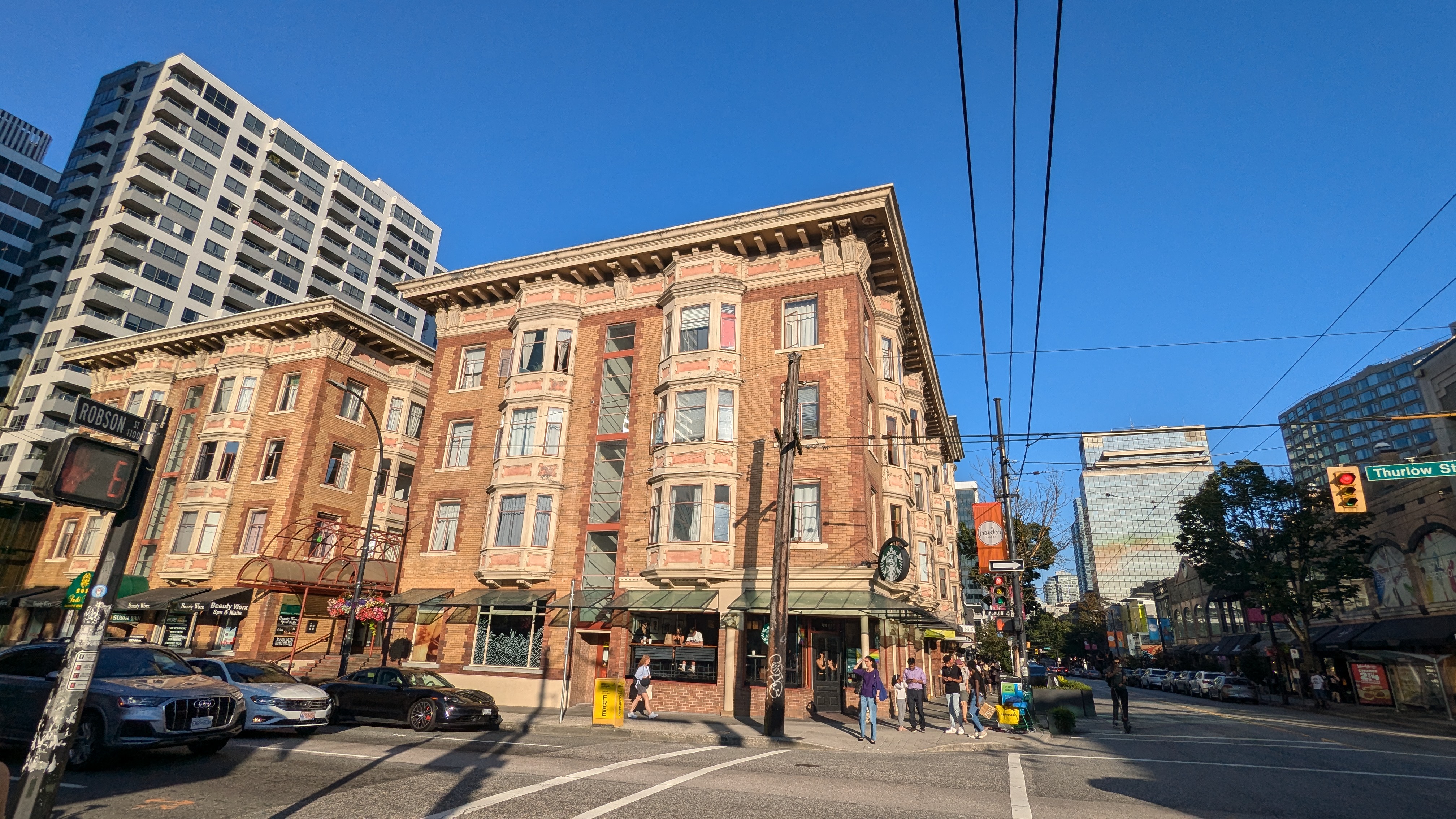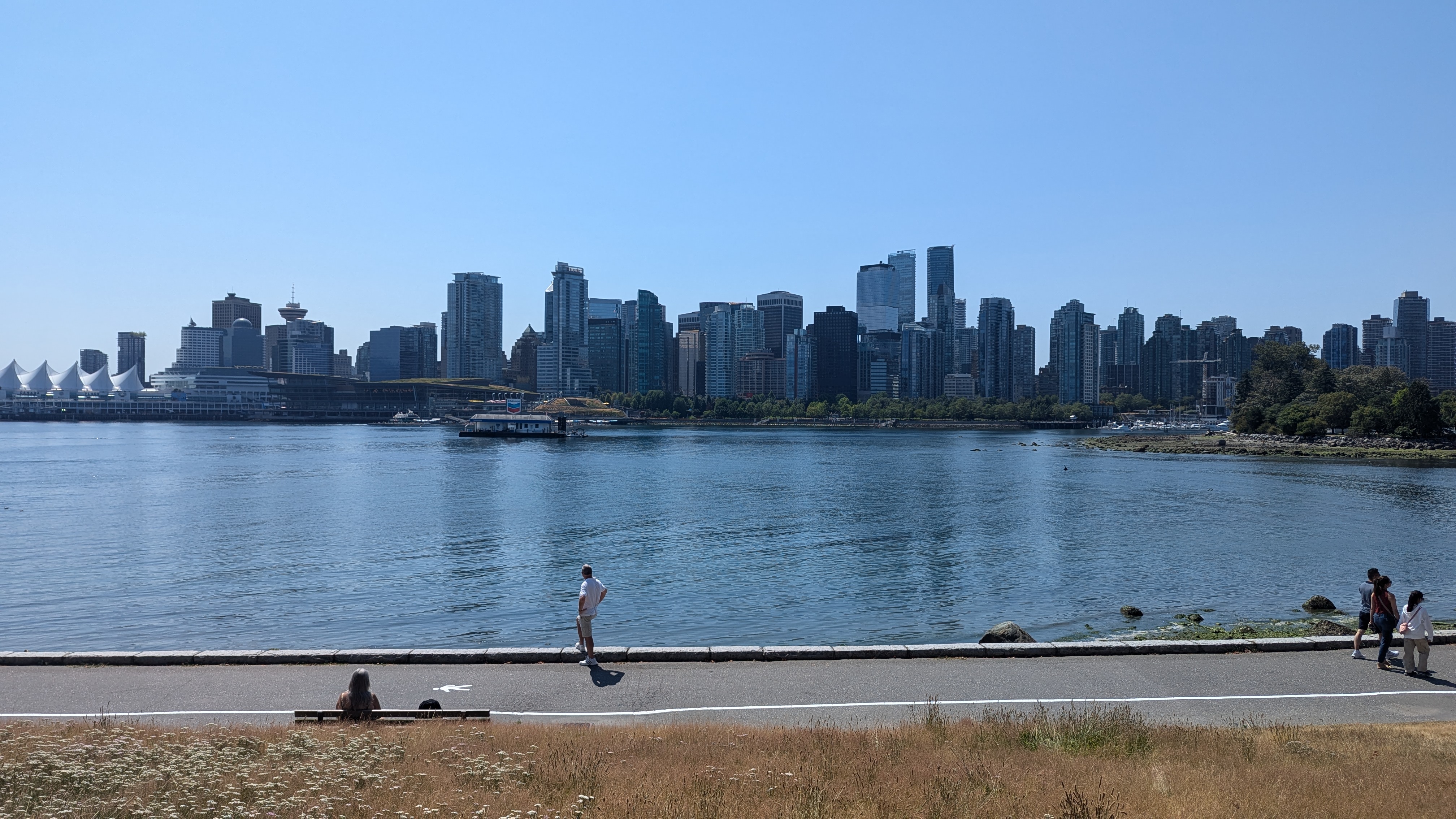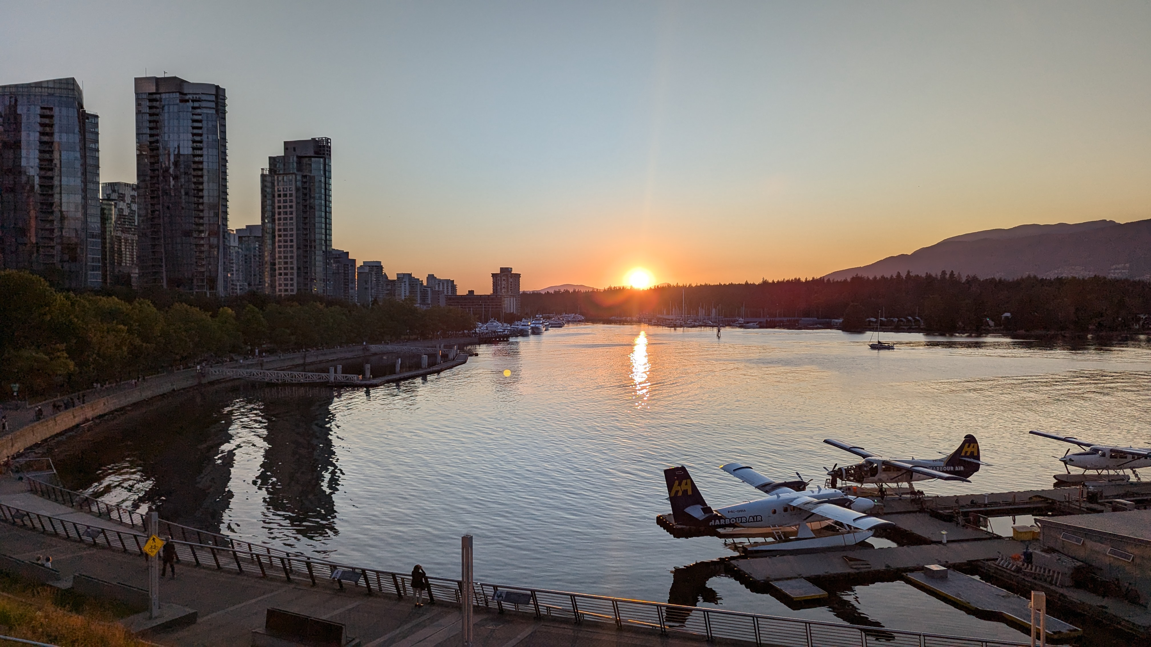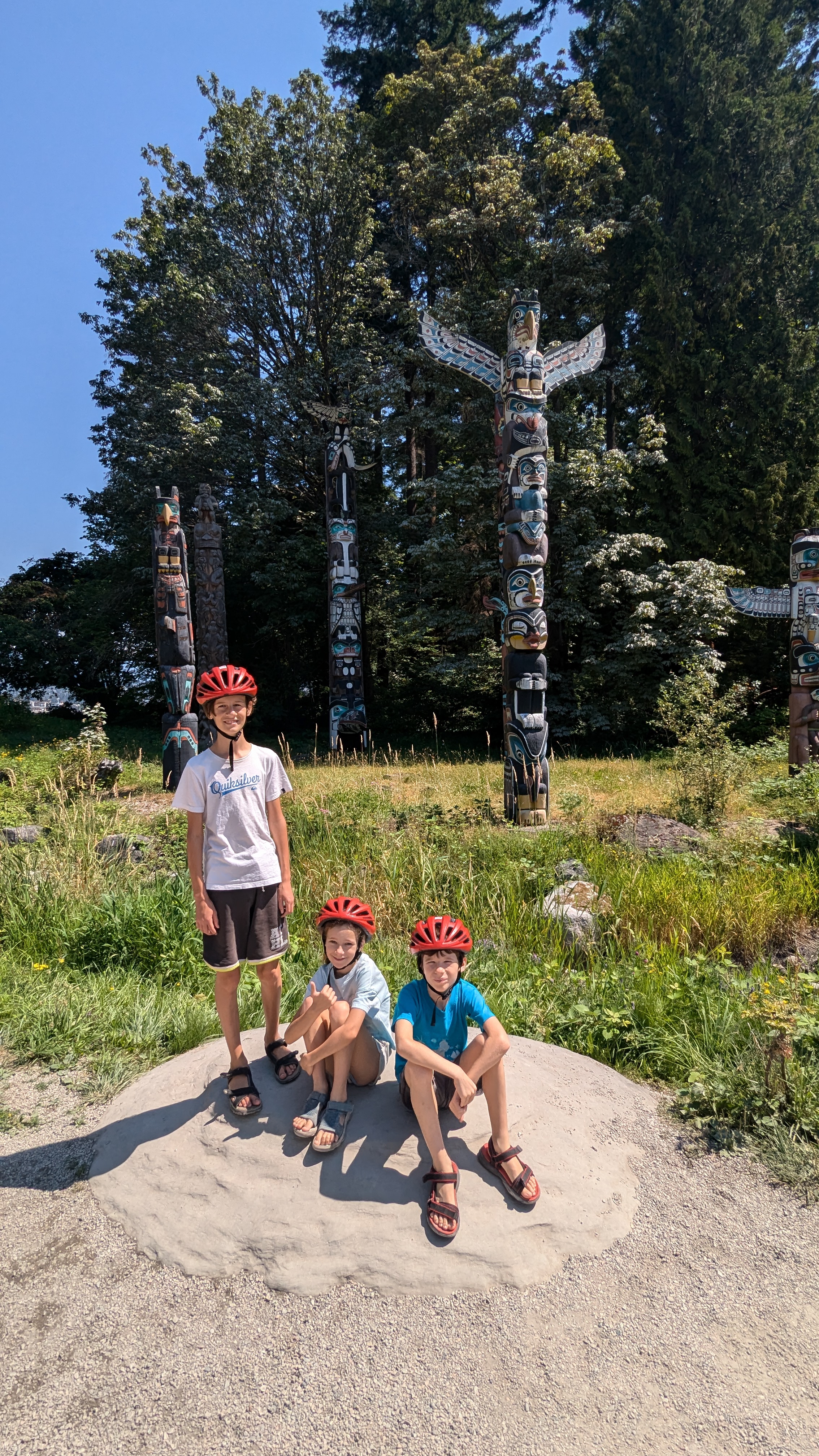 Nous avons donc commencé notre séjour canadien par trois jours dans la belle cité de Vancouver. Une ville détendue, plutôt piétonne et surtout cycliste, résolument verte, tournée vers la mer et multiculturelle. Sur ce dernier point, nous avons été impressionnés par le nombre d’habitants d’origine asiatique. C’est bien simple, les trois quarts des restaurants en ville sont des restaurants chinois, japonais ou coréens. Mais on trouve aussi des indiens, des iraniens, des nigérians. On est bien loin du cliché du bûcheron canadien avec sa chemise à carreaux et son sirop d’érable. Et malgré tout, il règne quand même en ville une ambiance « anglaise ». On a d’ailleurs trouvé beaucoup de points communs entre Vancouver et Perth, visitée il y a déjà plusieurs mois : les origines anglaises, la vie en bord de mer et à la plage toute proche, l’ambiance très détendue, l’architecture, le gazon parfaitement entretenu, etc.