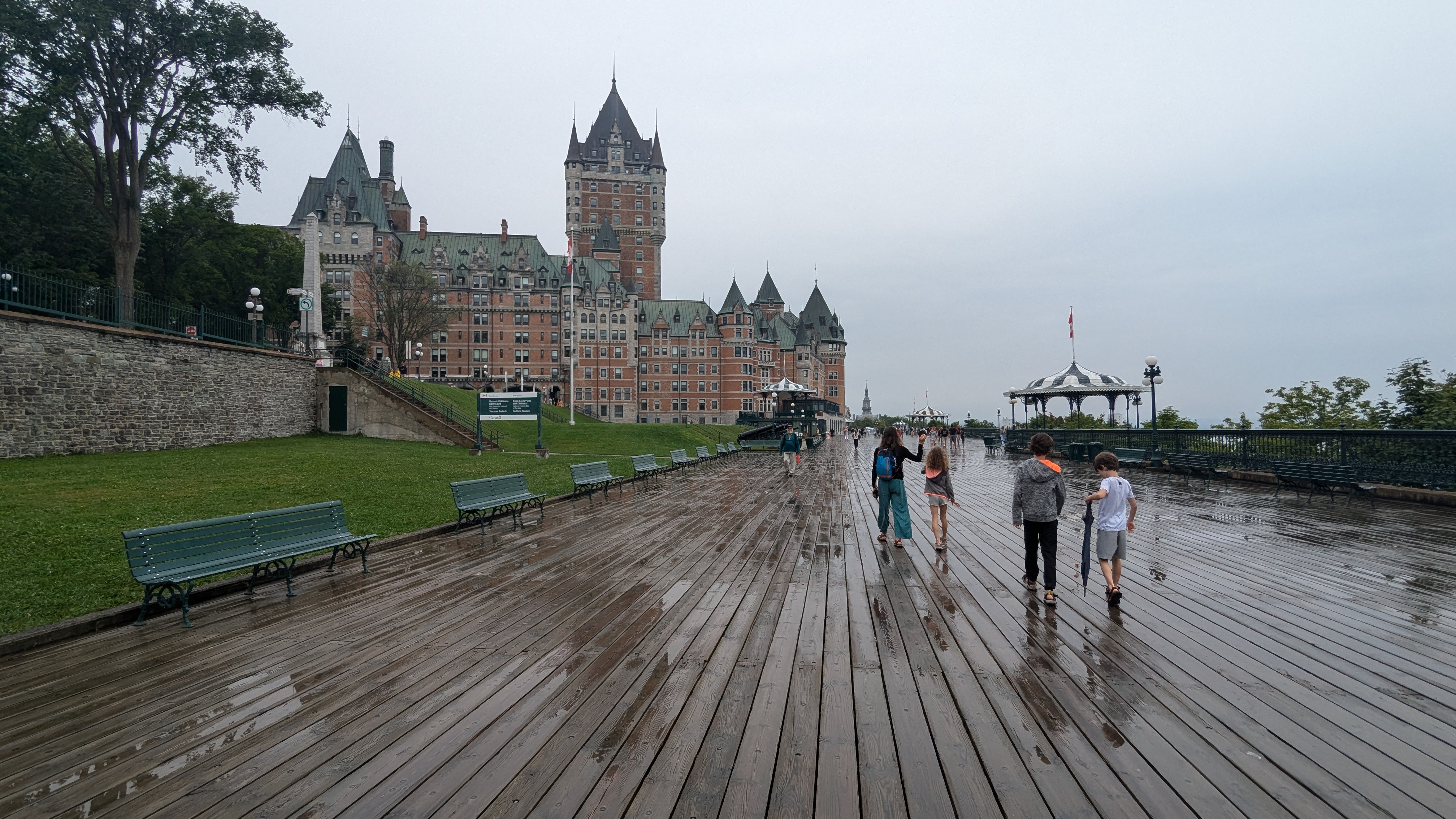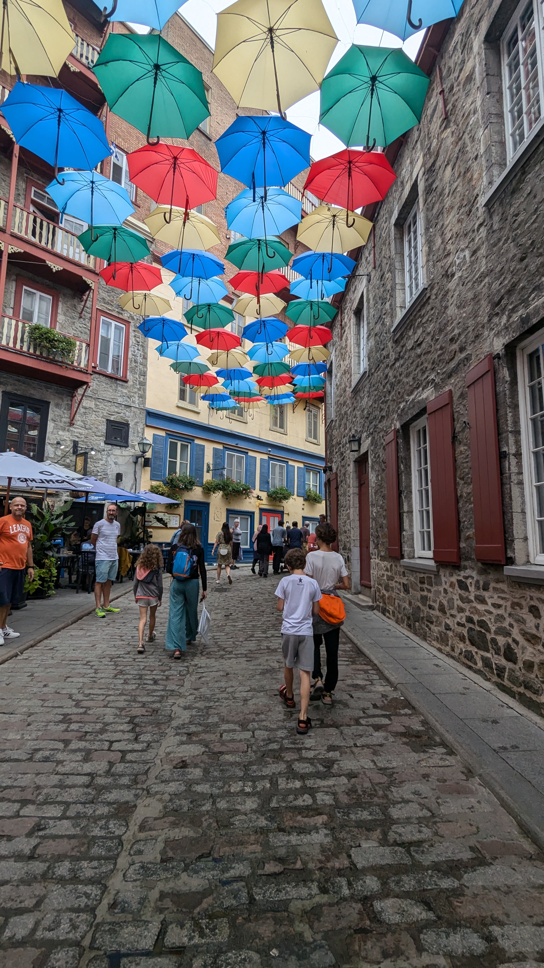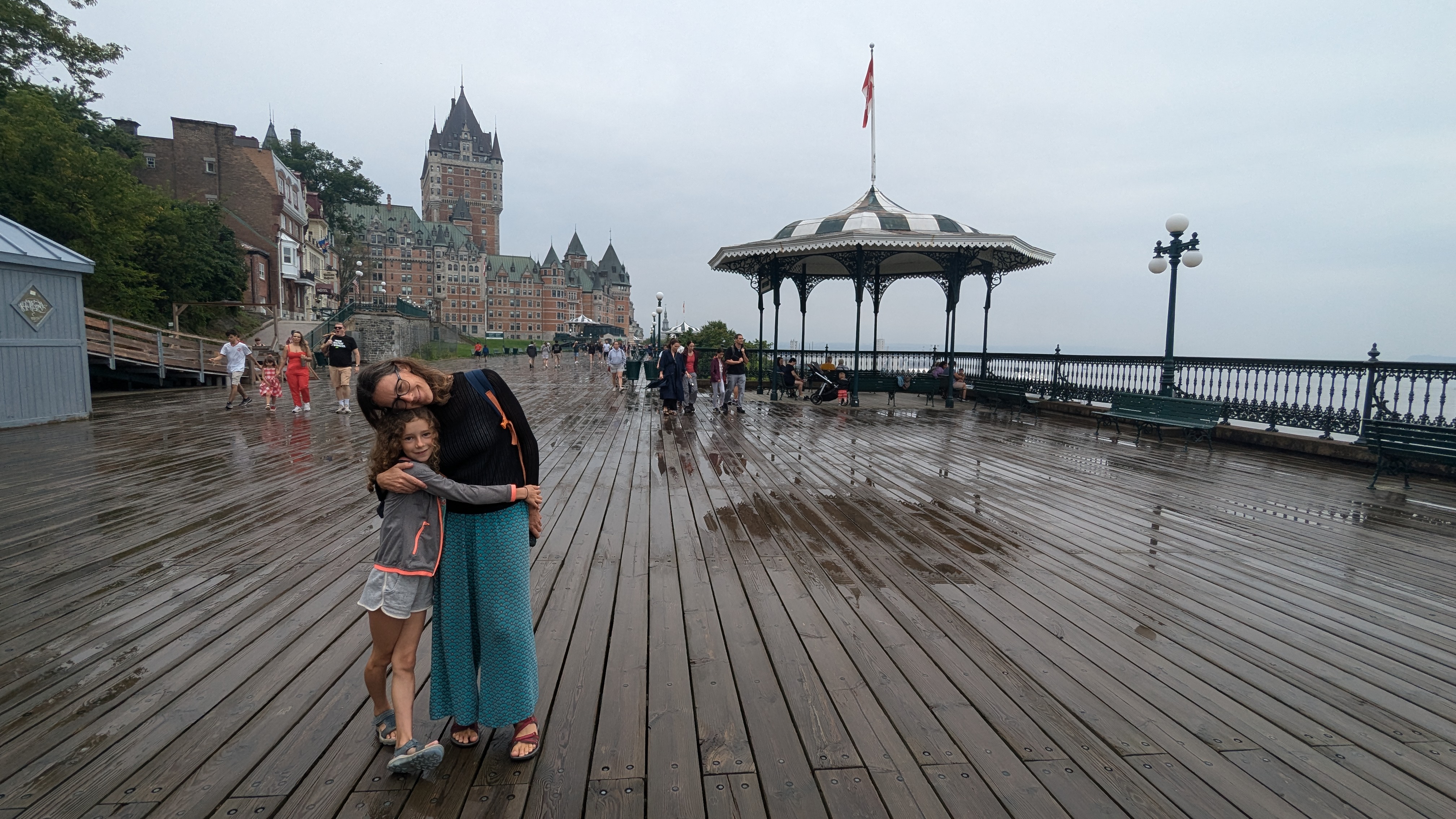 Le soir, il restait quand même assez de force aux parents pour sortir entre les gouttes et profiter un peu de la vie nocturne de la Belle Province.