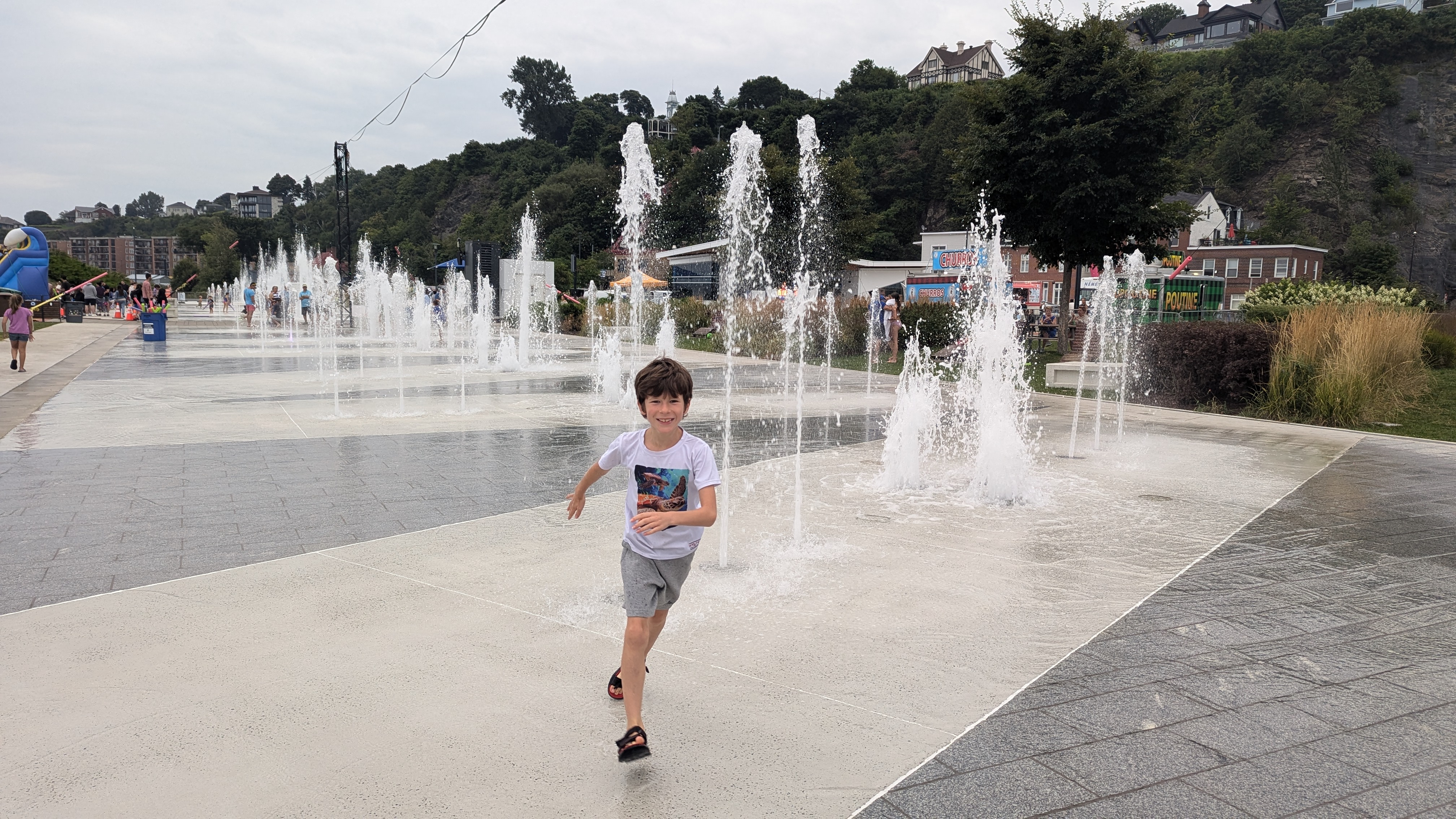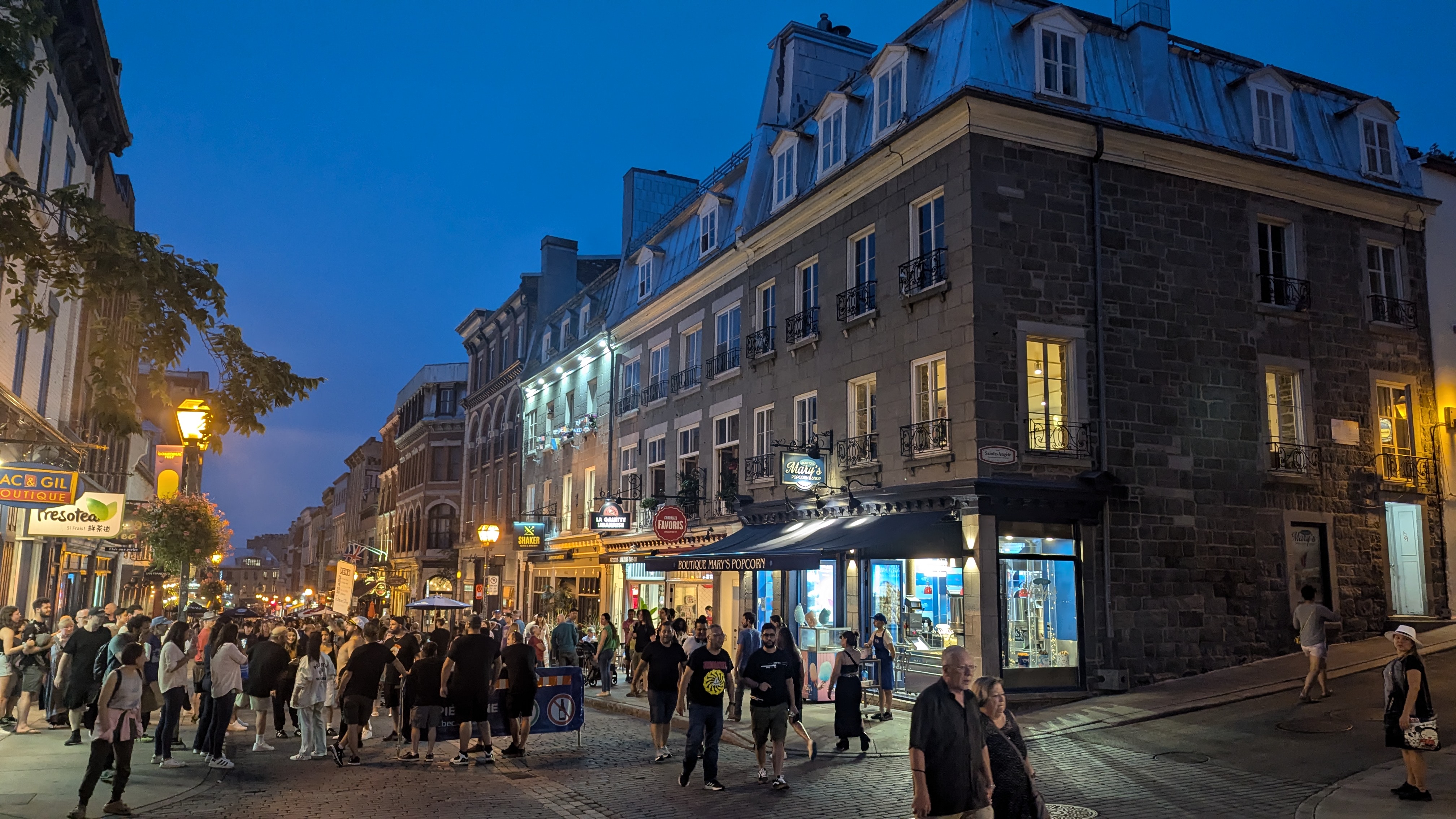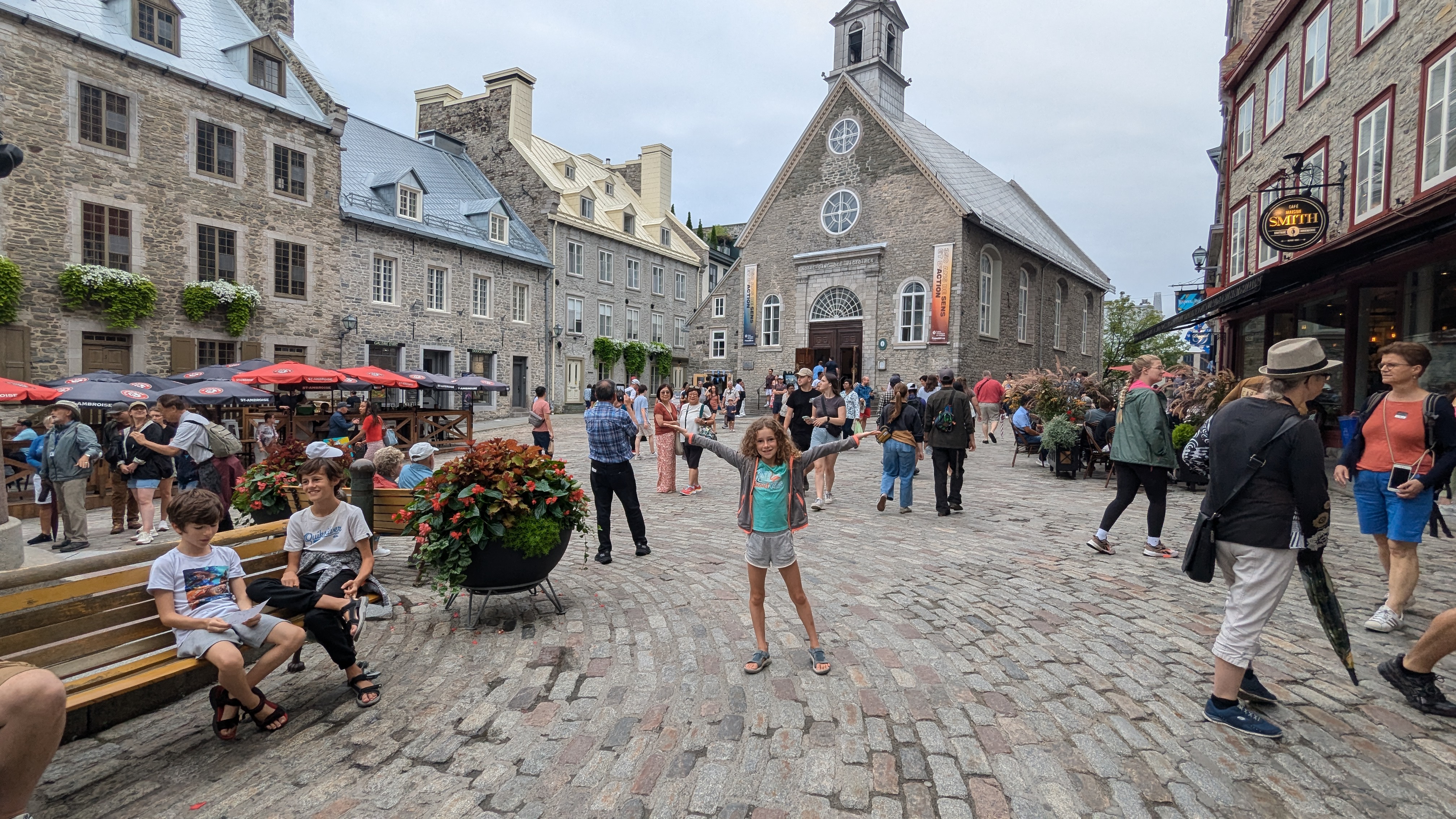 Le soir, il restait quand même assez de force aux parents pour sortir entre les gouttes et profiter un peu de la vie nocturne de la Belle Province.