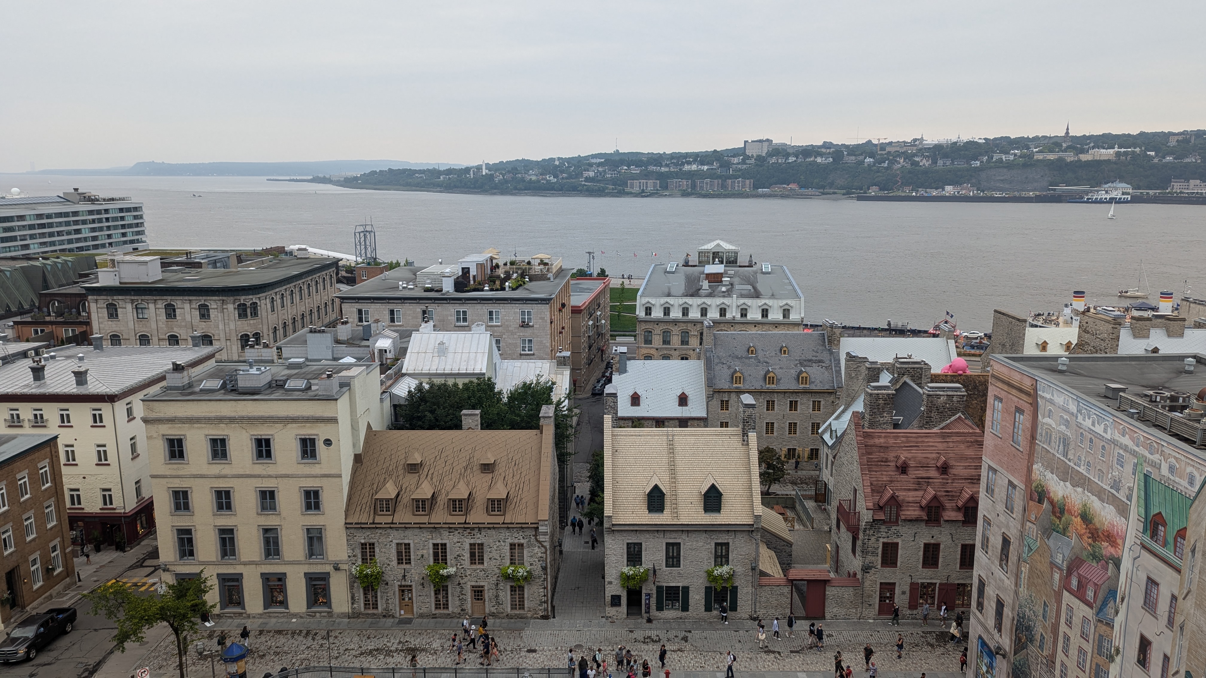 La vue de la vieille ville depuis l’autre côté du fleuve qu’on peut franchir en « traversier » (c’est tellement plus mignon que ferry !)