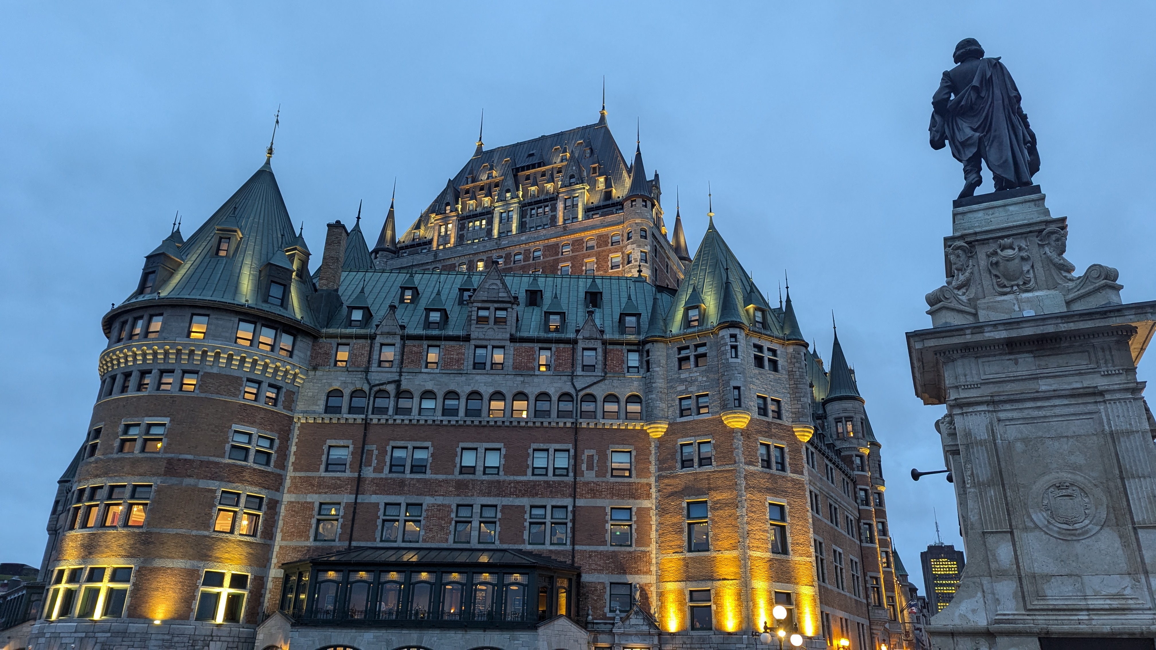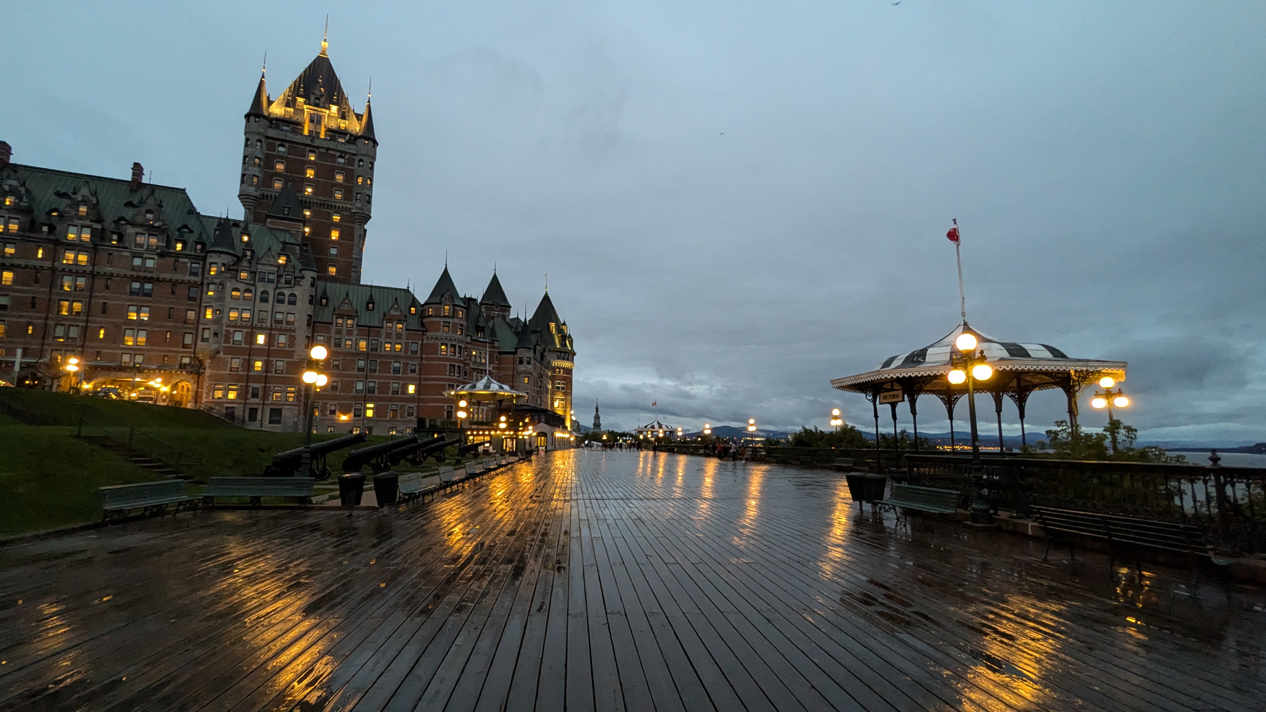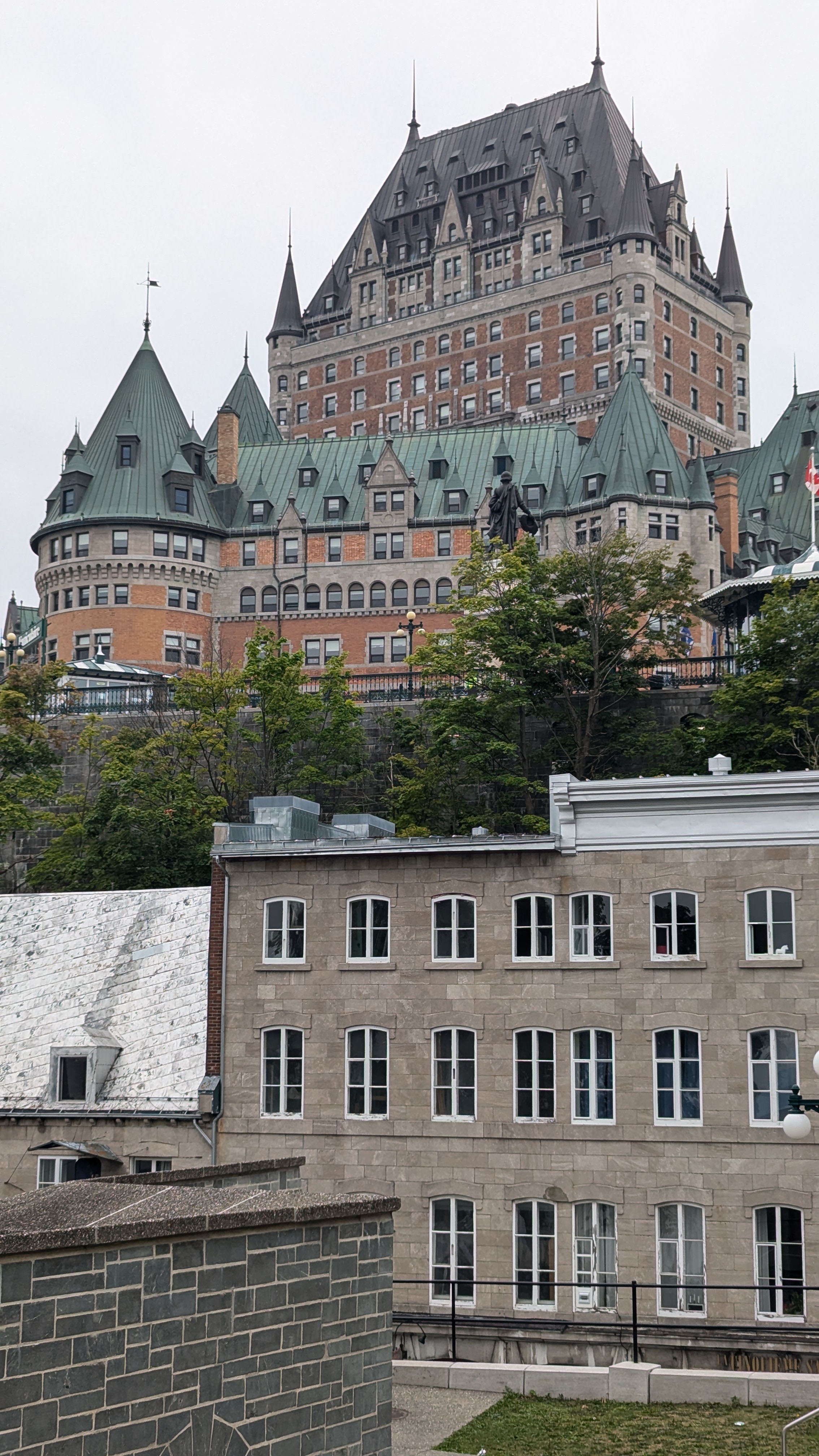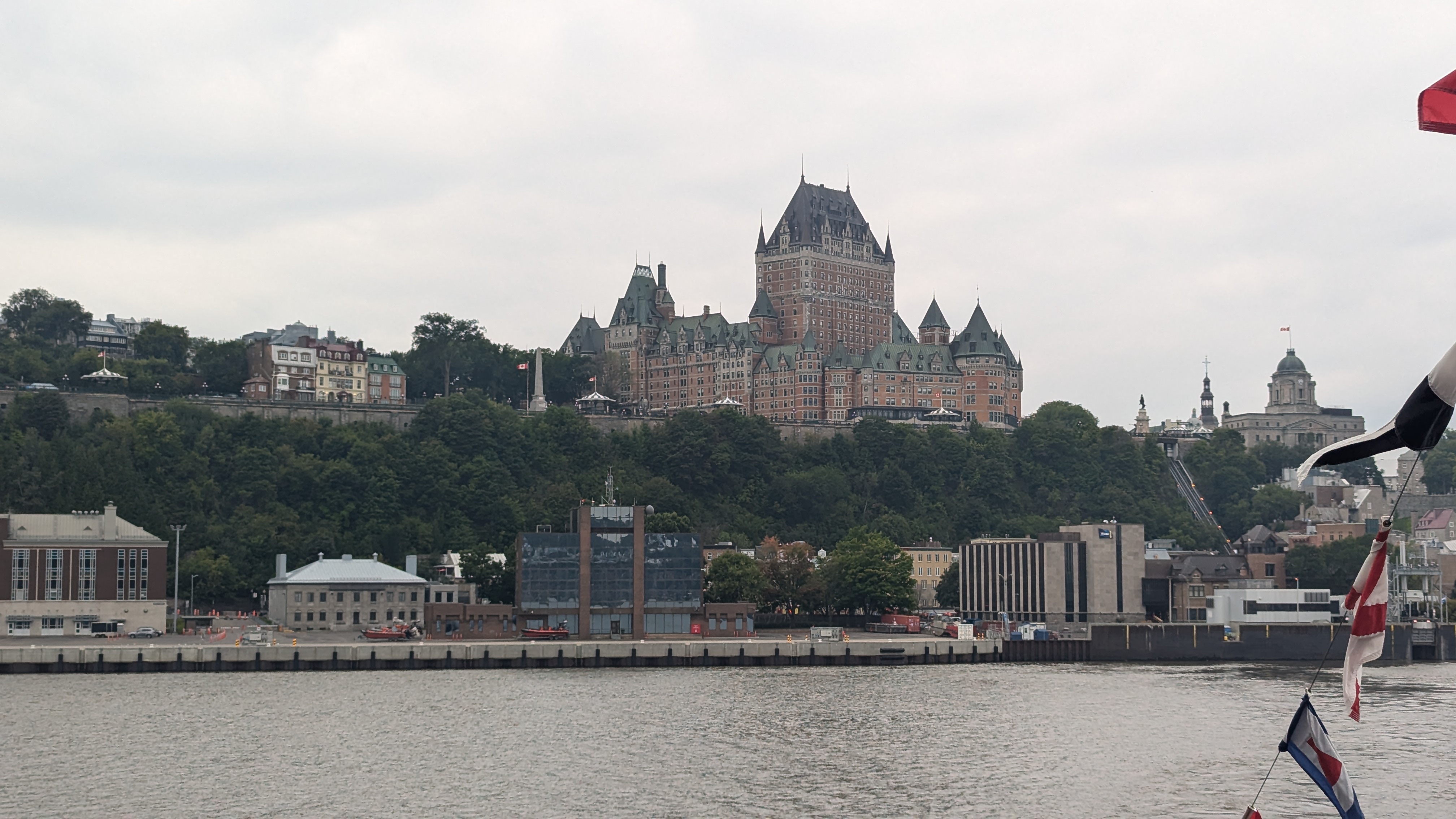Une splendide terrasse en bois longe la falaise et offre aux promeneurs des vues magnifiques sur le fleuve. Le tout est dominé par l’immense silhouette du château Frontenac, l’édifice le plus imposant et le plus instagrammé de toute la ville et qui en fait a toujours été… un hôtel (et pas du tout un vrai château).