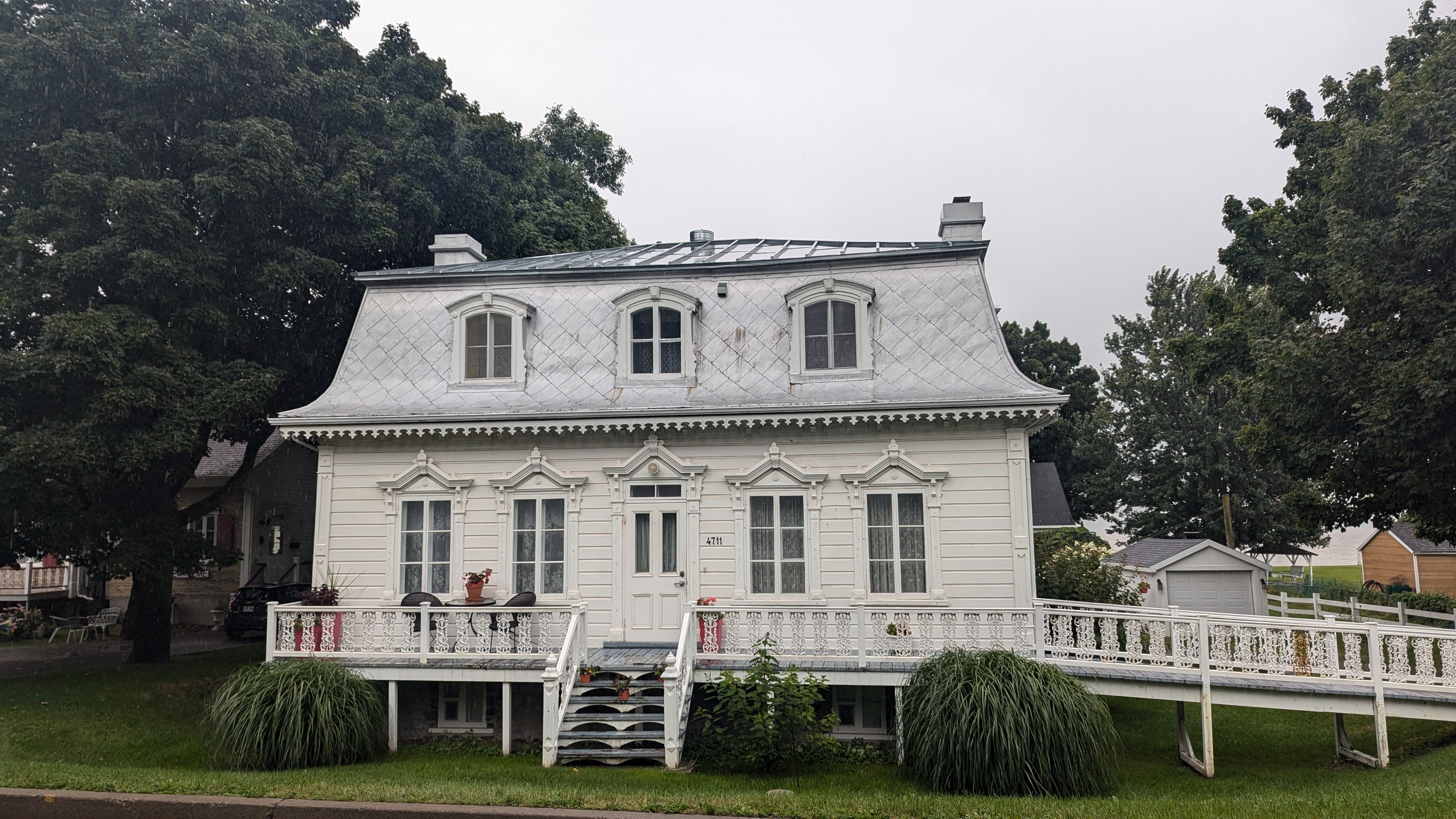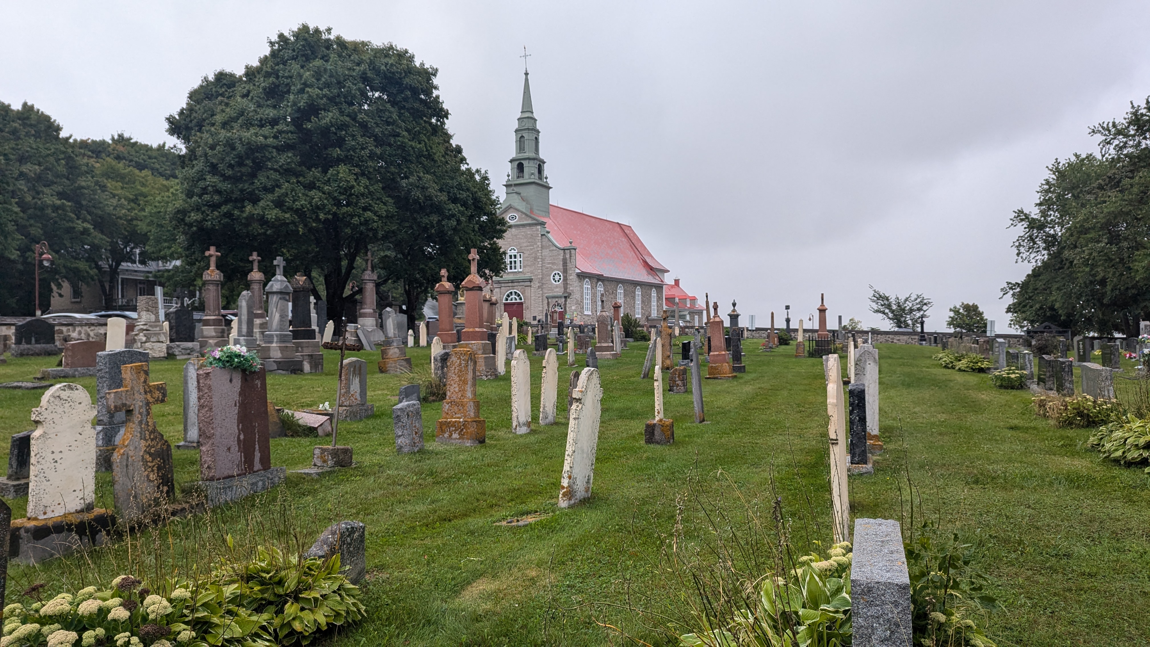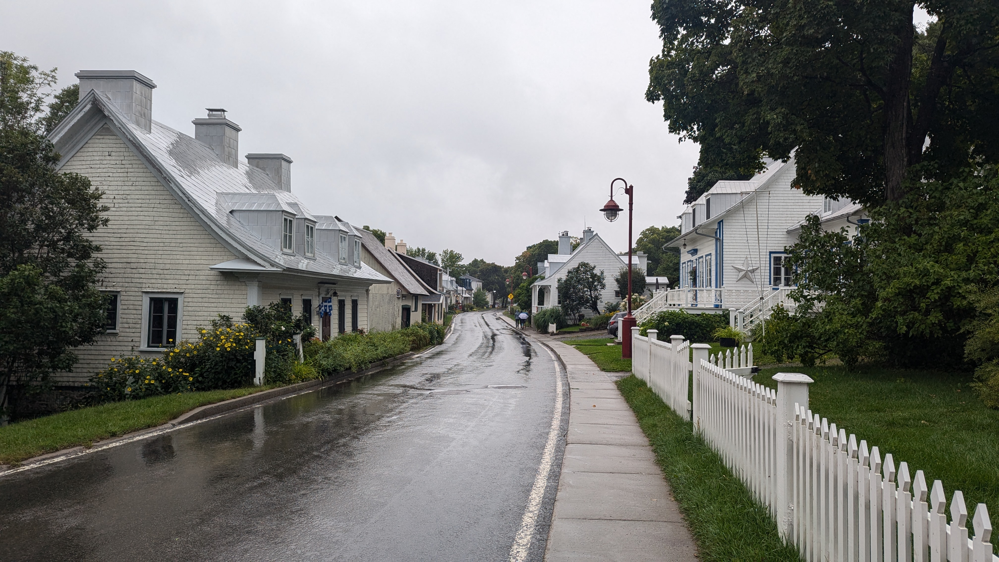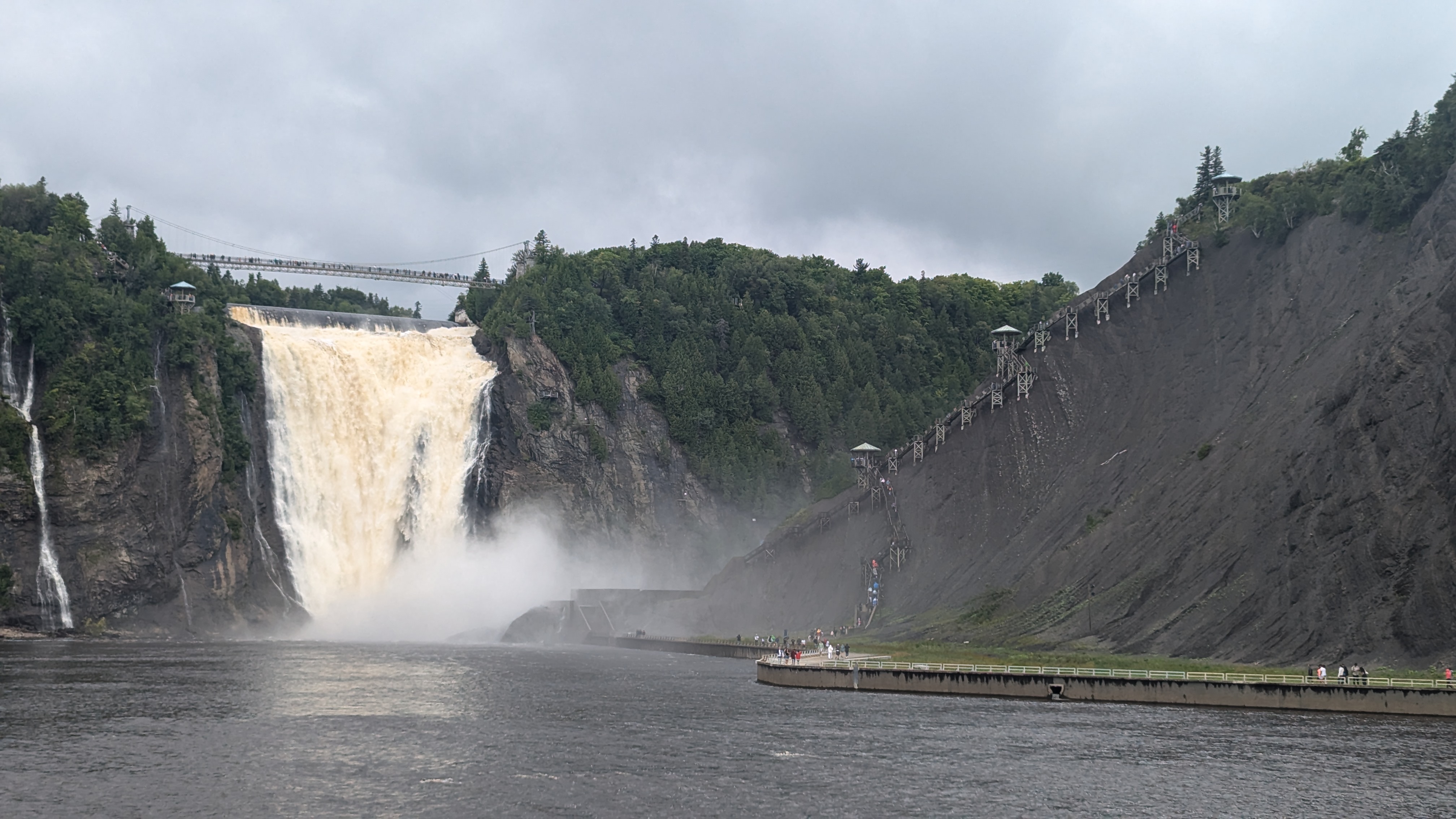 En dehors de Quebec ville, il y aussi quantités de choses à voir. Et il n’y a pas besoin d’aller bien loin pour se dépayser: les chutes Montmorency, par exemple, grondent à 20 minutes à peine du centre-ville. 83m de haut, c’est plus que les chutes du Niagara, même si elles sont évidemment bien moins larges. L’avantage avec toute cette eau pulvérisée dans l’atmosphère, c’est qu’on ne savait plus si on était mouillé par la pluie ou la cascade 😀
