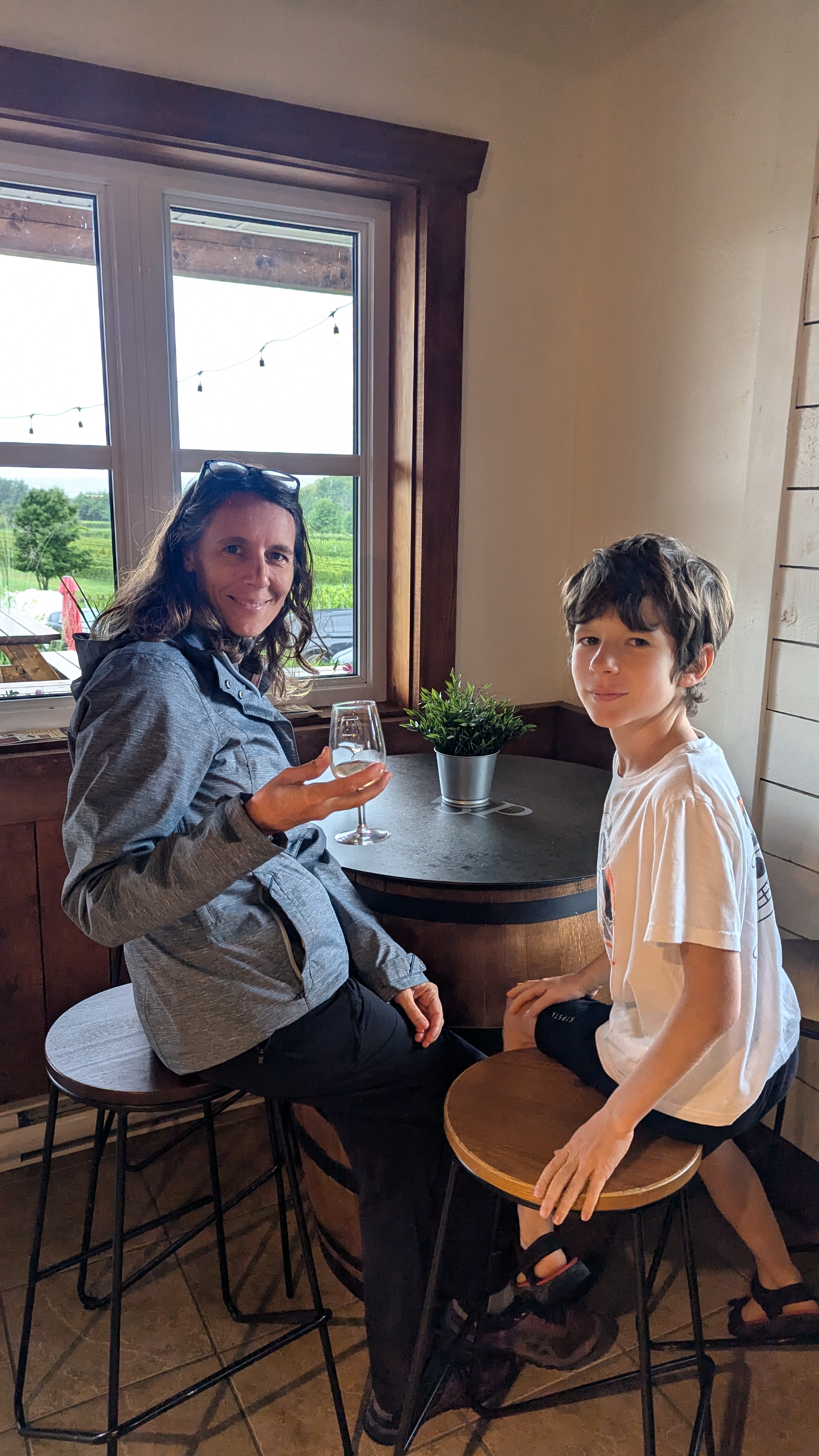 Et donc, on ne pouvait pas ne pas s’arrêter pour faire une dégustation dans un vignoble (ici celui de Sainte Pétronille) toujours accompagnés de Florent qui est clairement le plus curieux à propos du vin de nos trois enfants. Visiblement, le climat favorise plutôt les blancs (un seul rouge pour 4 blancs) mais leur assemblage pinot gris / gewurztraminer / riesling était carrément réussi.