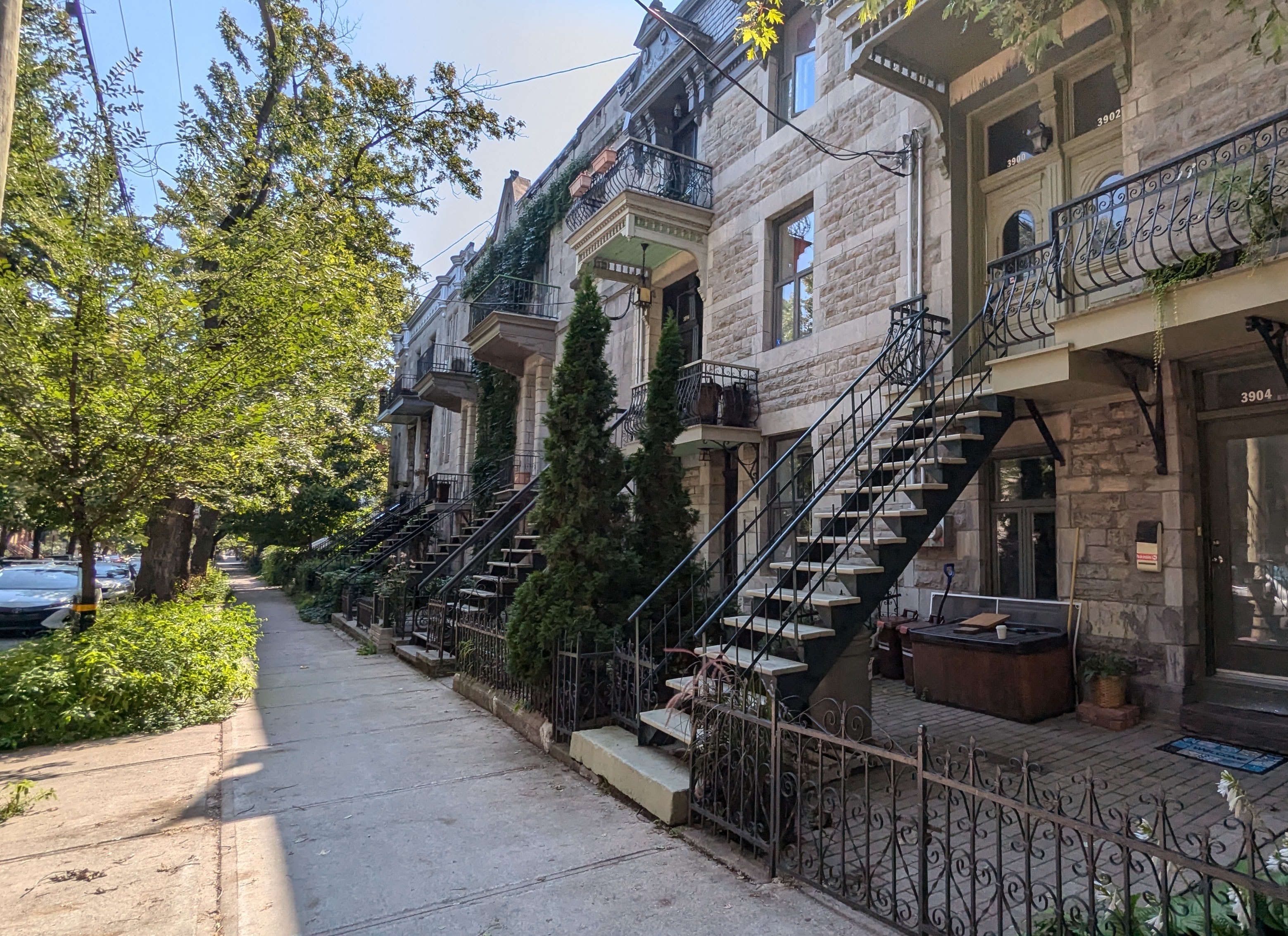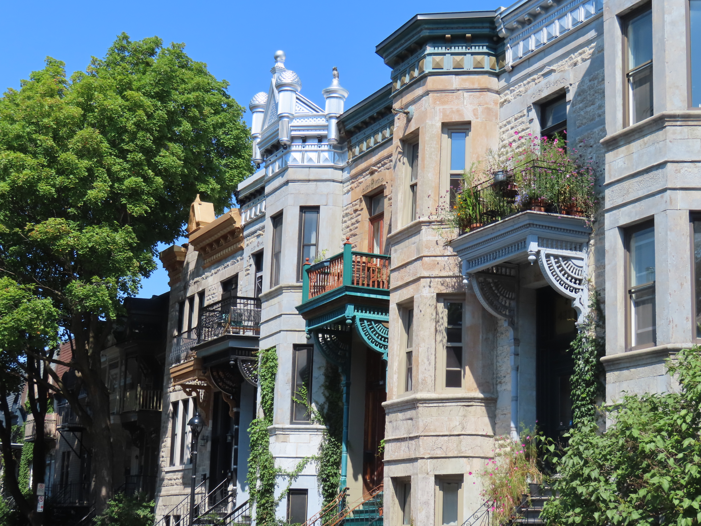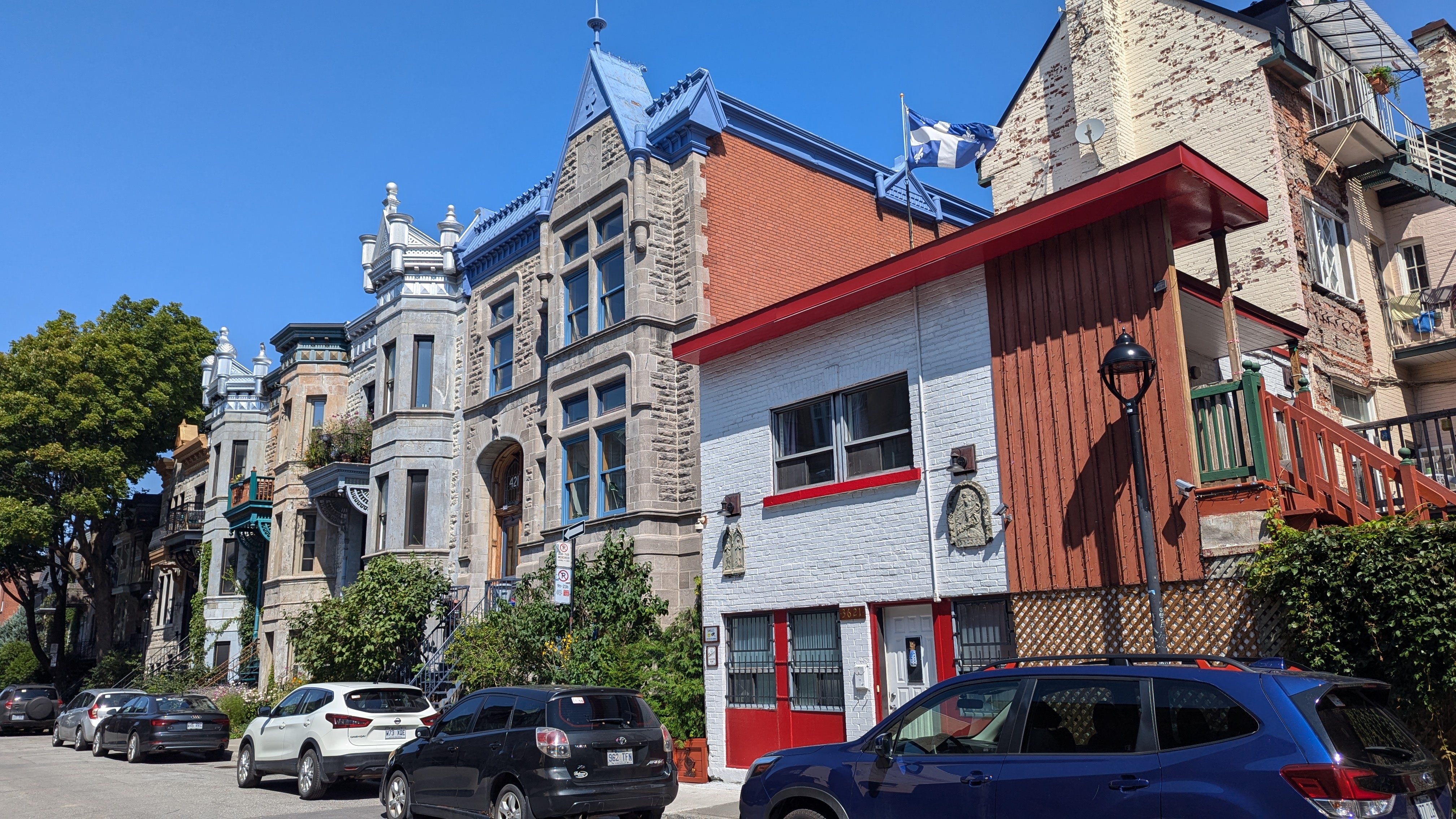Le lendemain, c’est au pied de cette même colline que nous nous promenions, dans le très branché quartier du Plateau Mont-Royal. Même si de nombreux habitants nous ont confirmé que les loyers étaient montés en flèche depuis le COVID, ça reste un quartier populaire, celui des étudiants, des jeunes branchés, des hipsters, un quartier super animé, avec plein de petites boutiques partout, des stands de rues, des musiciens, des parcs magnifiques, bref un quartier très vivant et dans lequel il fait bon se promener. Suivant notre philosophie de visite montréalaise, nous l’avons parcouru de façon très cool, nous arrêtant à peu près tous les 100m pour admirer entre autres les charmantes façades victoriennes 🙂