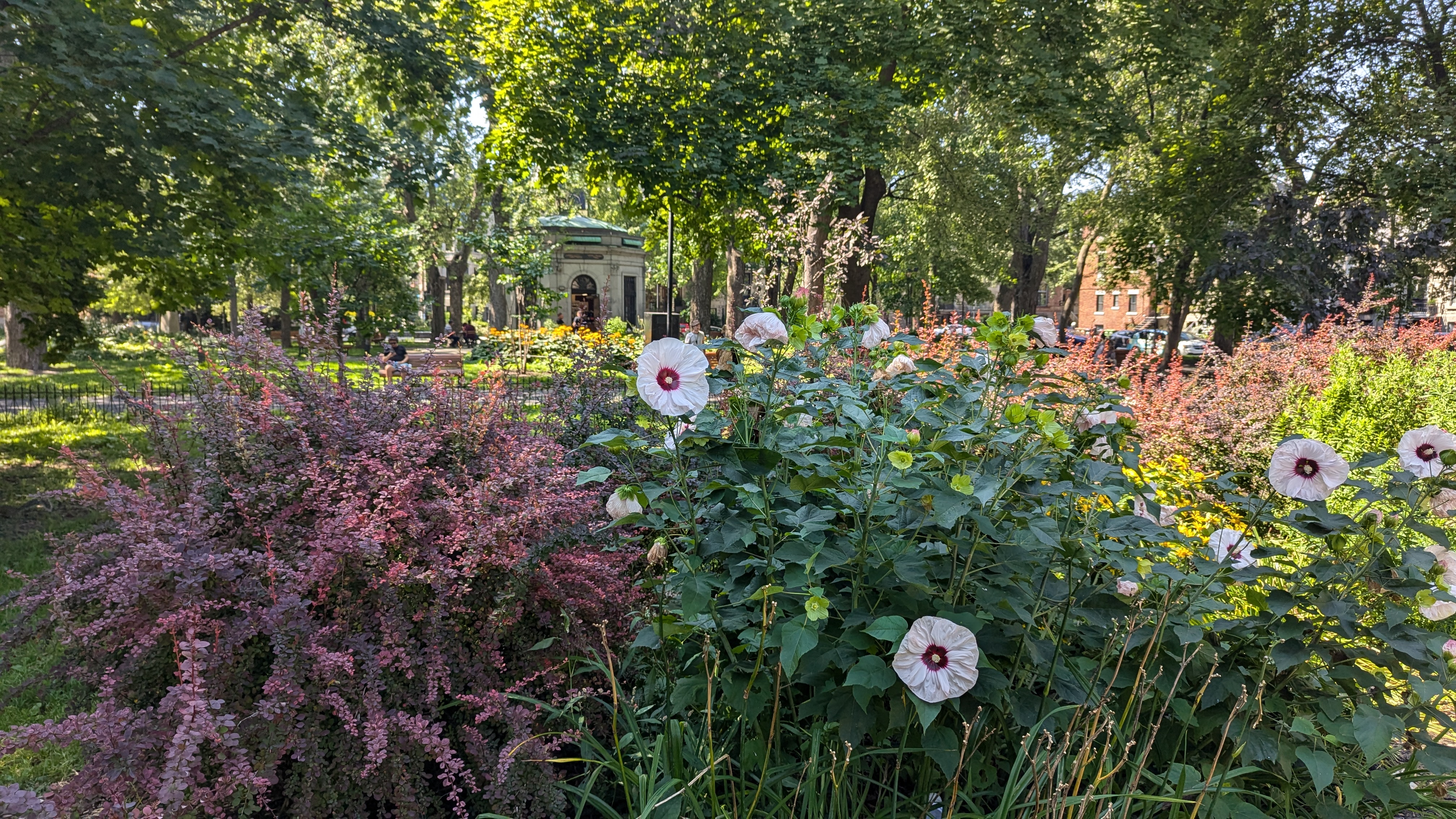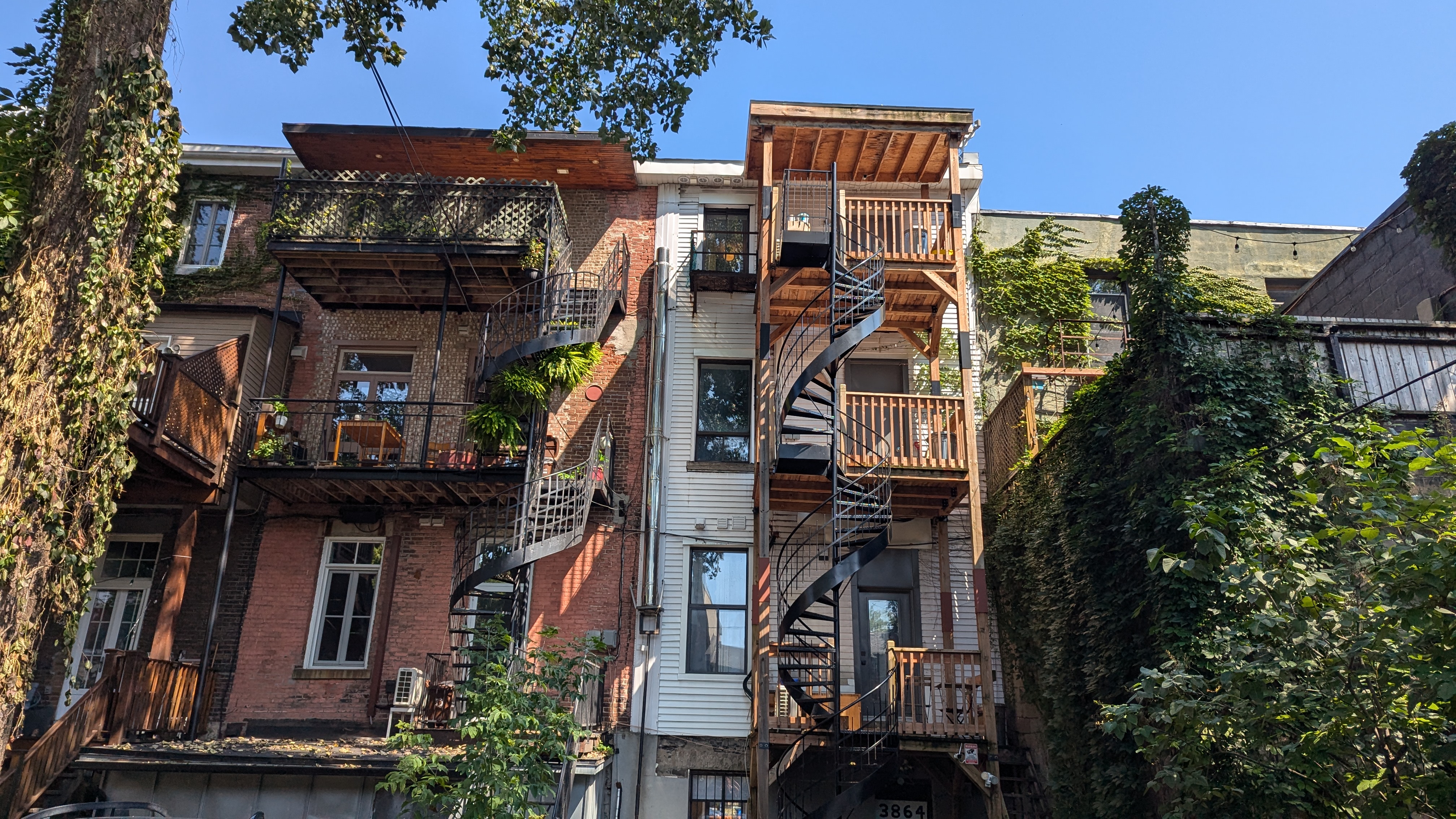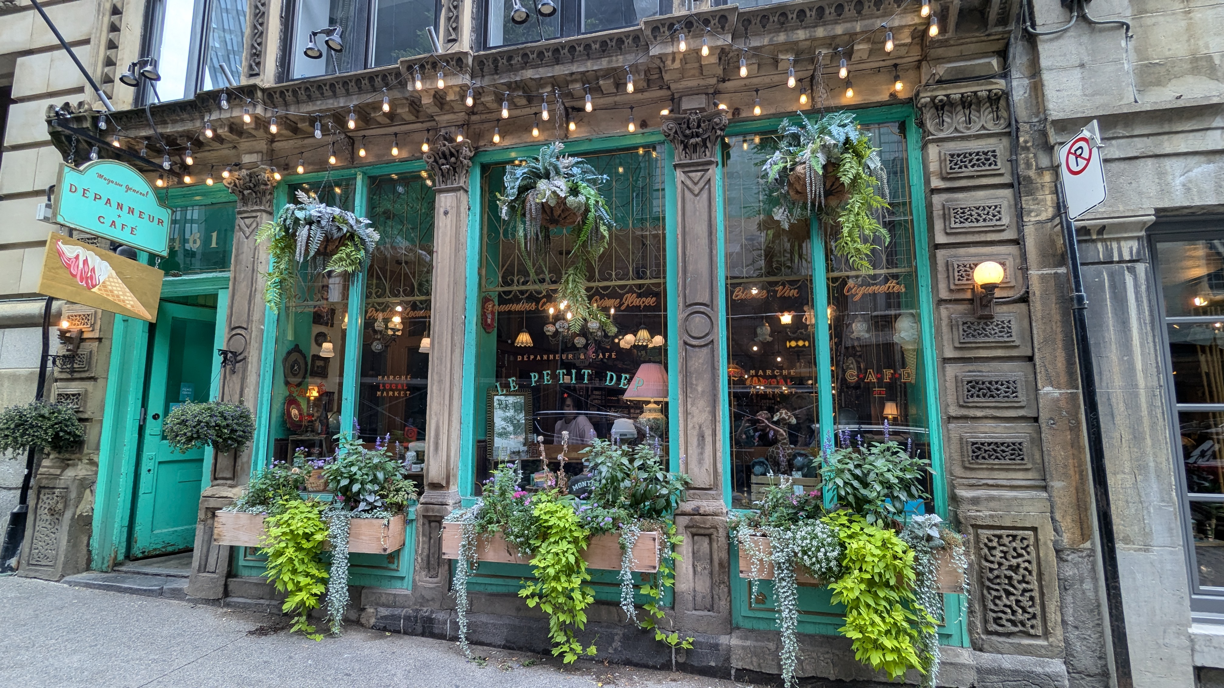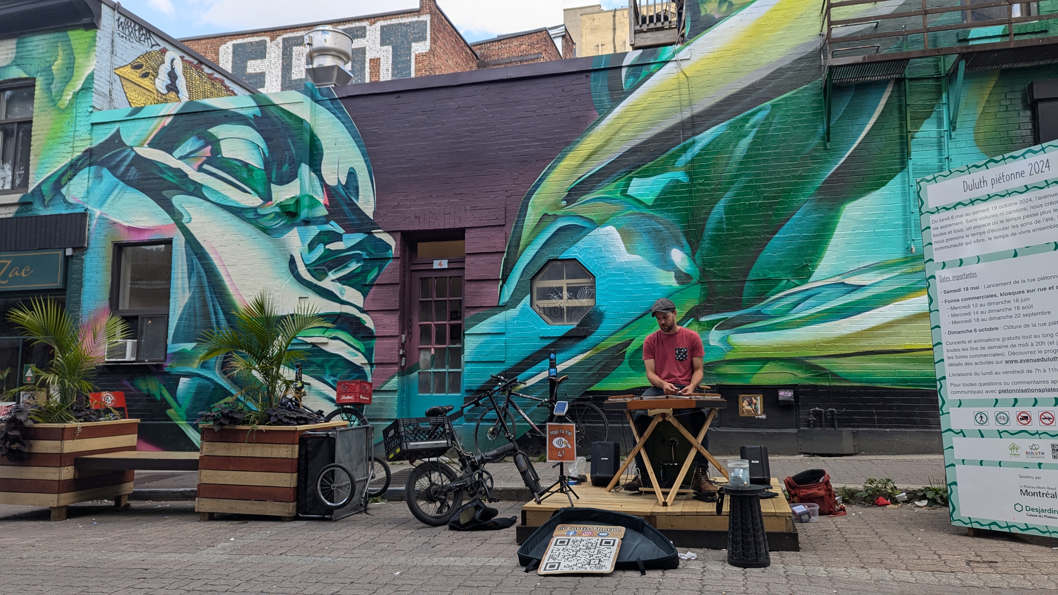Le lendemain, c’est au pied de cette même colline que nous nous promenions, dans le très branché quartier du Plateau Mont-Royal. Même si de nombreux habitants nous ont confirmé que les loyers étaient montés en flèche depuis le COVID, ça reste un quartier populaire, celui des étudiants, des jeunes branchés, des hipsters, un quartier super animé, avec plein de petites boutiques partout, des stands de rues, des musiciens, des parcs magnifiques, bref un quartier très vivant et dans lequel il fait bon se promener. Suivant notre philosophie de visite montréalaise, nous l’avons parcouru de façon très cool, nous arrêtant à peu près tous les 100m pour admirer entre autres les charmantes façades victoriennes 🙂