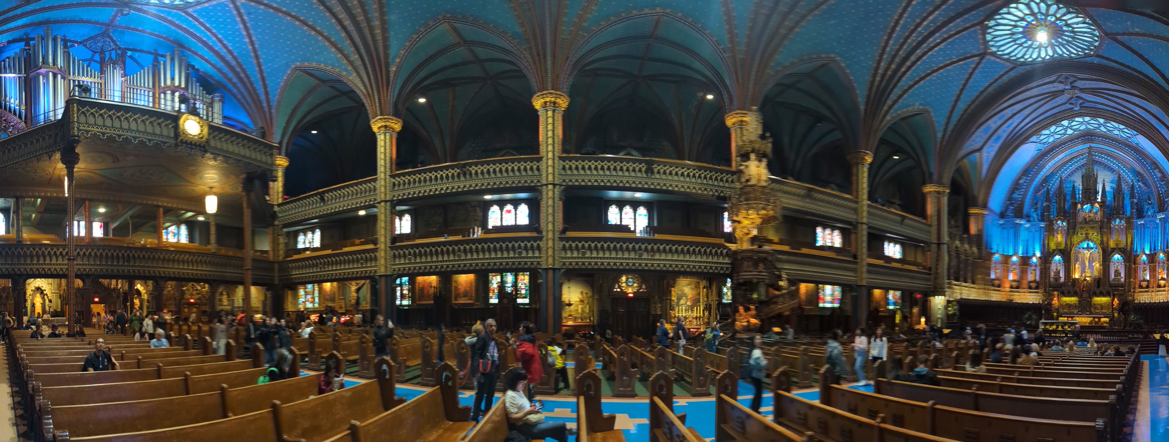 En particulier, on y trouve la basilique Notre-Dame de Montréal, qui ne paye pas vraiment de mine de l’extérieur mais qui est un véritable chef d’oeuvre une fois qu’on en a passé les portes. L’intérieur polychrome bleu et or est directement inspiré de la Sainte Chapelle de Paris.