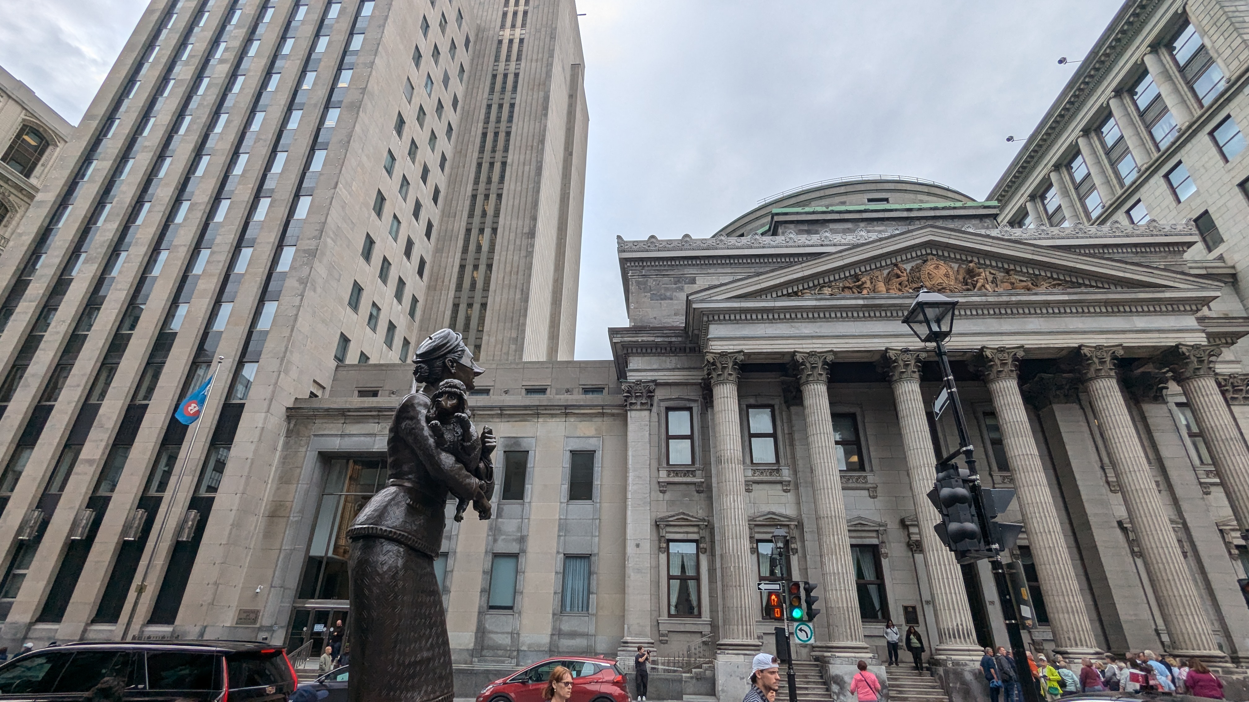 Mais bon, l’heure n’est pas encore à la nostalgie, ni même au bilan! Montréal reste une très belle destination à part entière qui méritait largement les trois jours que nous lui avons consacrés. La ville, installée sur une immense île au milieu du fleuve St Laurent, est divisée en plusieurs quartiers assez distincts. nous avons laissé de côté de côté le Downtown (le quartier des affaires et des gratte-ciels) et la ville souterraine (32 kilomètres de galeries pour ce centre-ville bis protégé des intempéries de l’hiver) et avons commencé notre visite de la cité québécoise par une journée d’exploration de la vieille ville. Ce quartier ancien est un peu moins typique que celui de Québec mais reste super agréable (et incroyablement animé le week-end, quand nous y sommes repassés)